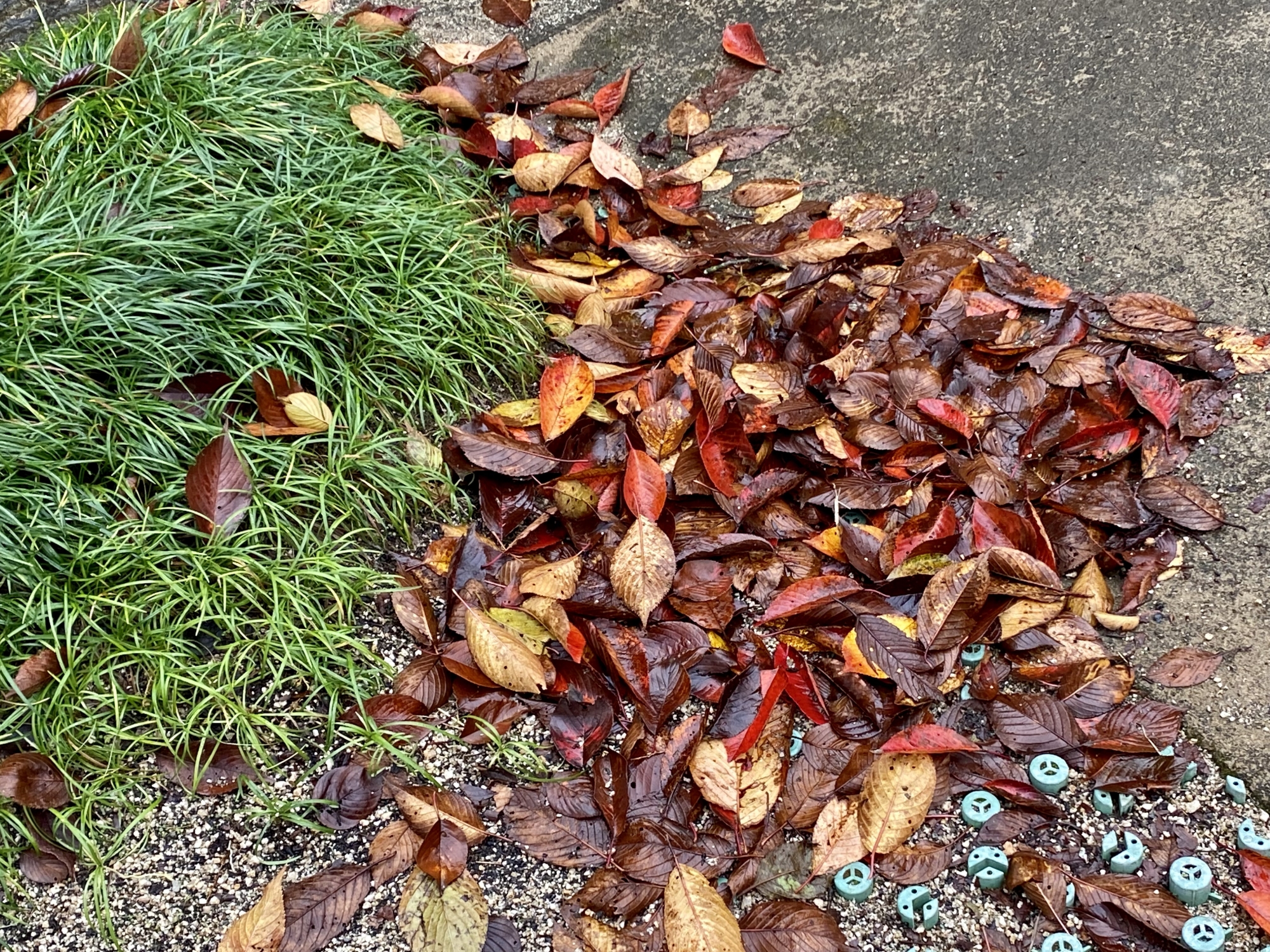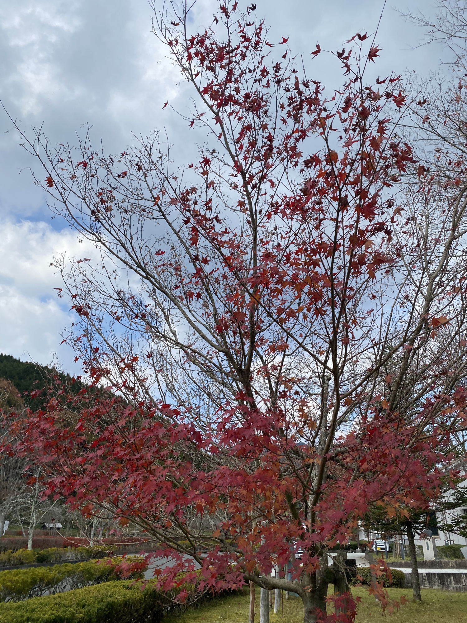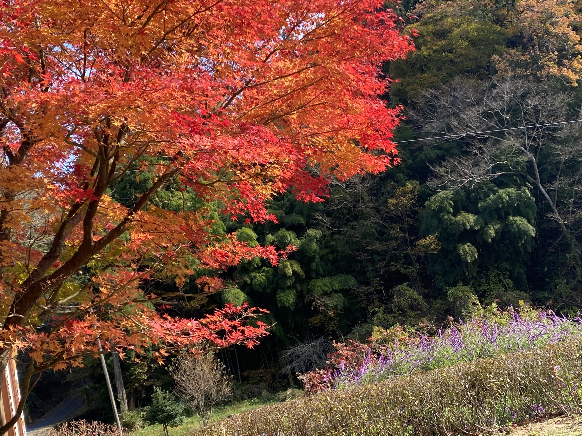 道の駅の向かいの花壇は、まだ、盛りの紅葉。