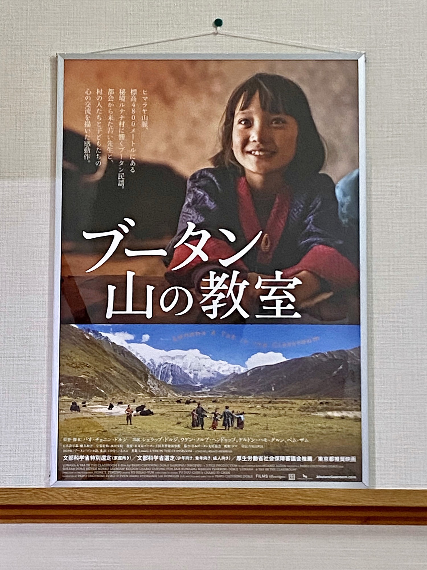 21日:実は昨日の真庭市「手話言語映画祭」は、いつもの「月いちシアター」をなさっている方々のご努力なのですが、10月に鑑賞した「ブータン山の教室」のポスターが当選で、頂戴して、今日、パネルを購入しました。このヒロインの生徒役さんは、実際のその村に住む女の子。まるで役者さんでしたよね。
