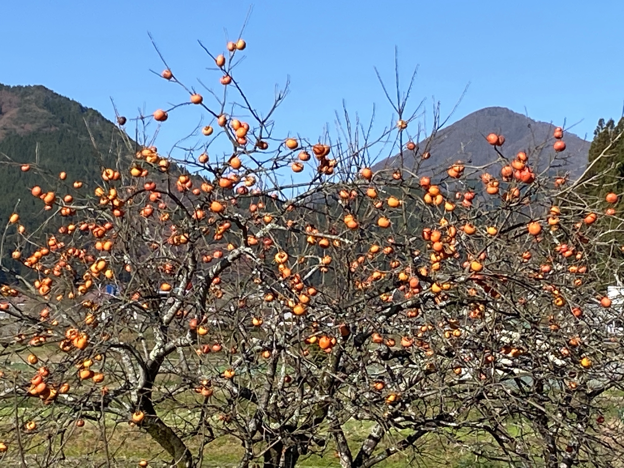 24日:朝起きると、役場の向こうの山々は白く冬化粧