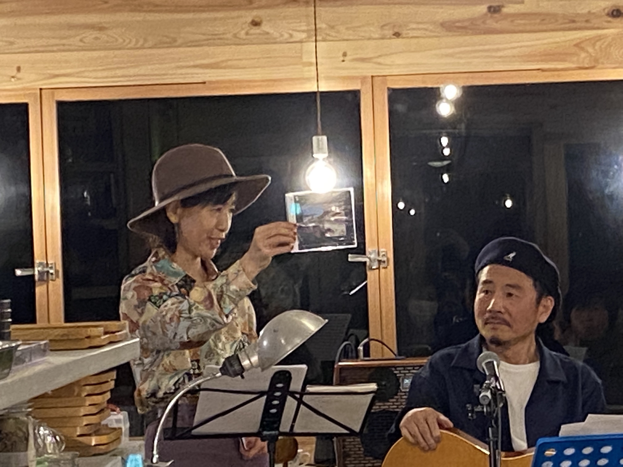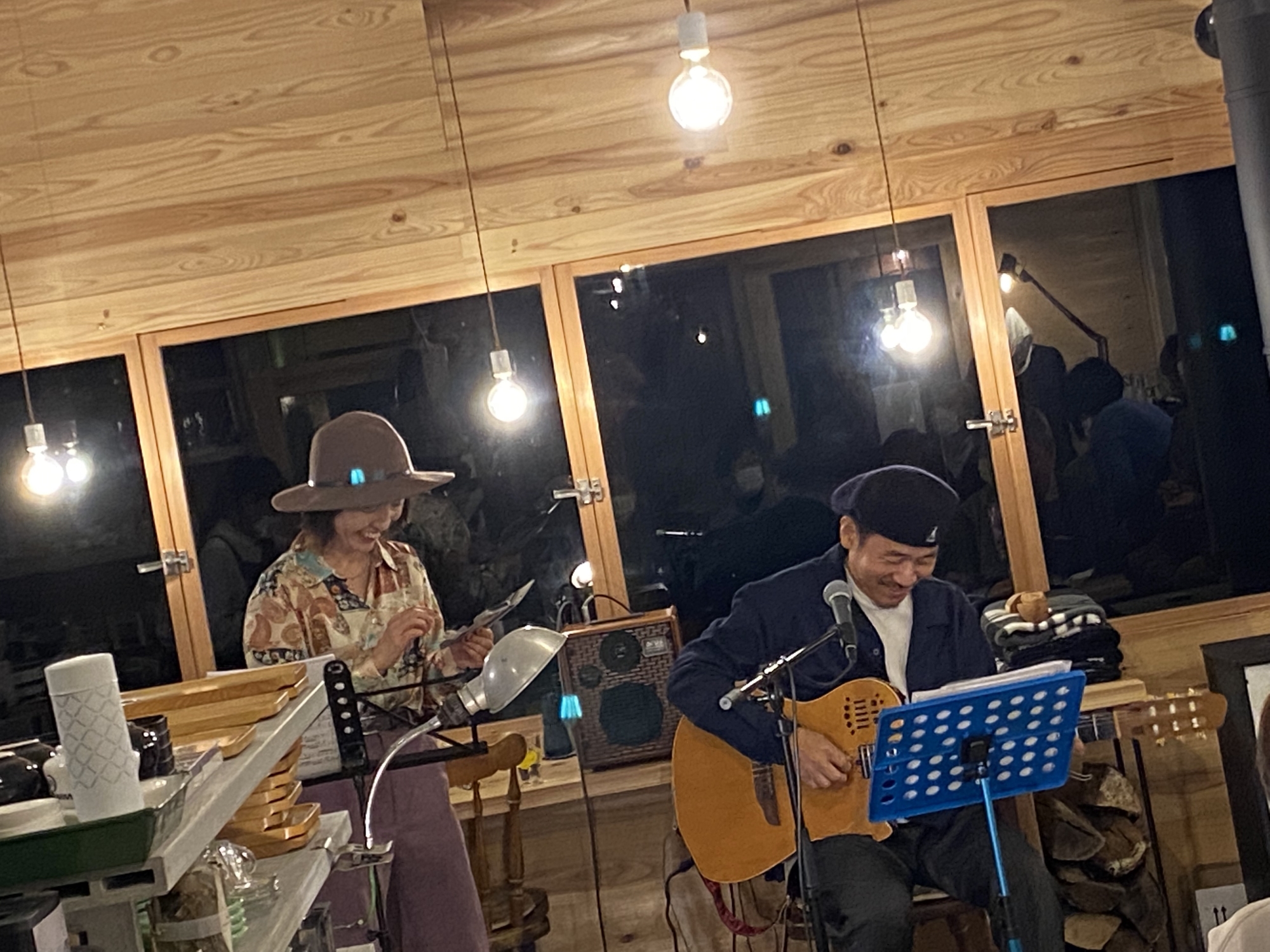 夜は・・・野土路トンネルを抜けて蒜山に入ったところの「もりくらす」さんでの、AKIKOさんとフェリーペさんのLIVE