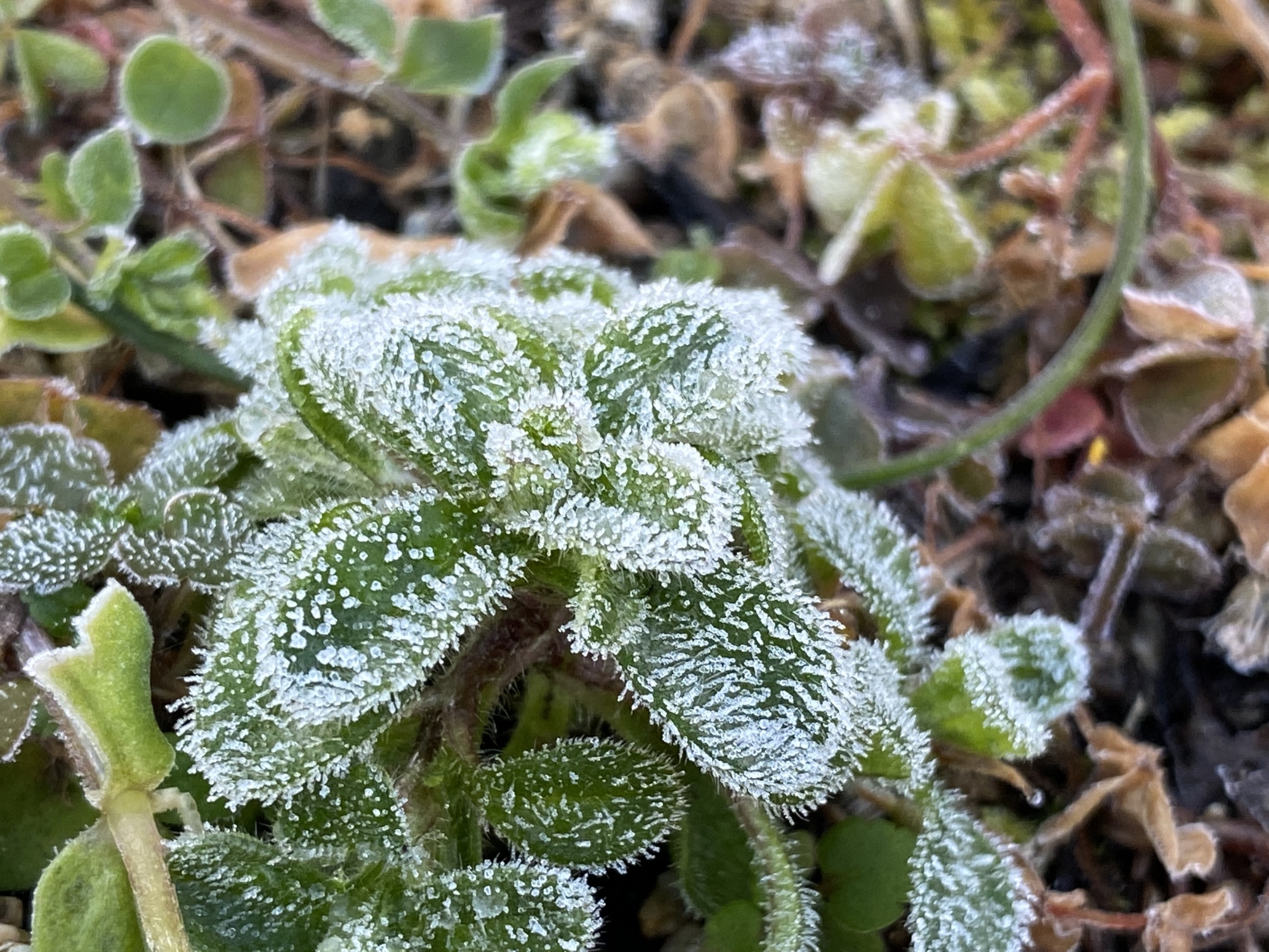 軽く霜・・でも、朝から昼間は、ちゃんと青空。