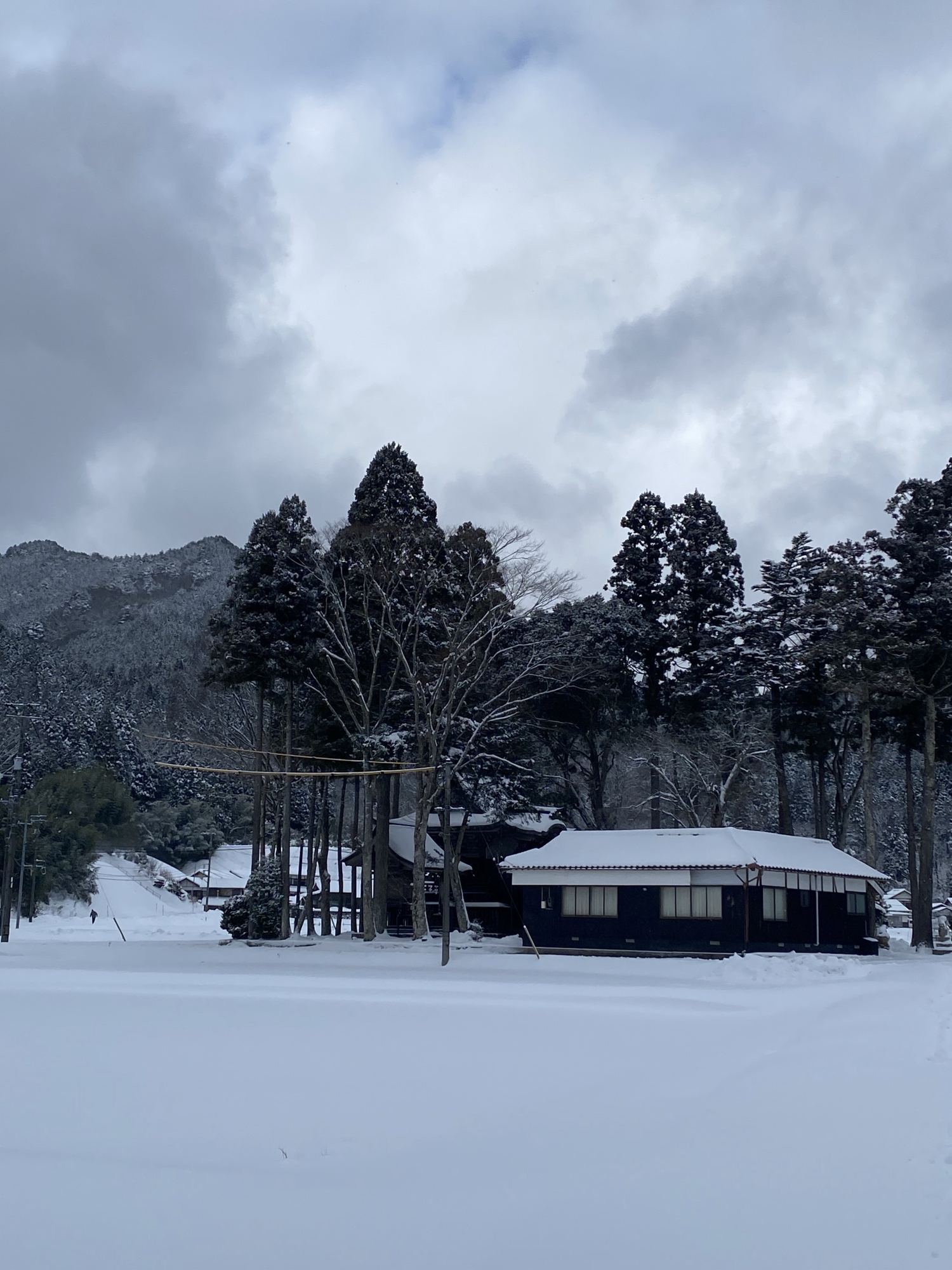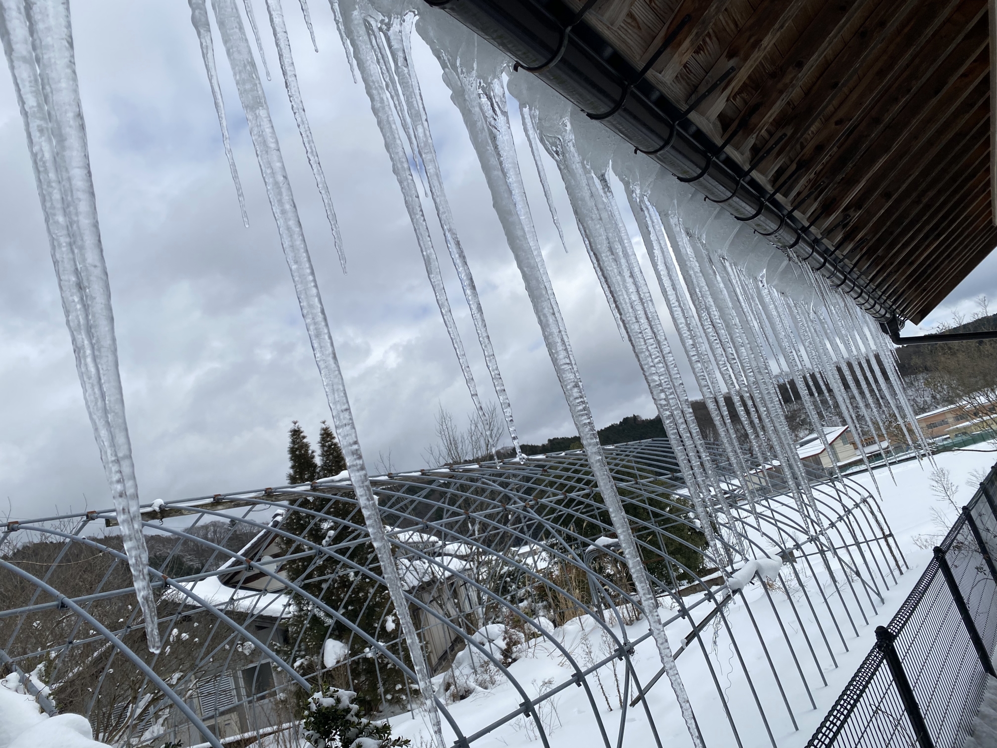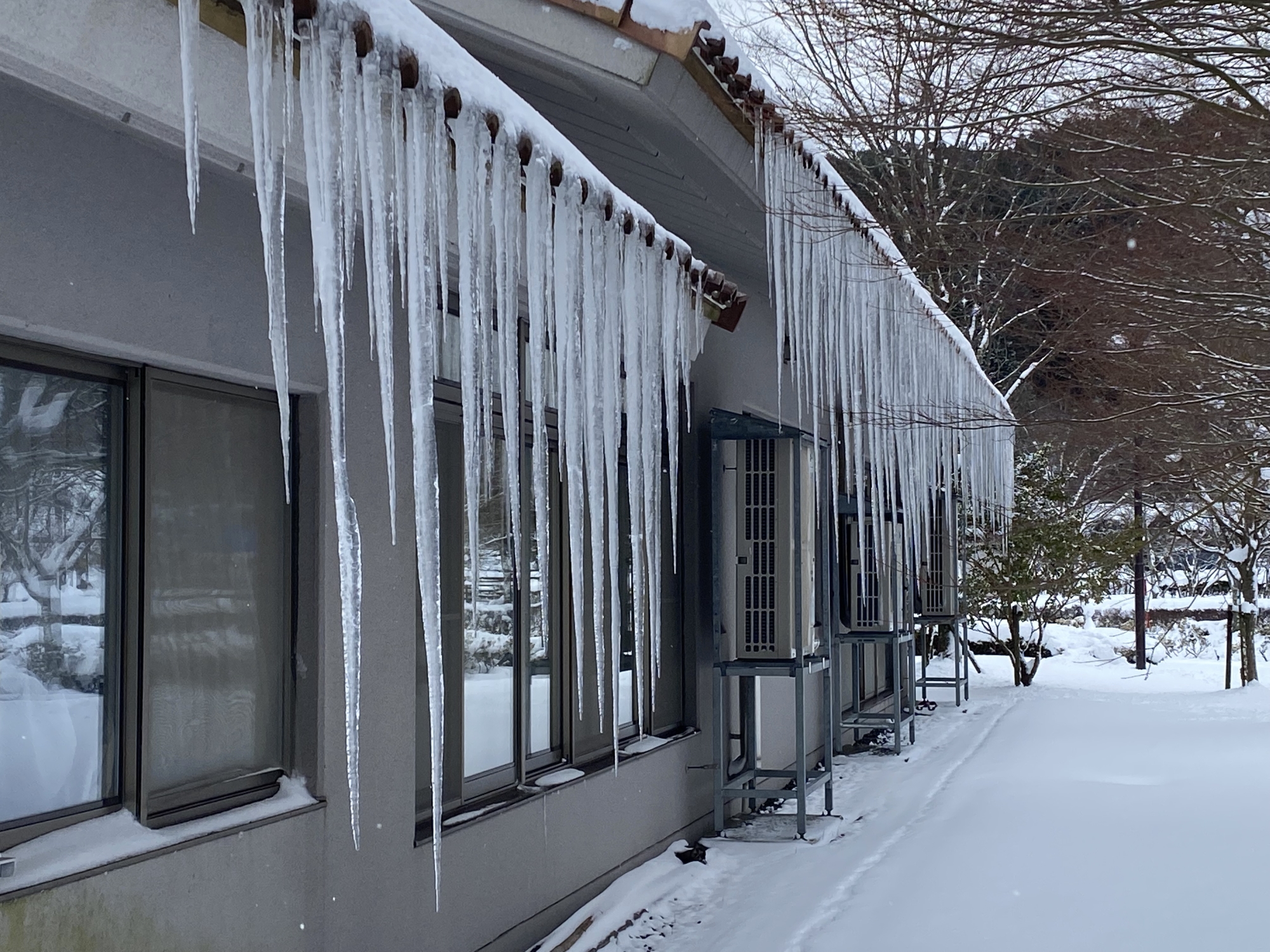 新年明けましておめでとうございます。新庄村での新春は~雪景色でした。夜の間にまた、降って・・・・官舎にもツララ。