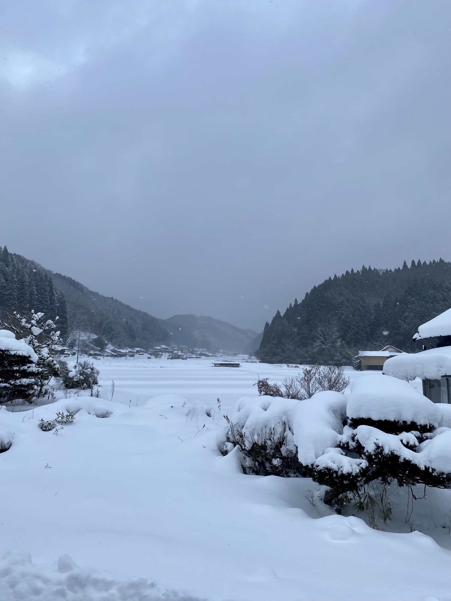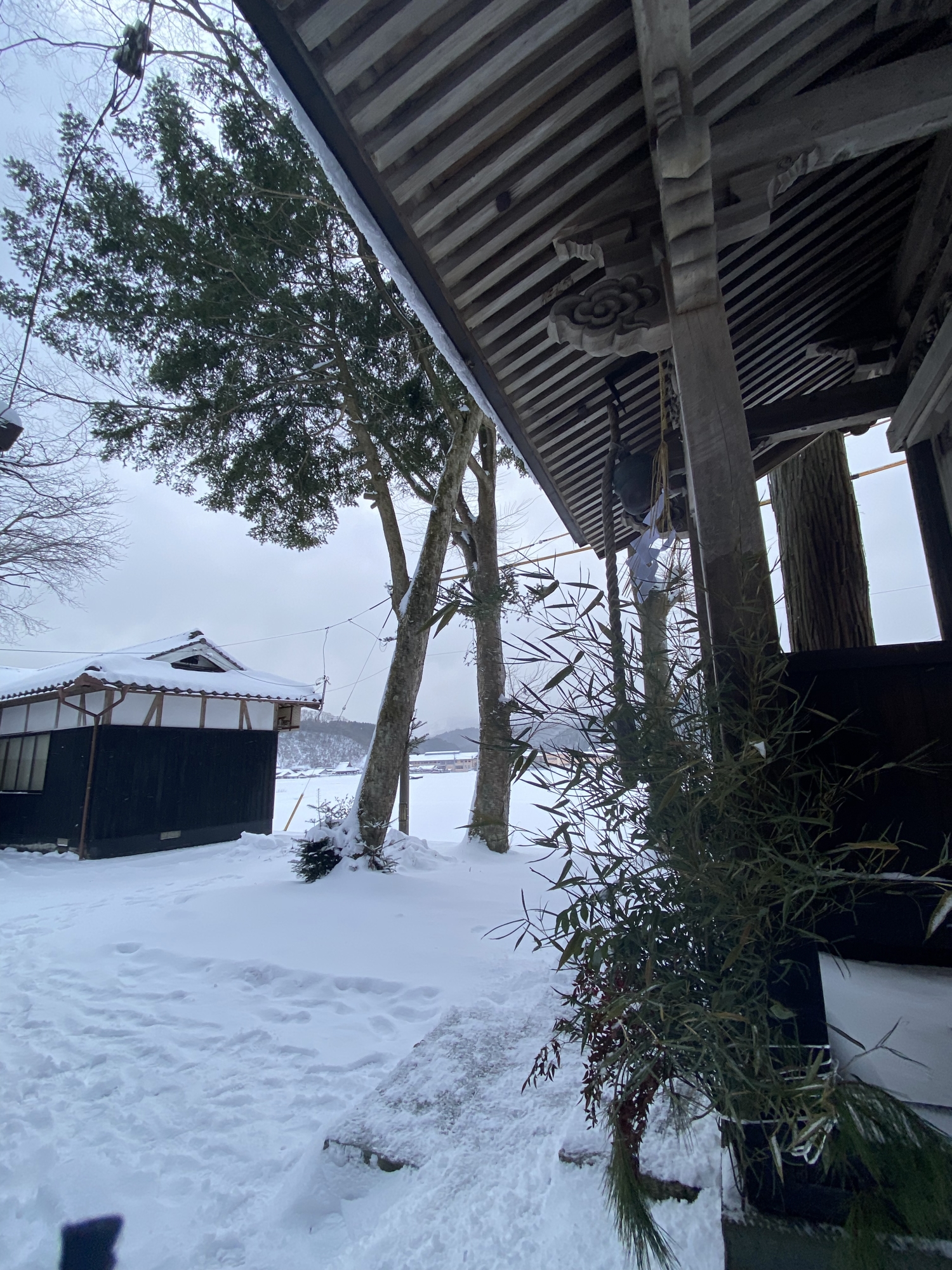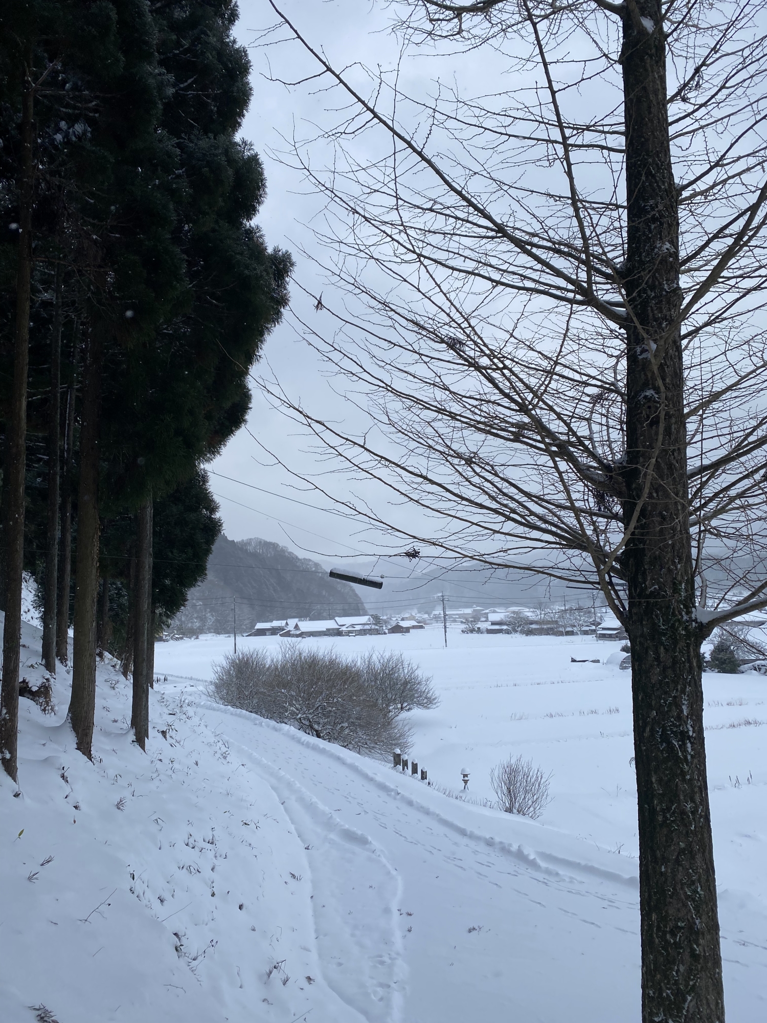 新年明けましておめでとうございます。新庄村での新春は~雪景色でした。夜の間にまた、降って・・・・官舎にもツララ。