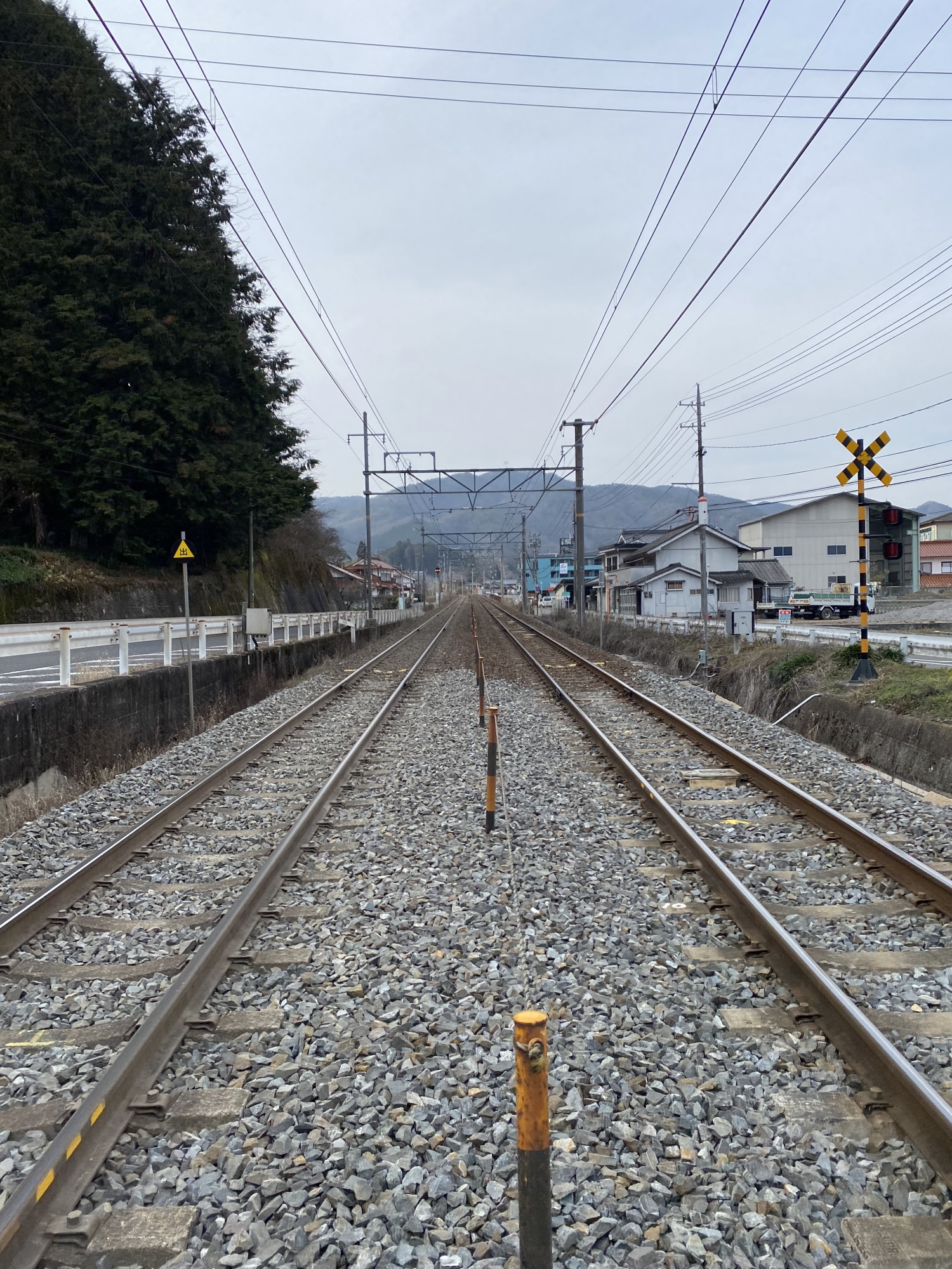 踏切を渡ったり・・・そうそう、引き込み線もあって・・・途中までは、レールも磨かれていたので、そうか、伯備線とかも、新見止まりで、泊まりの車両いもあるのかな?