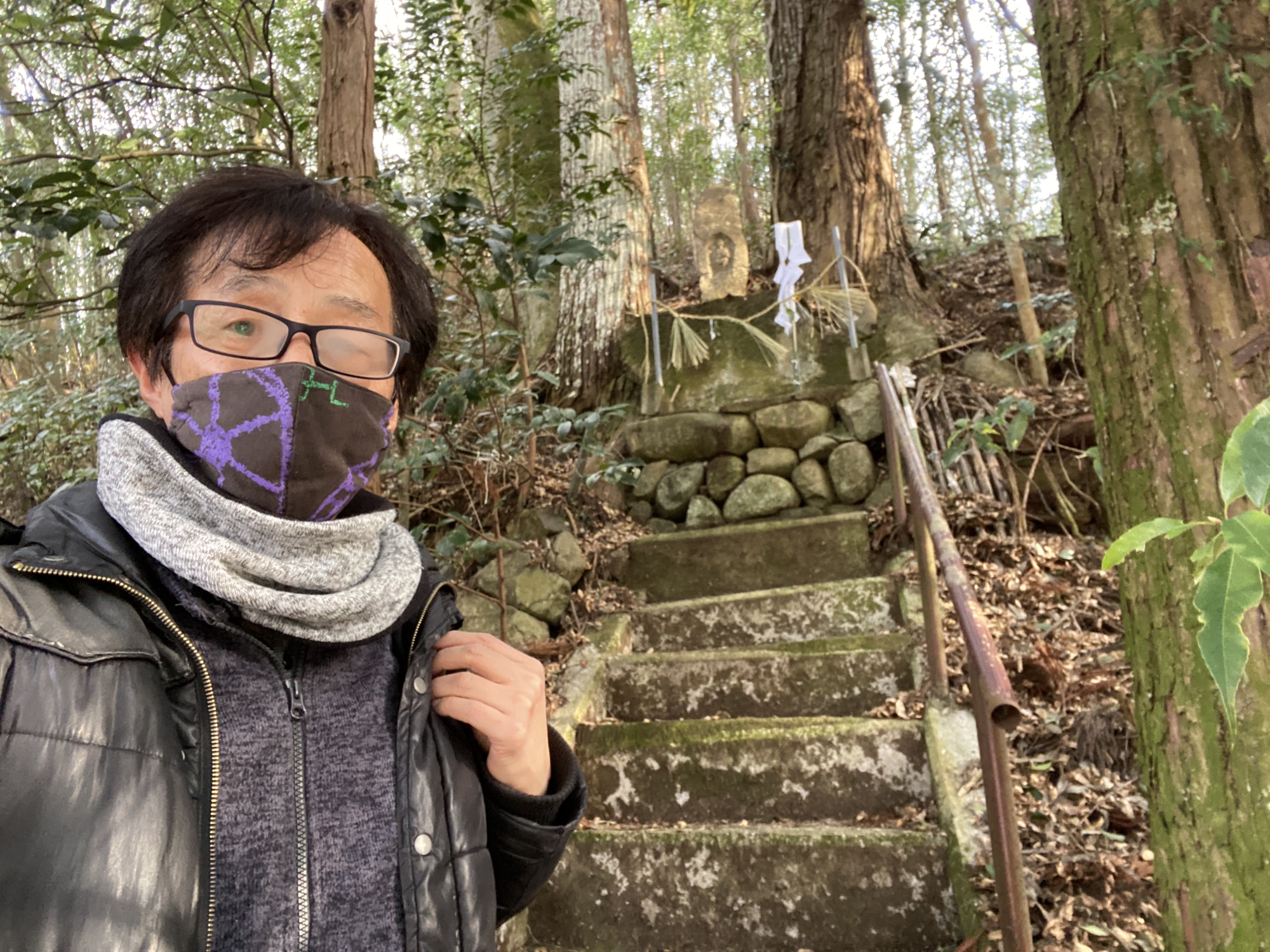 斜面にお堂・・・その横には、墓所とともに、地神様の石碑