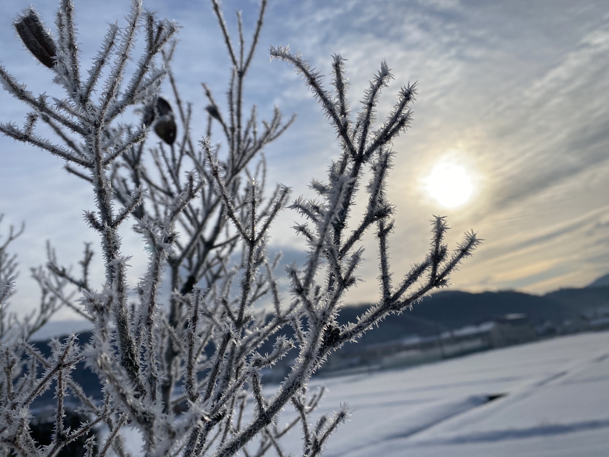 今日の日曜日は雪も無く・・・少し晴れ間もあったり・・・でも、朝は寒くって・・霜