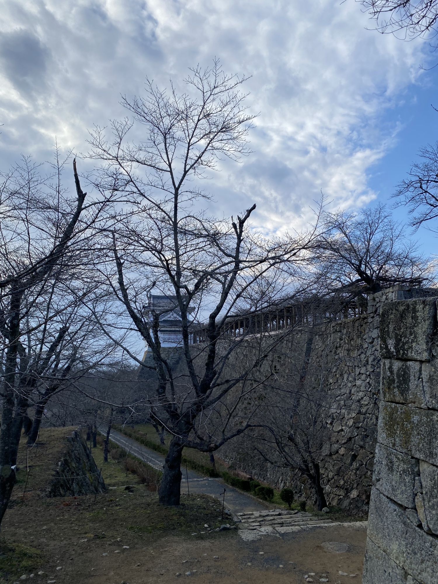 【明治の廃城令で、建造物は取り壊されましたが、地上から45mに及ぶ立派な石垣が当時の面影を残しています。】