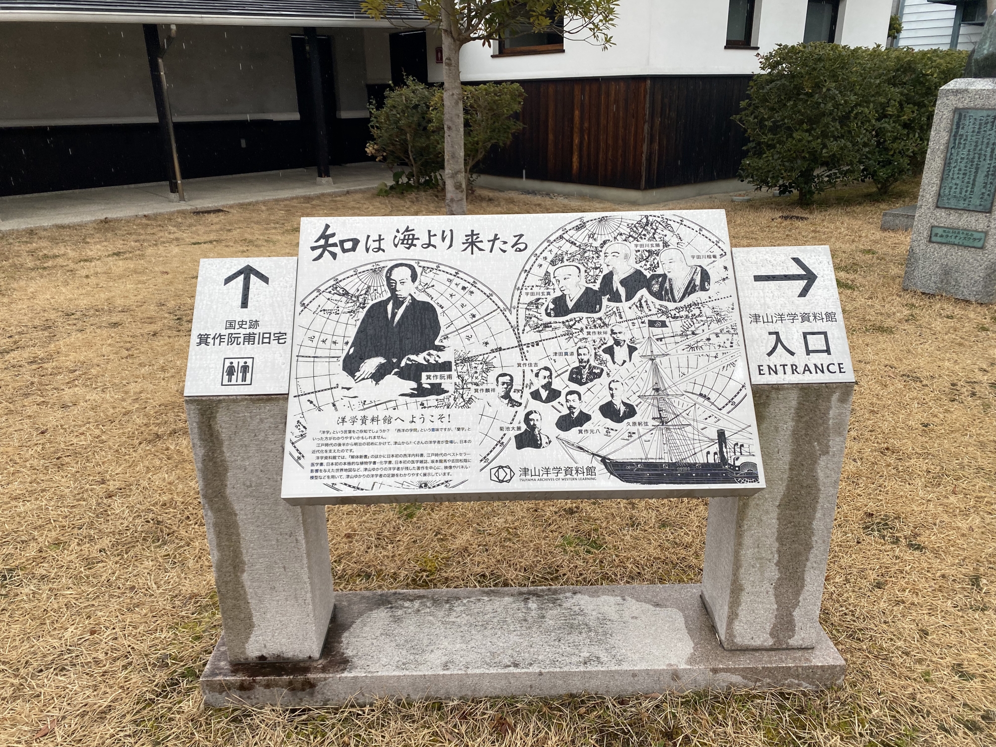 【幕末から明治初期にかけて、津山藩は優れた洋学者を輩出しました。この資料館には、西洋の内科医学を初めて紹介した宇田川玄随(うだがわげんすい)や、幕末の対米露交渉に活躍した箕作阮甫(みつくりげんぽ)など、津山ゆかりの蘭学者らの資料を展示しています。「解体新書」の初版本のほか、精巧な木製の骨格標本(レプリカ)は目を見張ります。