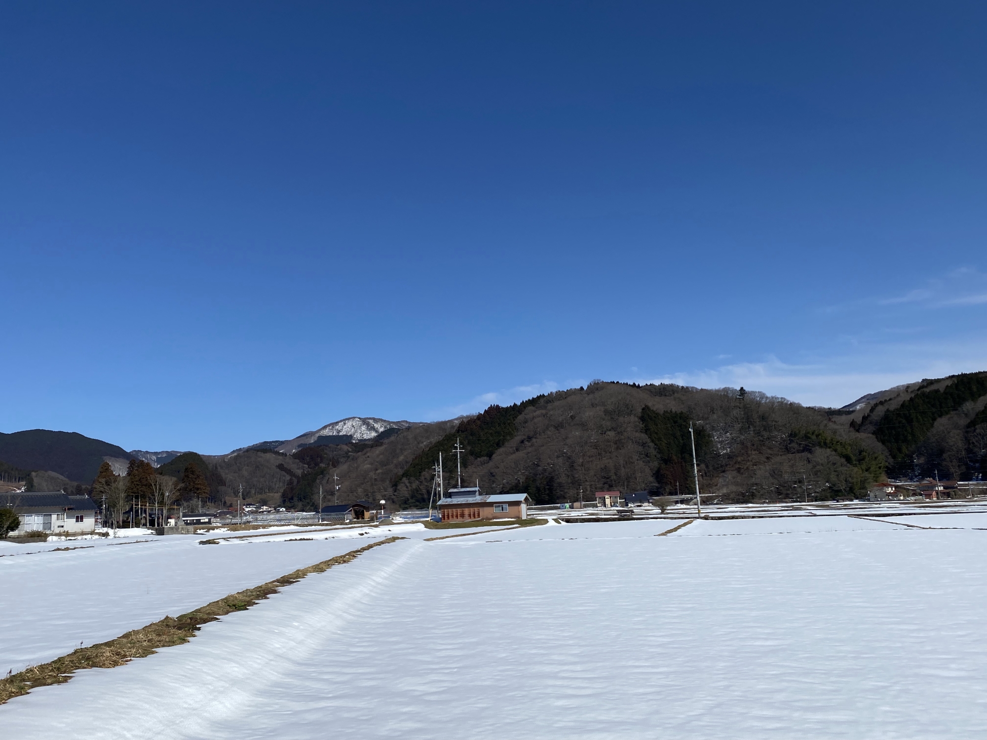 田圃には、まだ、雪が残っています(来週から、また、雪)