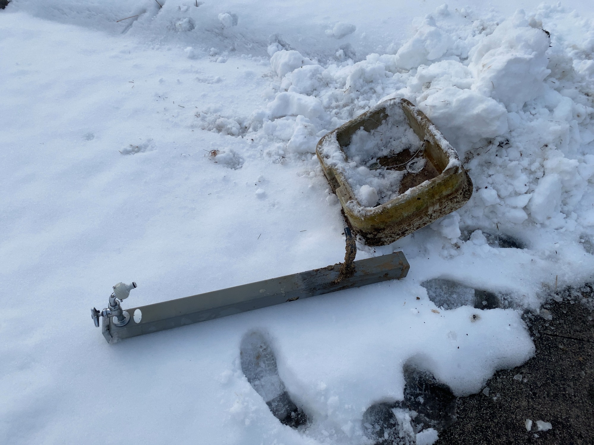 さて、問題は、帰宅後・・何か変な音がって思っていたら車庫の横の水道管が破れたみたいで・・・、で、官舎なので、役場にTEL・・・たまたま課長が出られて、まずは、水道管を締めてもらって、そして、村内の方が、業者さんにお勤めで来てくださって、結局、ボツにされて、でも、封をしてもらいました、やれやれ。だって、一応は、囲いもあるし、それに巻きつけたりもしていたのに・・・今朝は冷え込んで、また、すごく急に暖かく(日中)なったせいかなぁ・・・。(。>0<。)