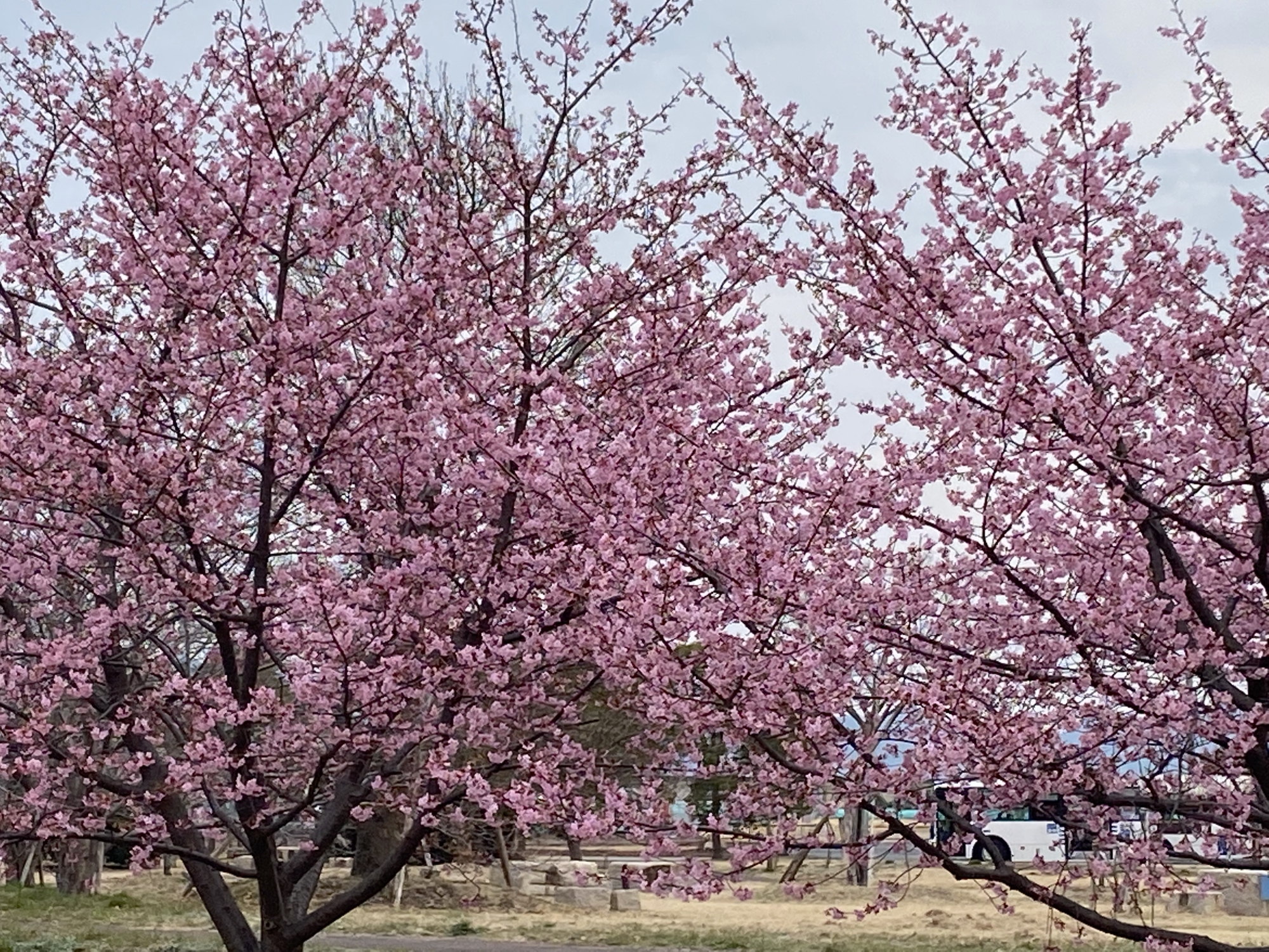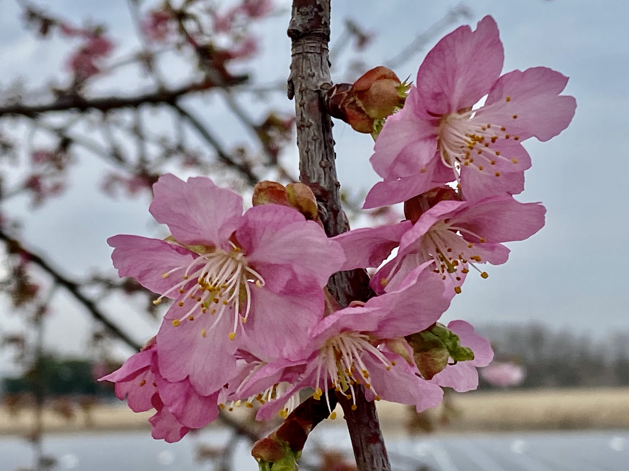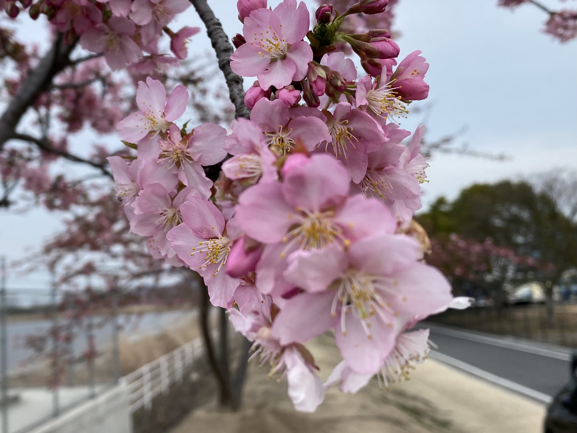 さて、母は、自宅でしたが・・残り三人で、児島湖花回廊 阿部池土手 河津桜