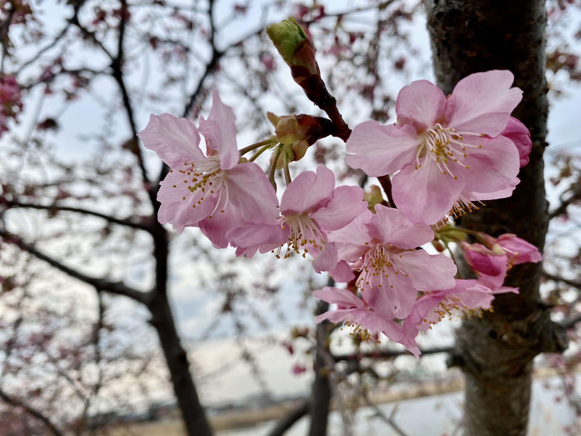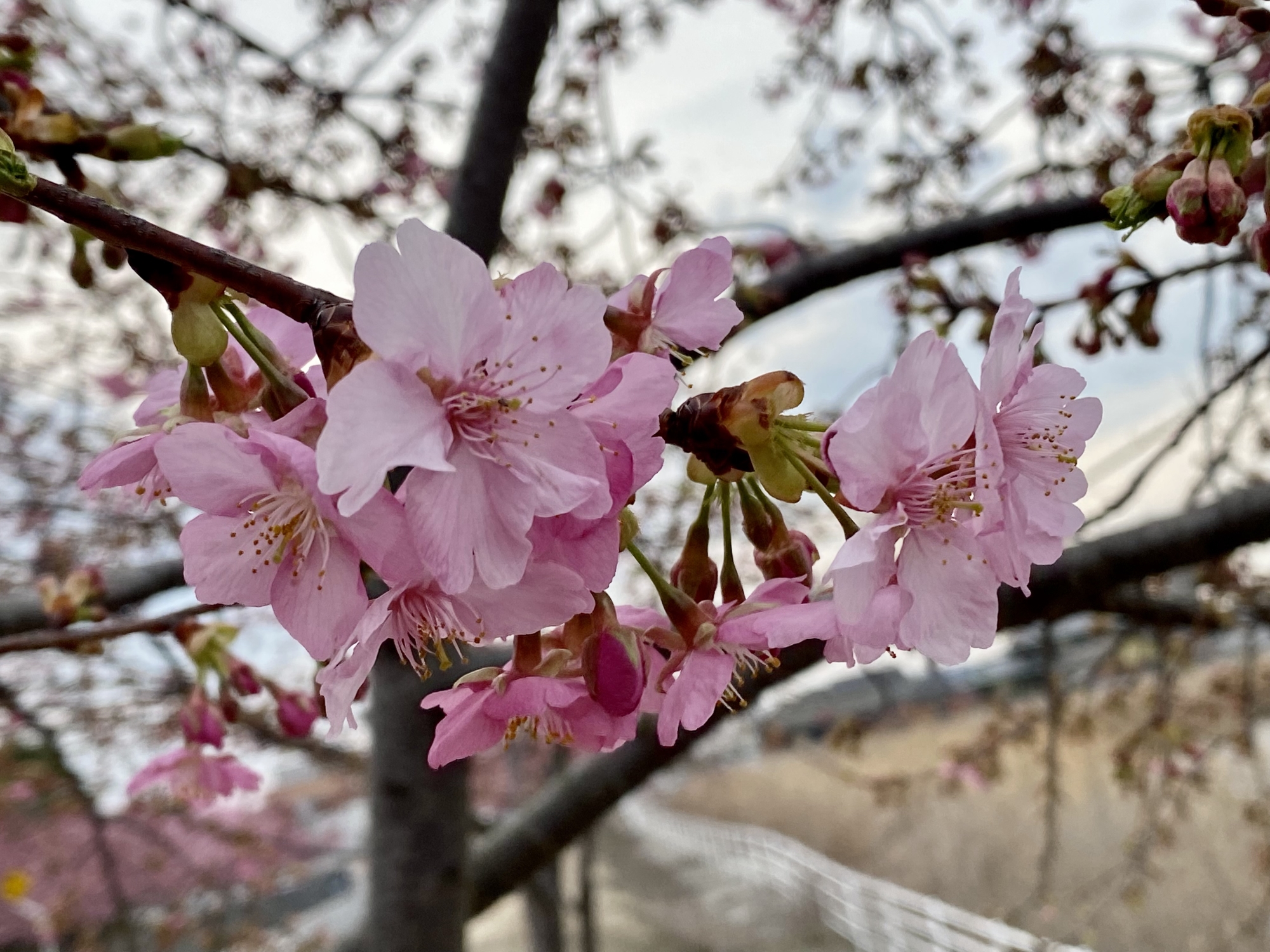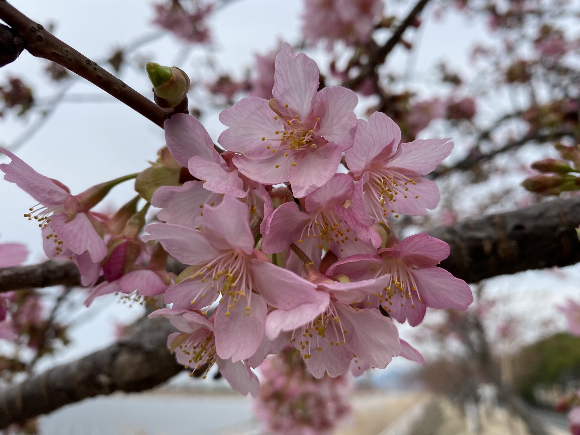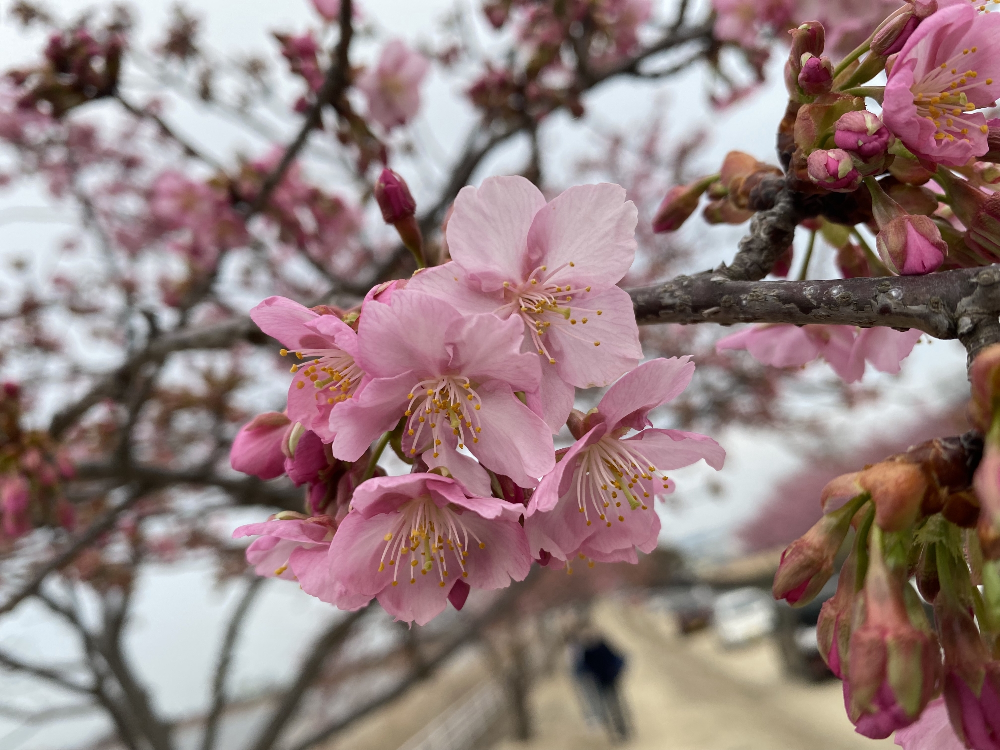 さて、母は、自宅でしたが・・残り三人で、児島湖花回廊 阿部池土手 河津桜
