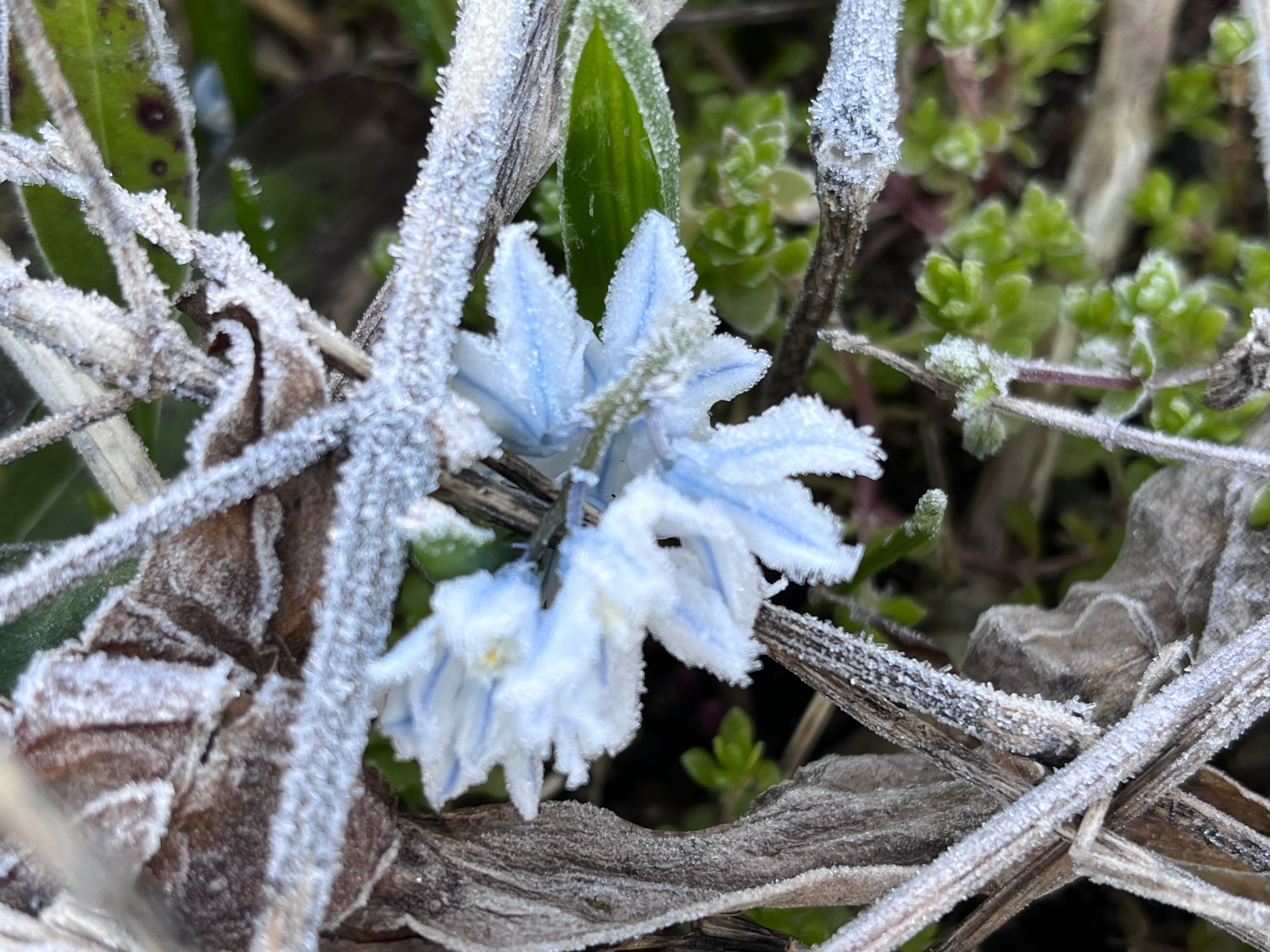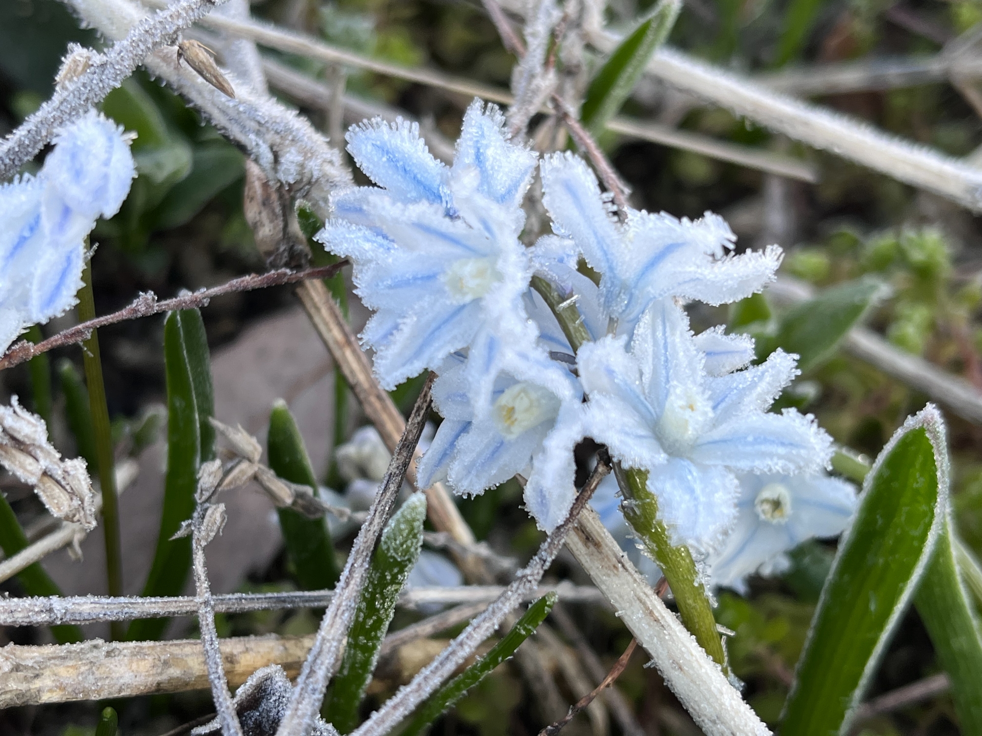 うちの庭に・・これ、朝には、霜がついていましたよね(上記)。プシュキニアって。。。
