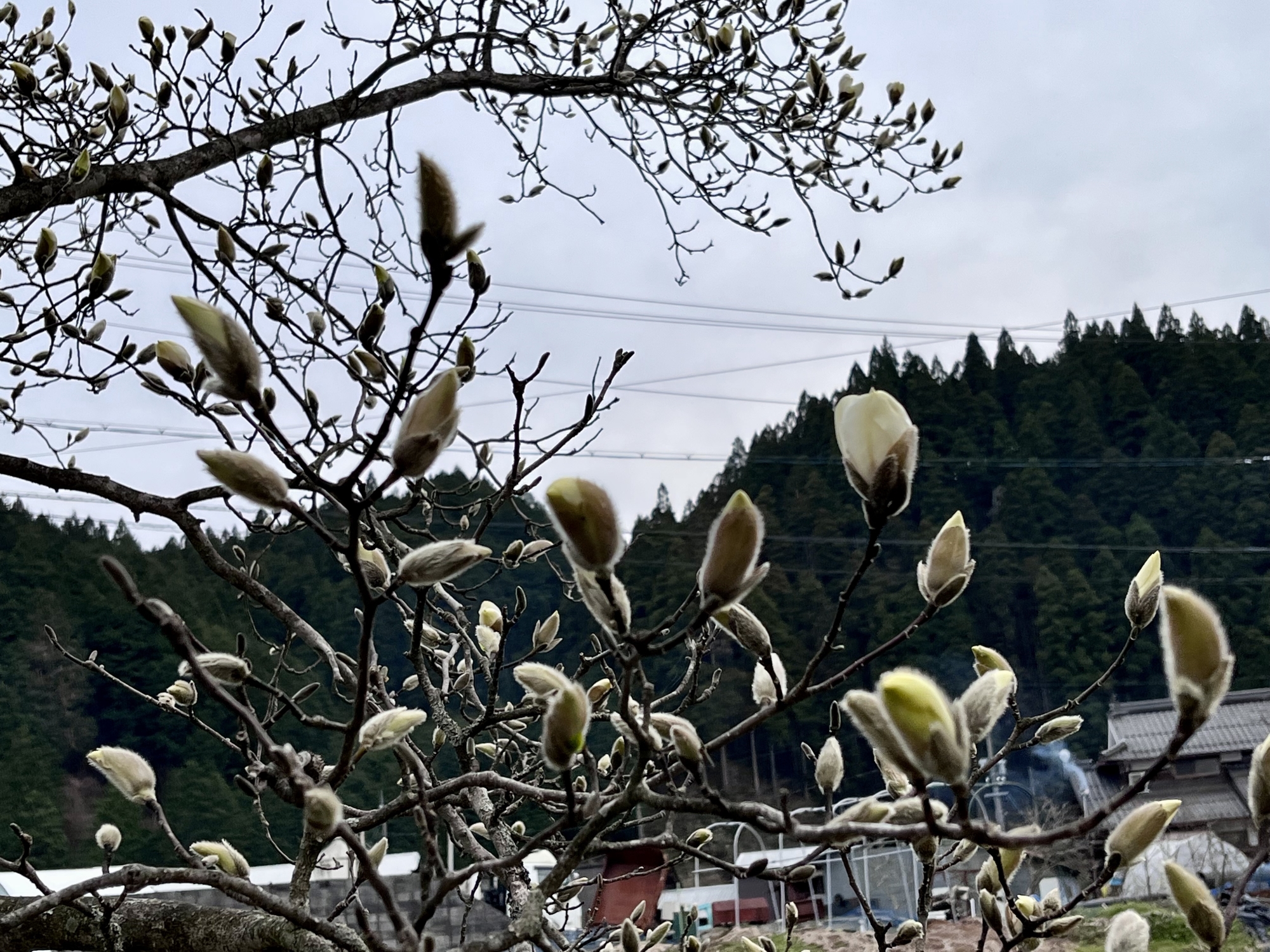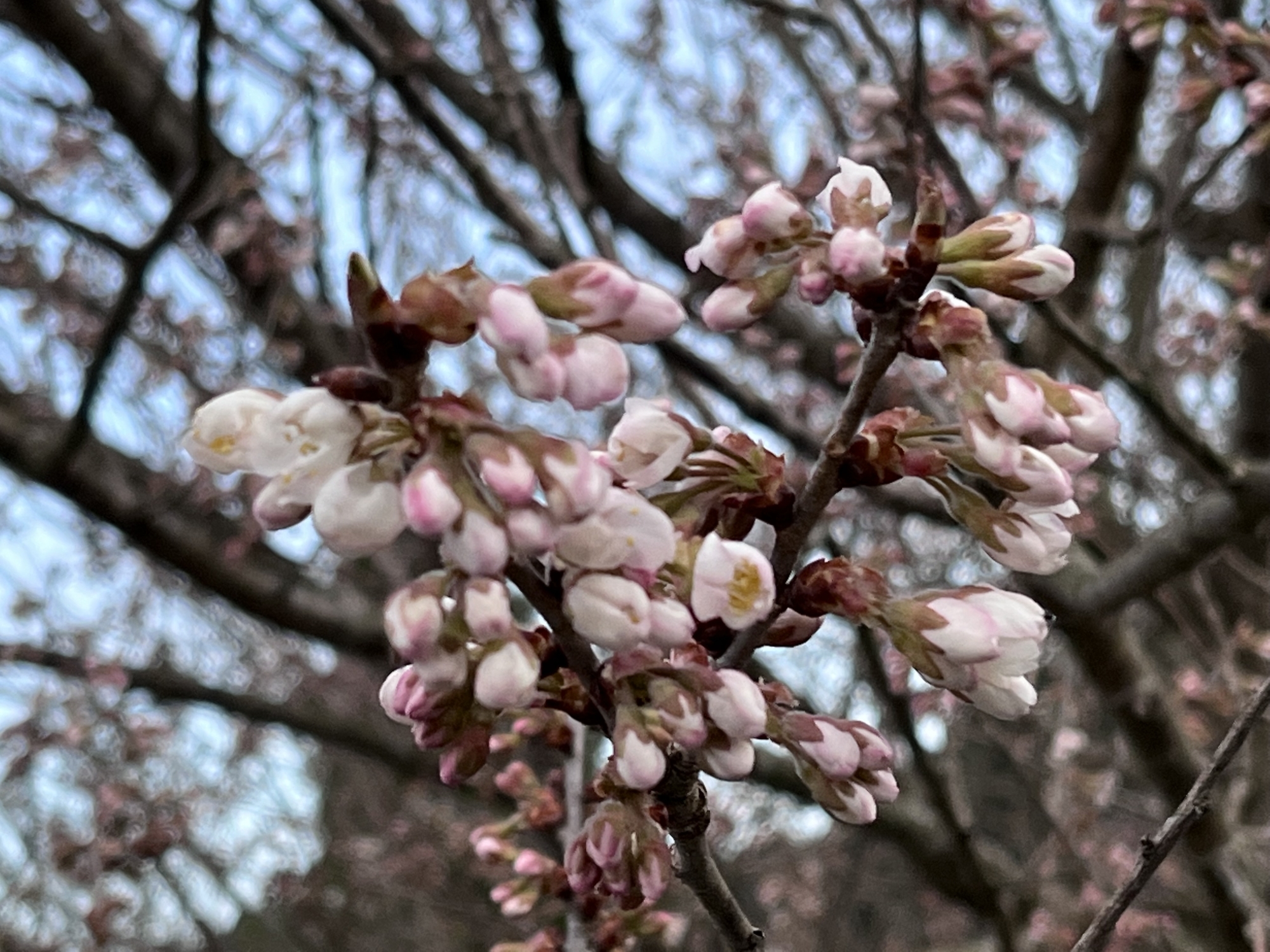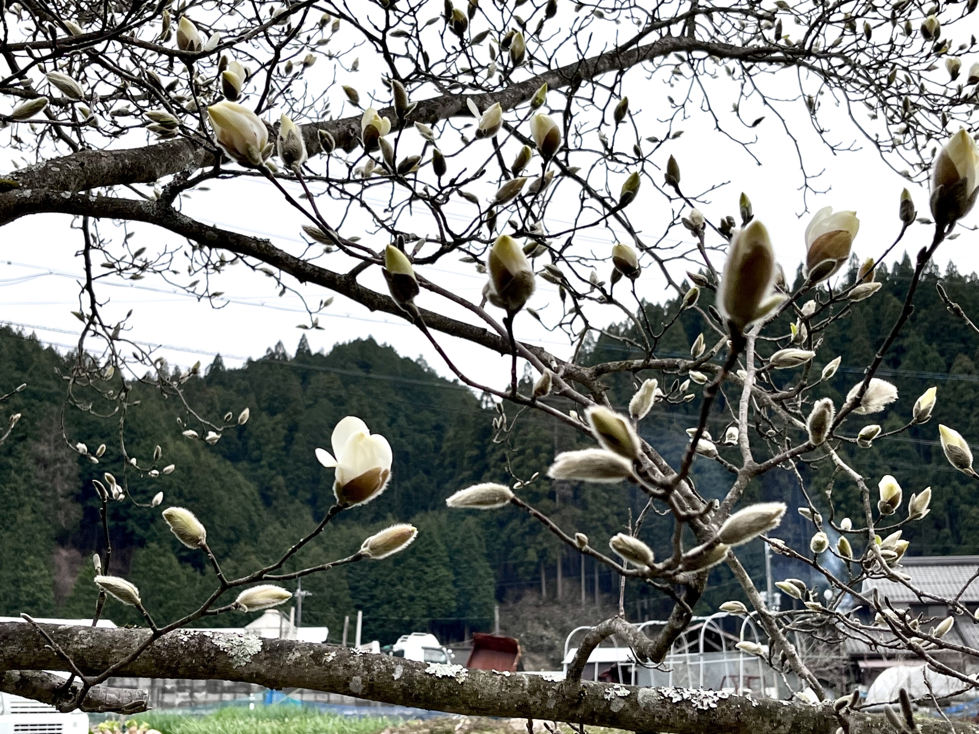 さて、夕散歩。向かいの公園の周囲に・・木蓮かな。。