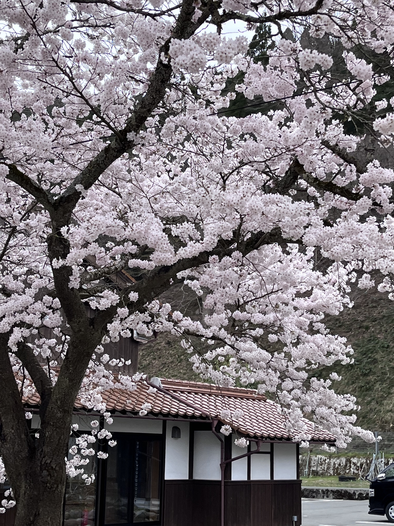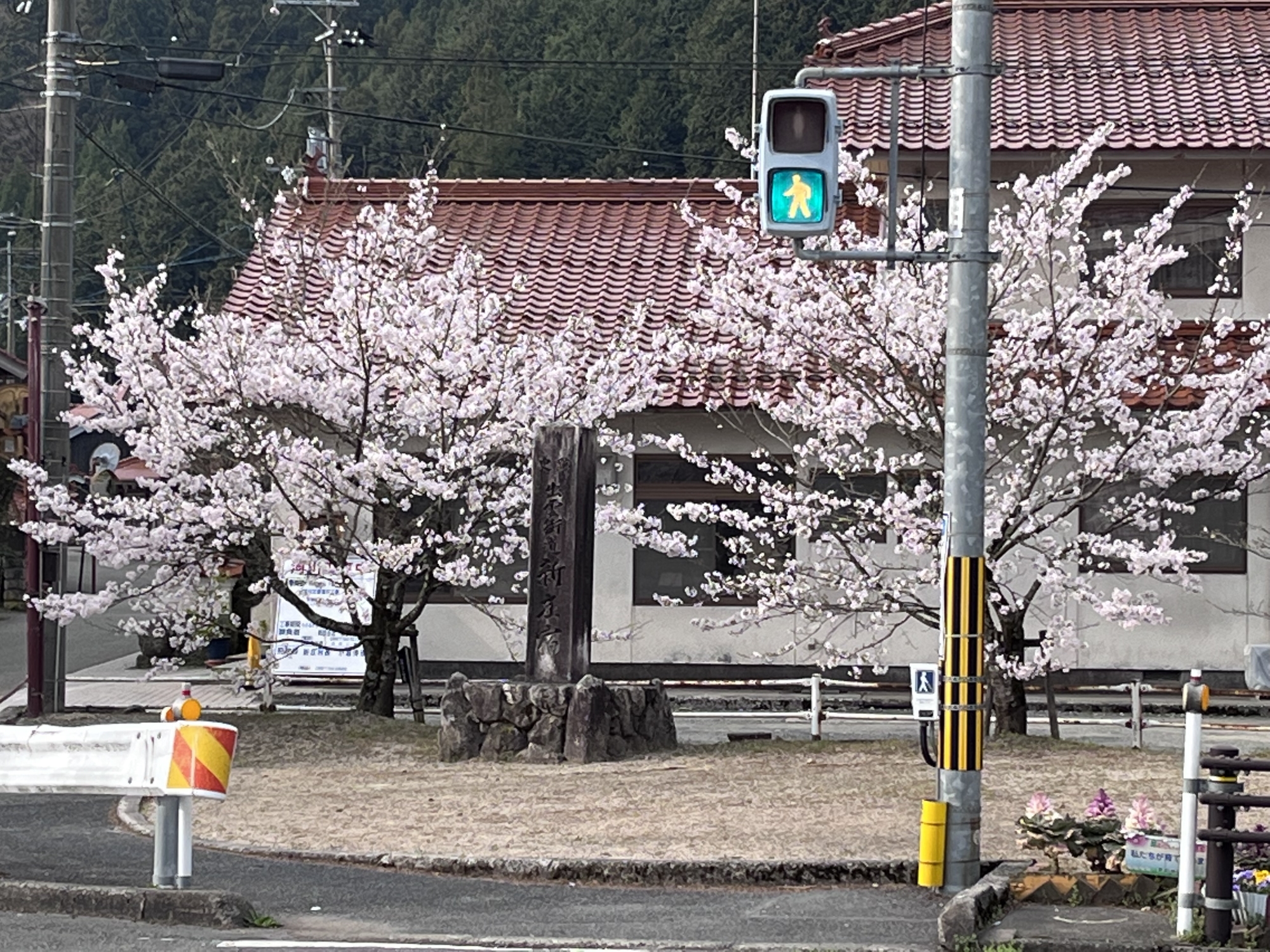 薄雲多し・・・で、朝は、村の職員としての春の交通安全、役場前の交差点での立ち当番。通学の小中学生へ「おはようございます」など、少し花曇りの新庄村でした。