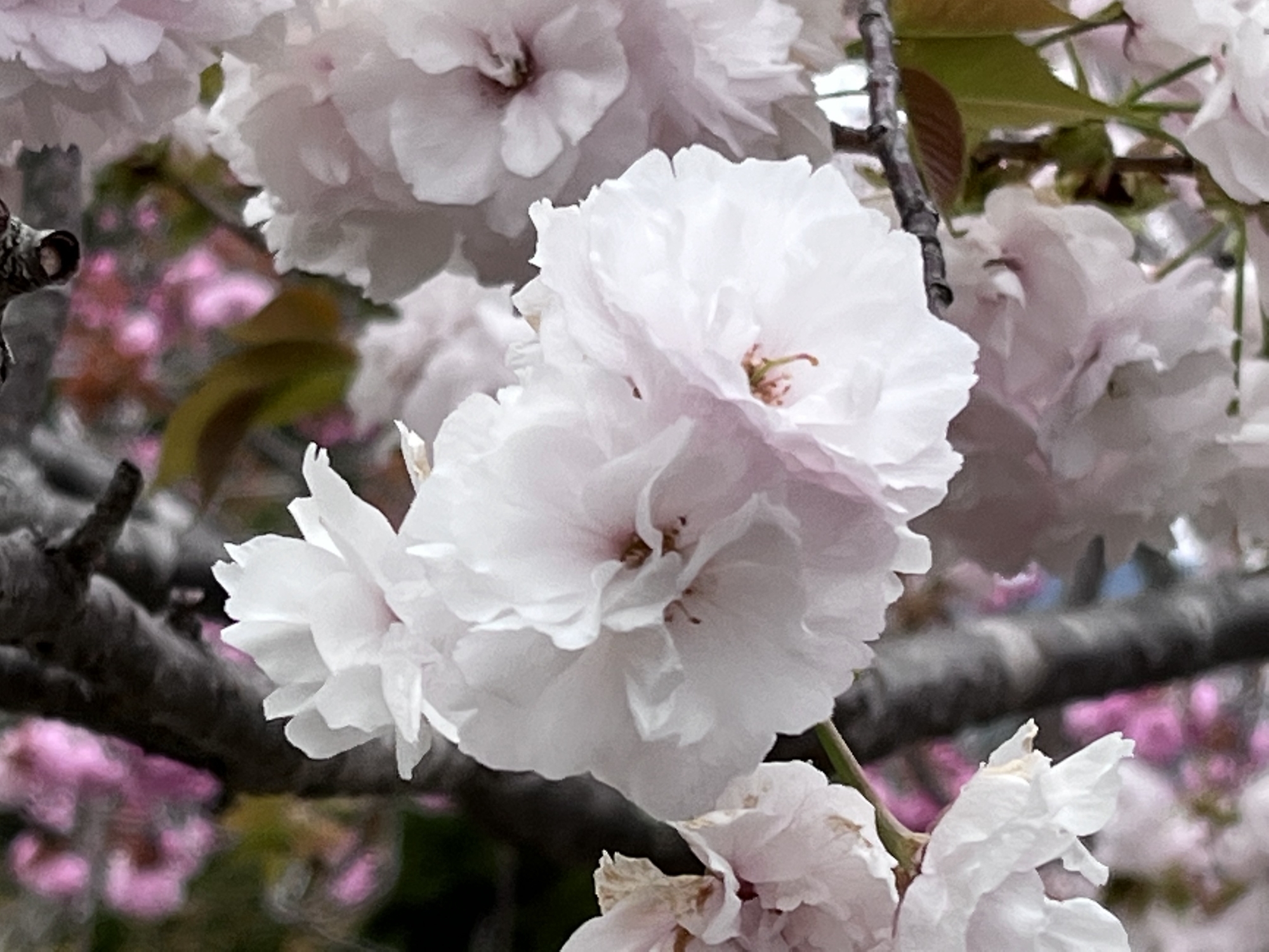 さて、今日は、一応・・午前中。午後から雨になりそう・・・。診療所の横の通りの八重桜など。