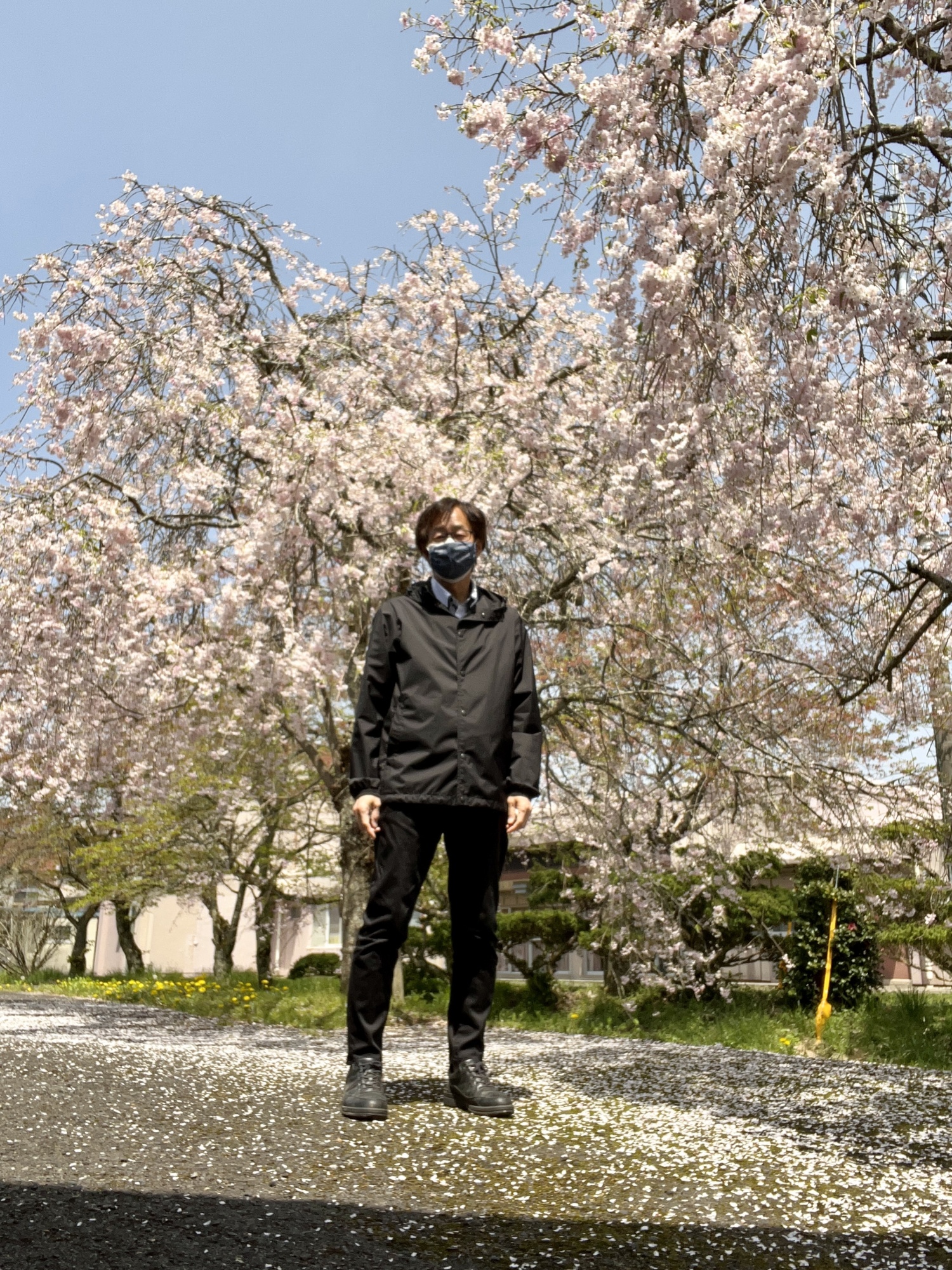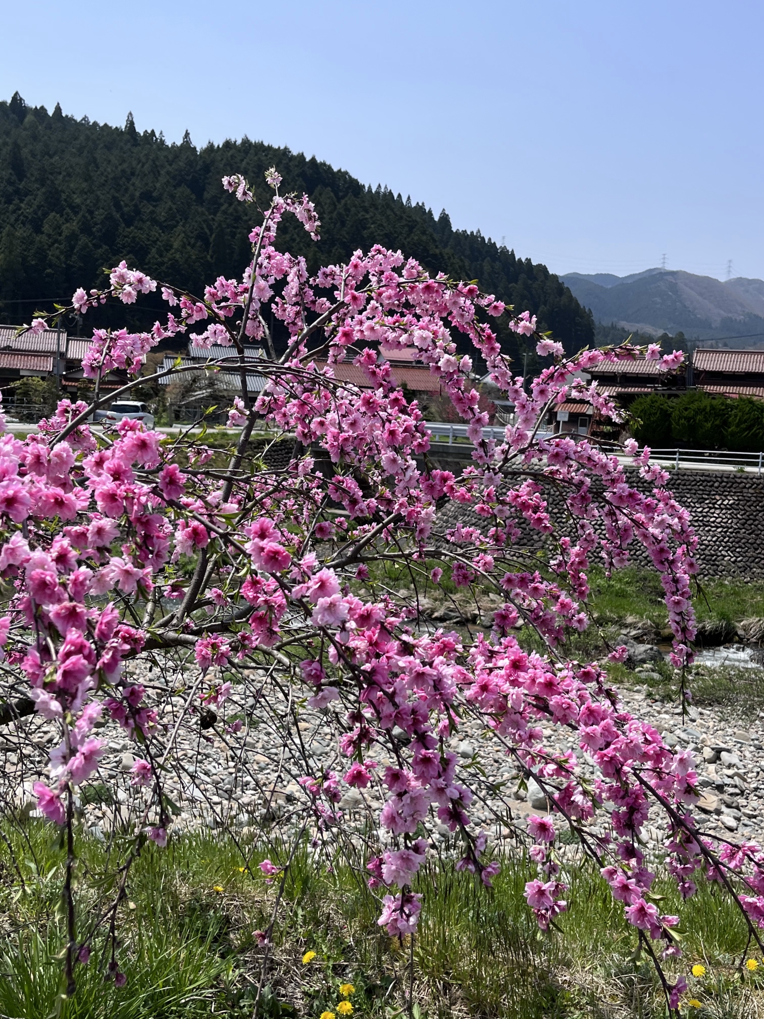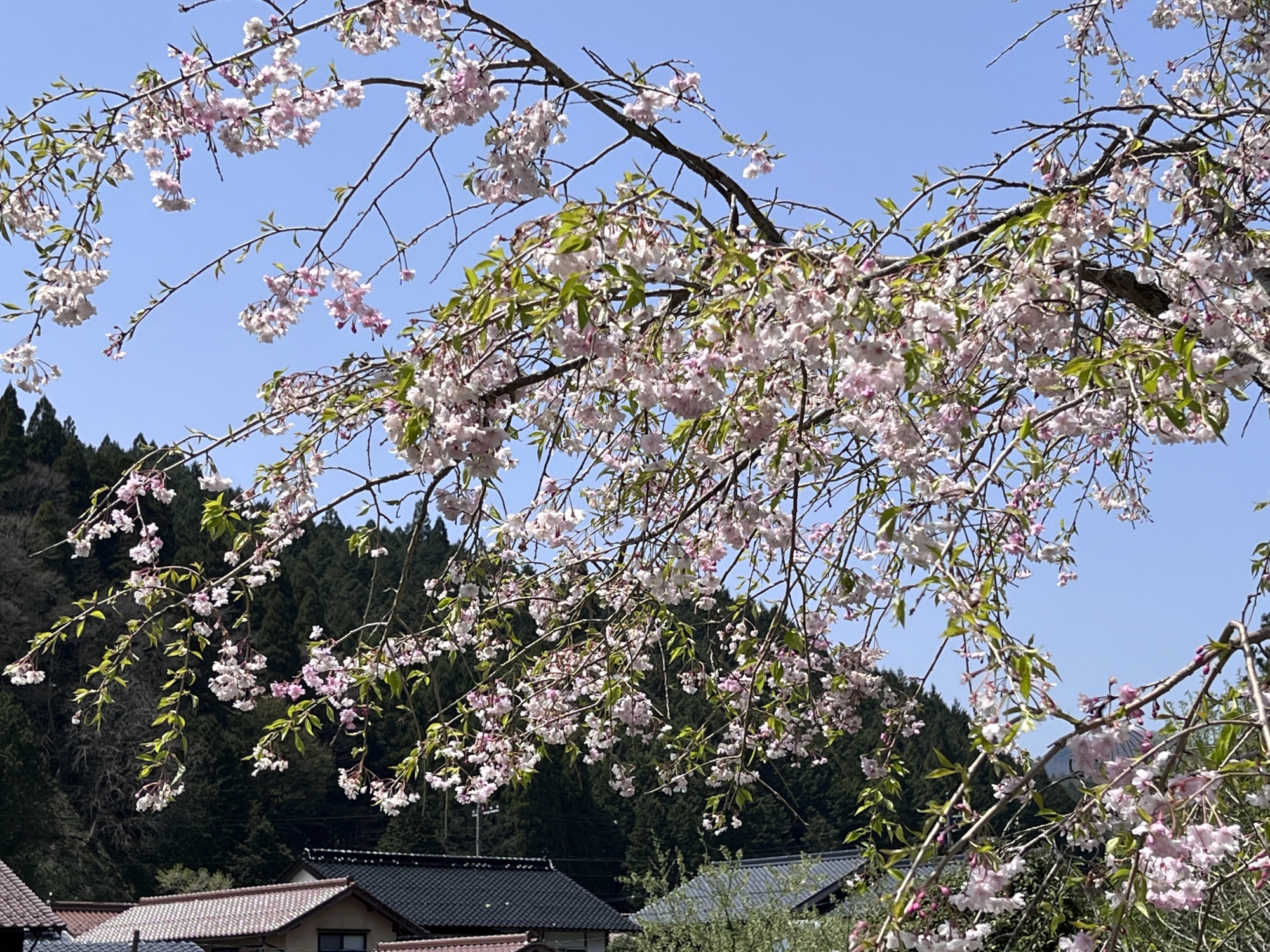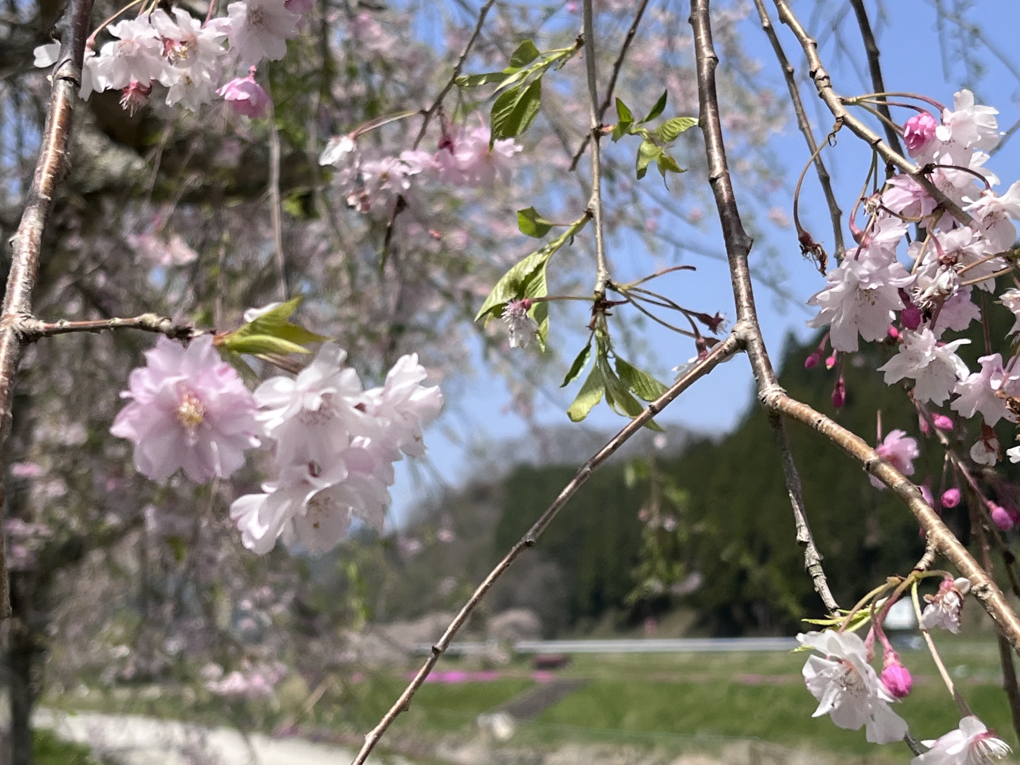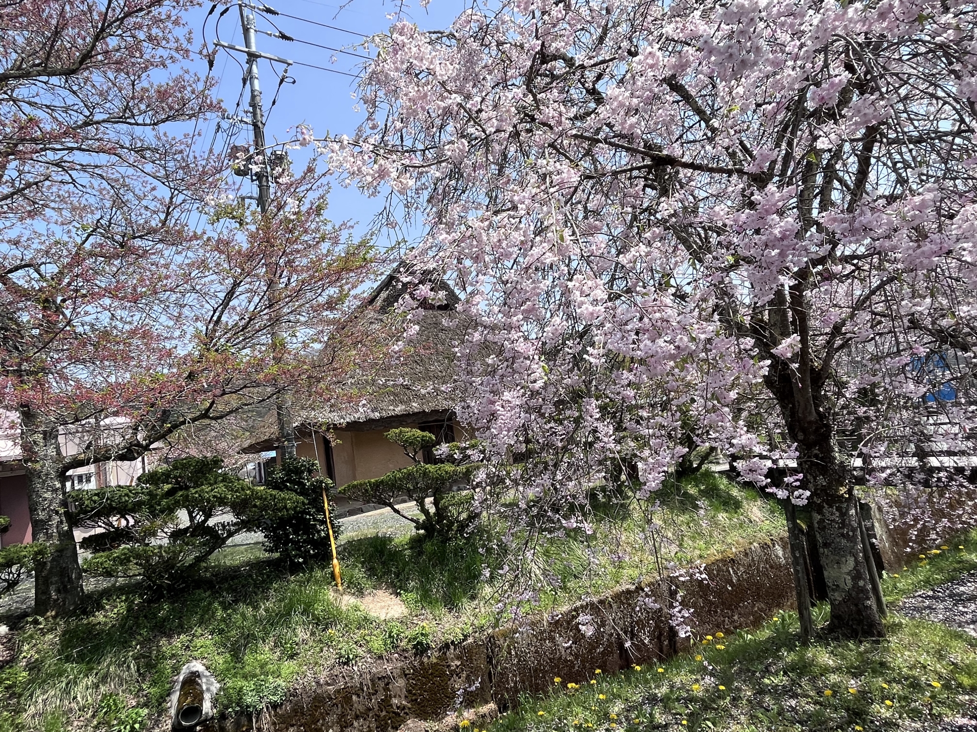 さて、昼散歩は~まずは、診療所裏手の枝垂れ桜から~。