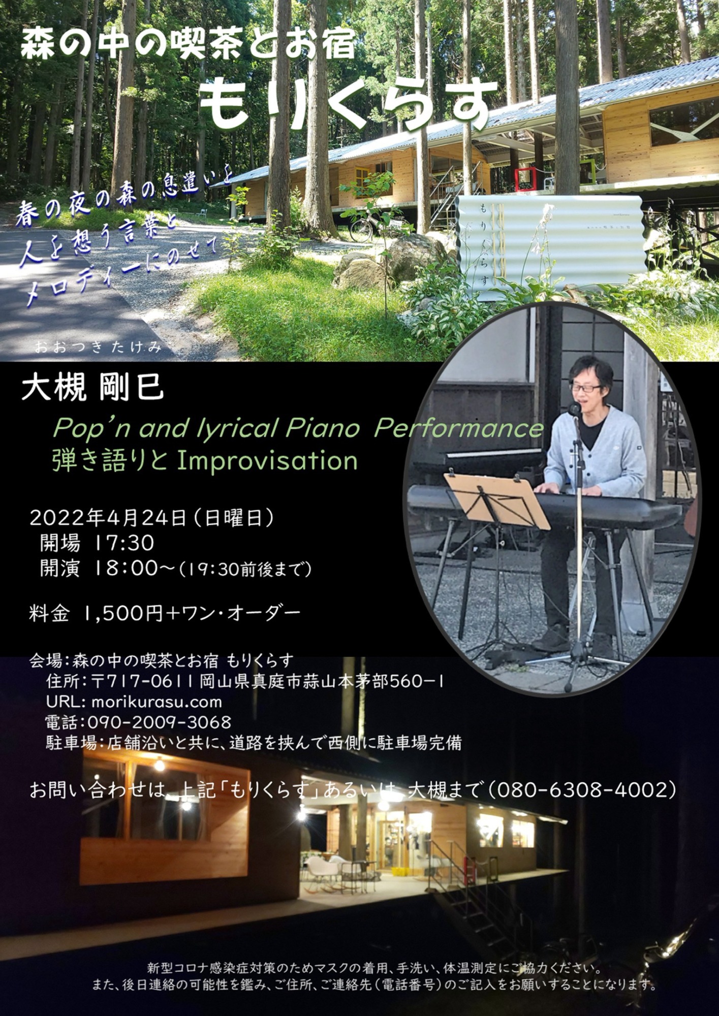 ワンマンライブとしては、久しぶり・・蒜山の人気のカフェ「森の中の喫茶とお宿もりくらす」さんでした。