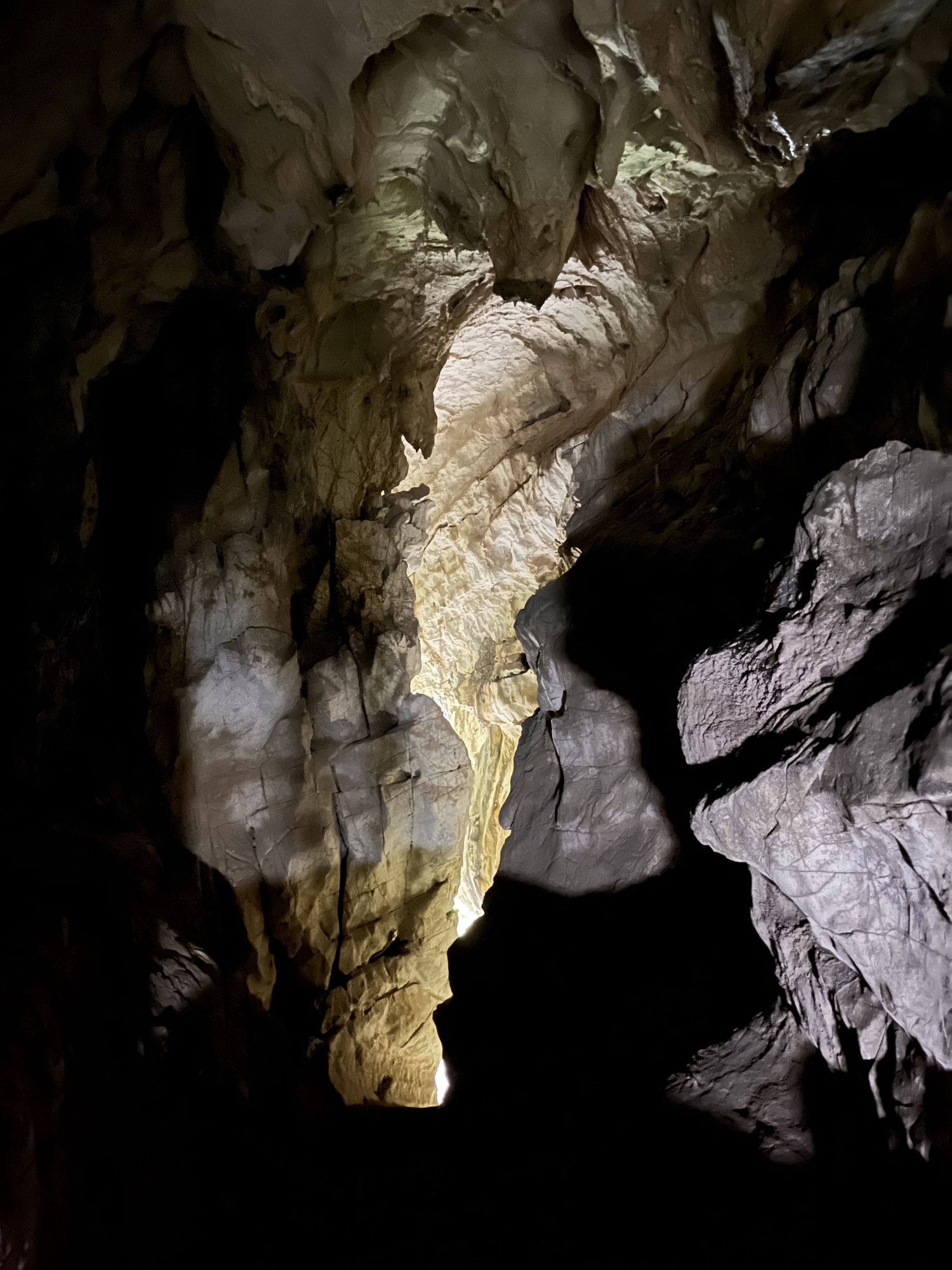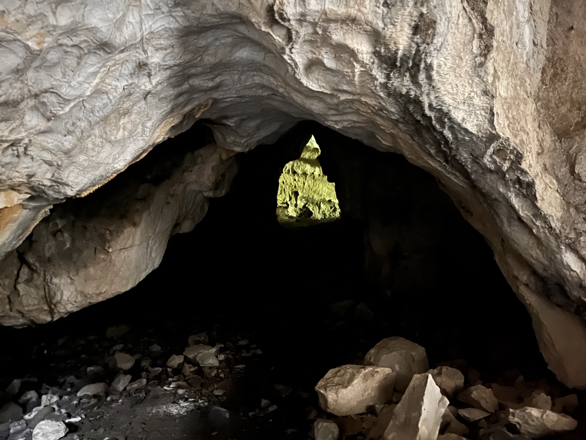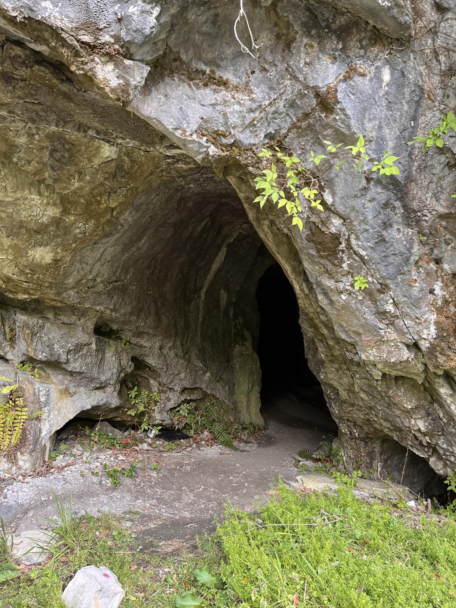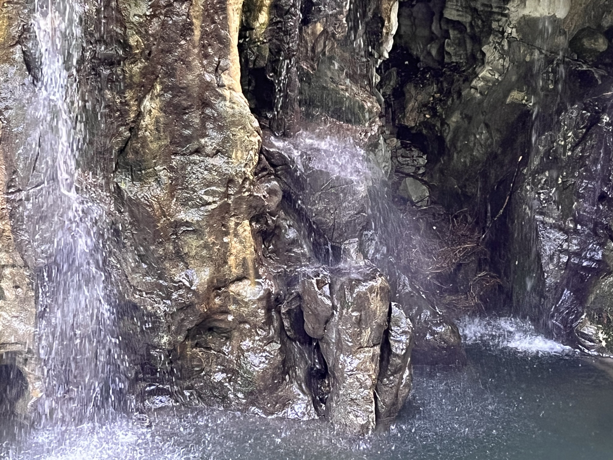 さて、国道挟んで向かい側で、鬼の穴の鍾乳洞は・・北側に小さな穴と、知らなかったけど、南に15mくらい行くと、大きな、そして、石段を登って少し上の方で、広い鍾乳洞。