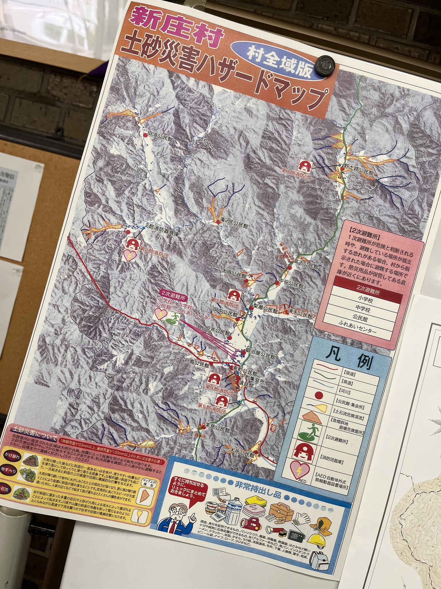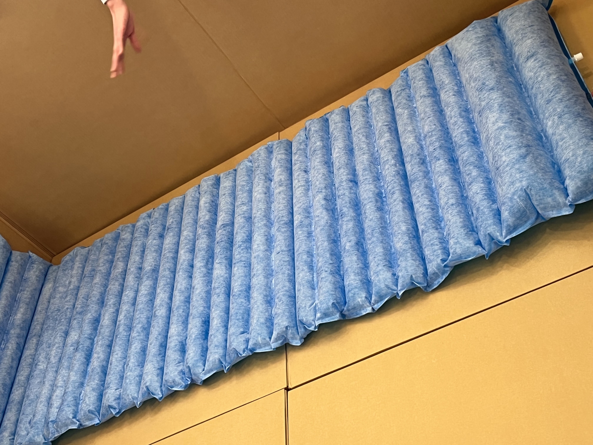 日曜日・・・地区の草取りの後に、村職員+消防団の一斉防災訓練。・・・・避難所・医務室で、エアマットと間仕切り版を。