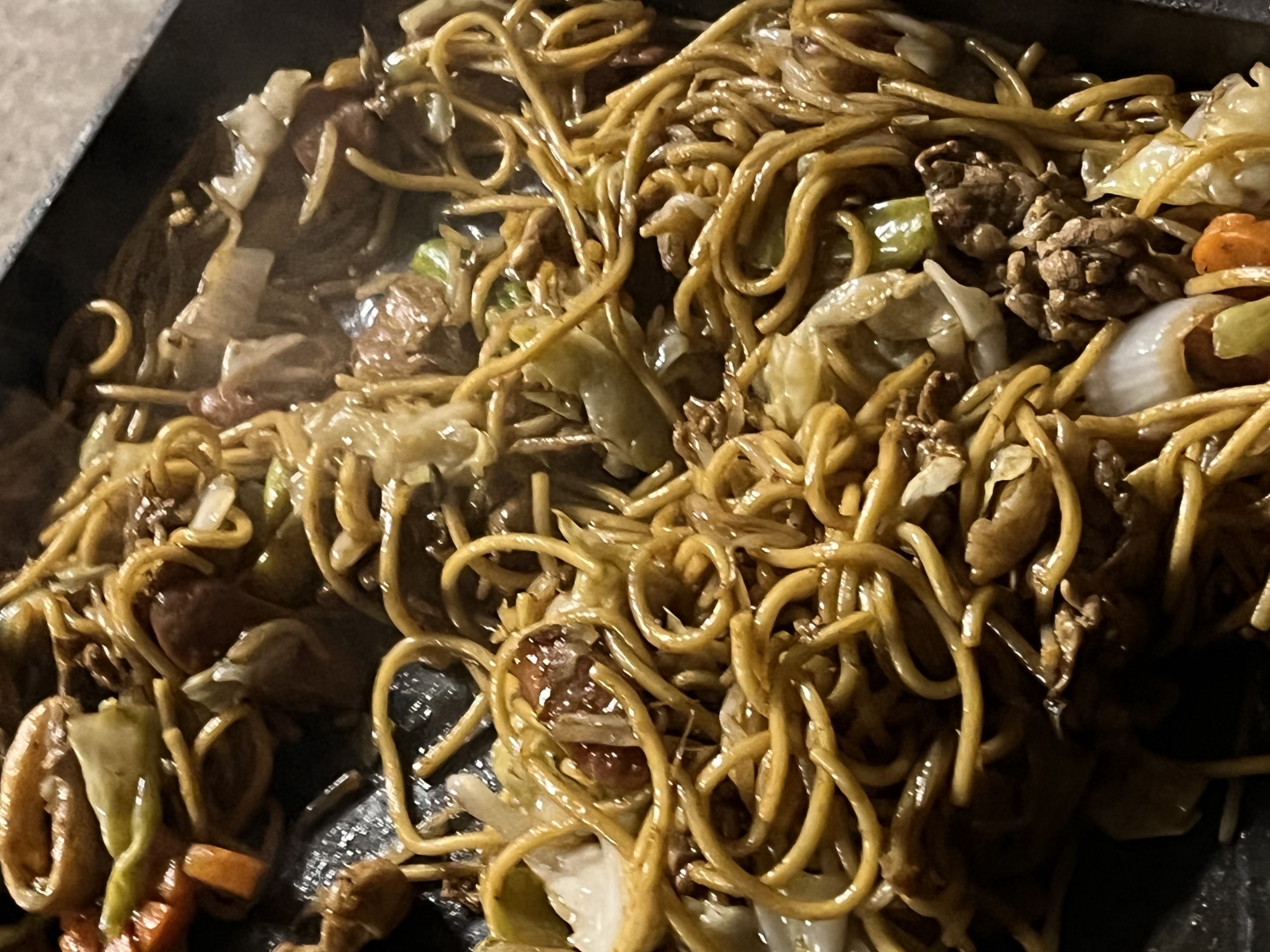焼きそばなんかも・・・ケーキ(お一人が、2-3日後にBIRTHDAY)も、