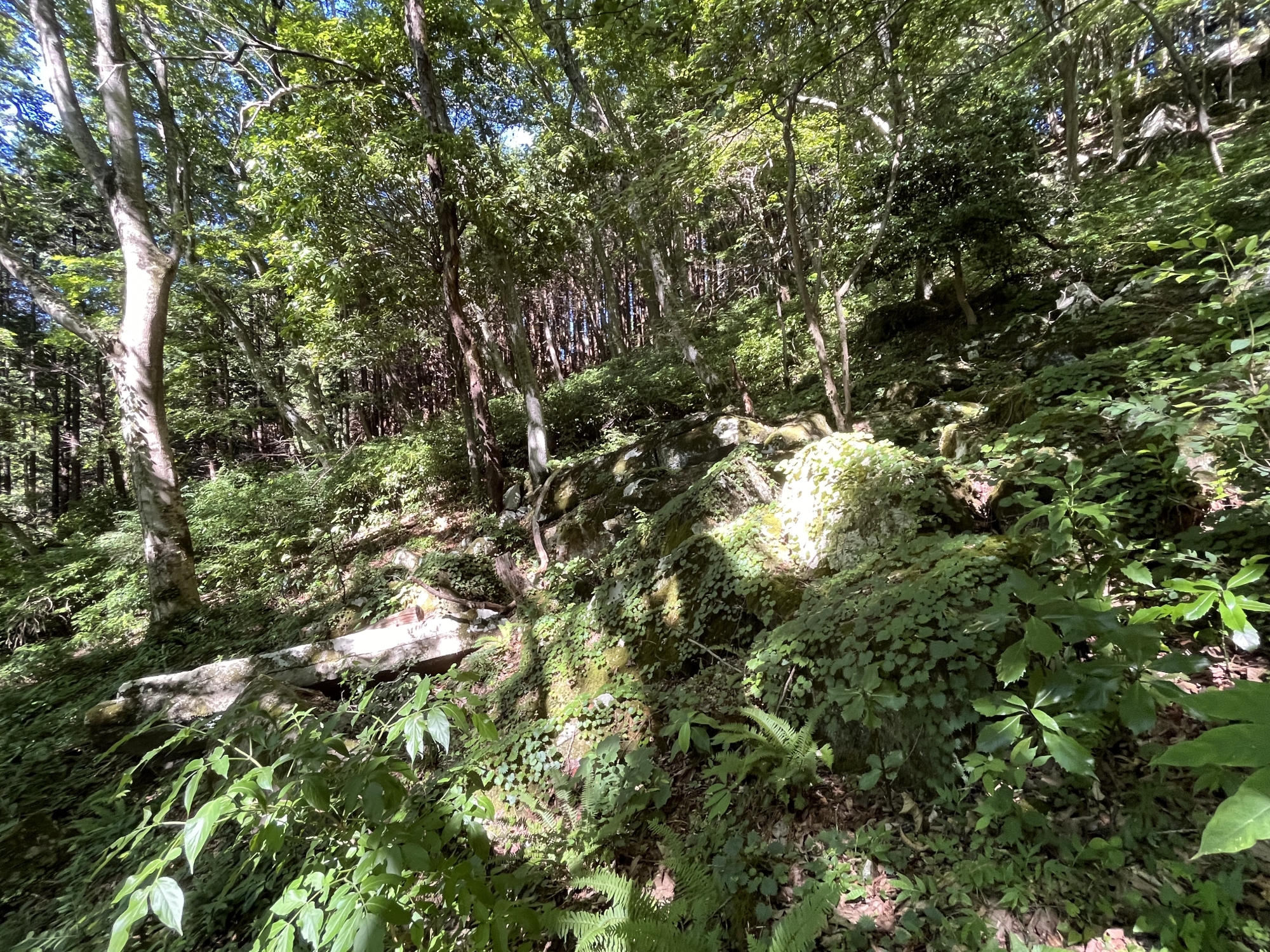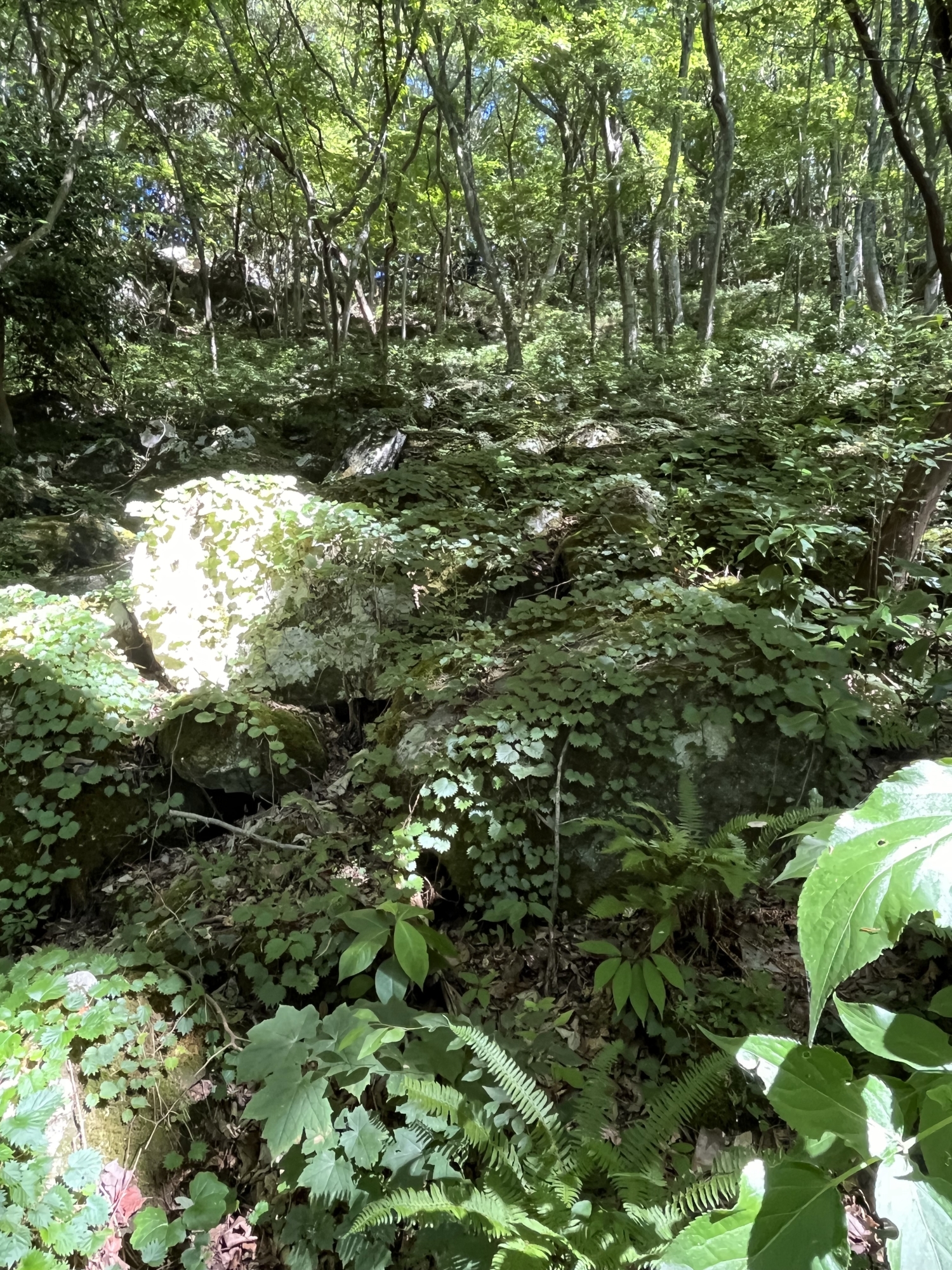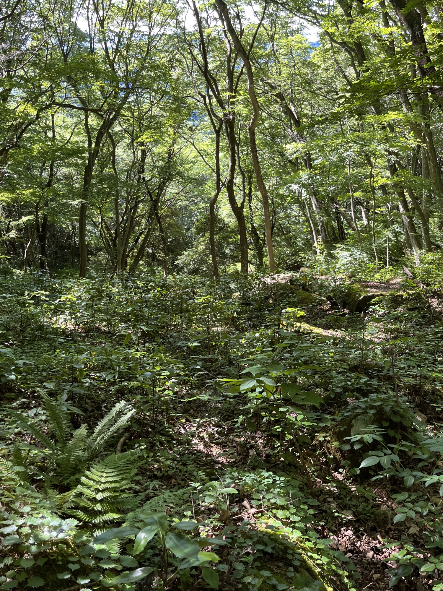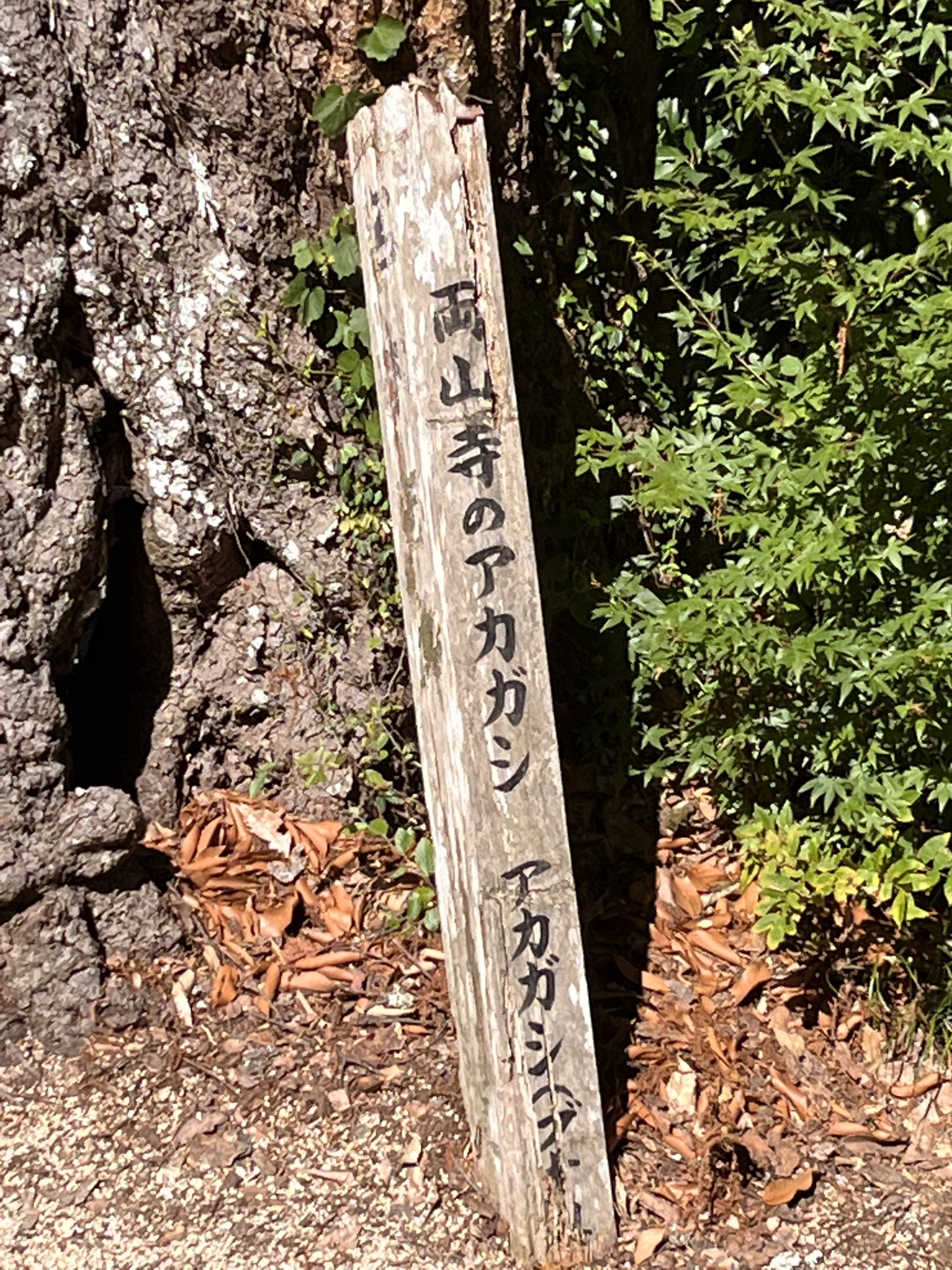 【両山寺周辺は、アカガシを優占種とする常緑広葉樹が分布し、両山寺から山頂付近にかけて樹林が広がっています。】