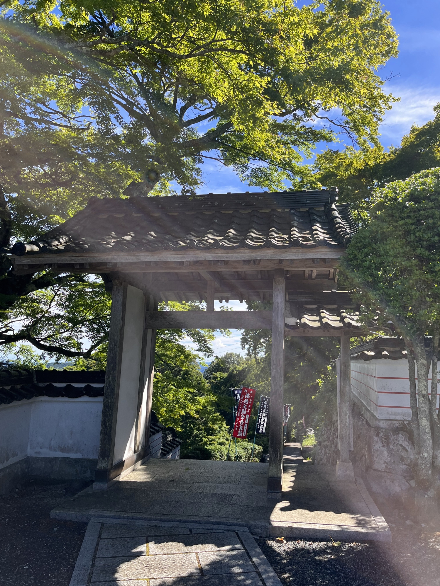 さて、山門の所ですが、先月は、古道を登ってきて、この向こうから、到着したんでした。