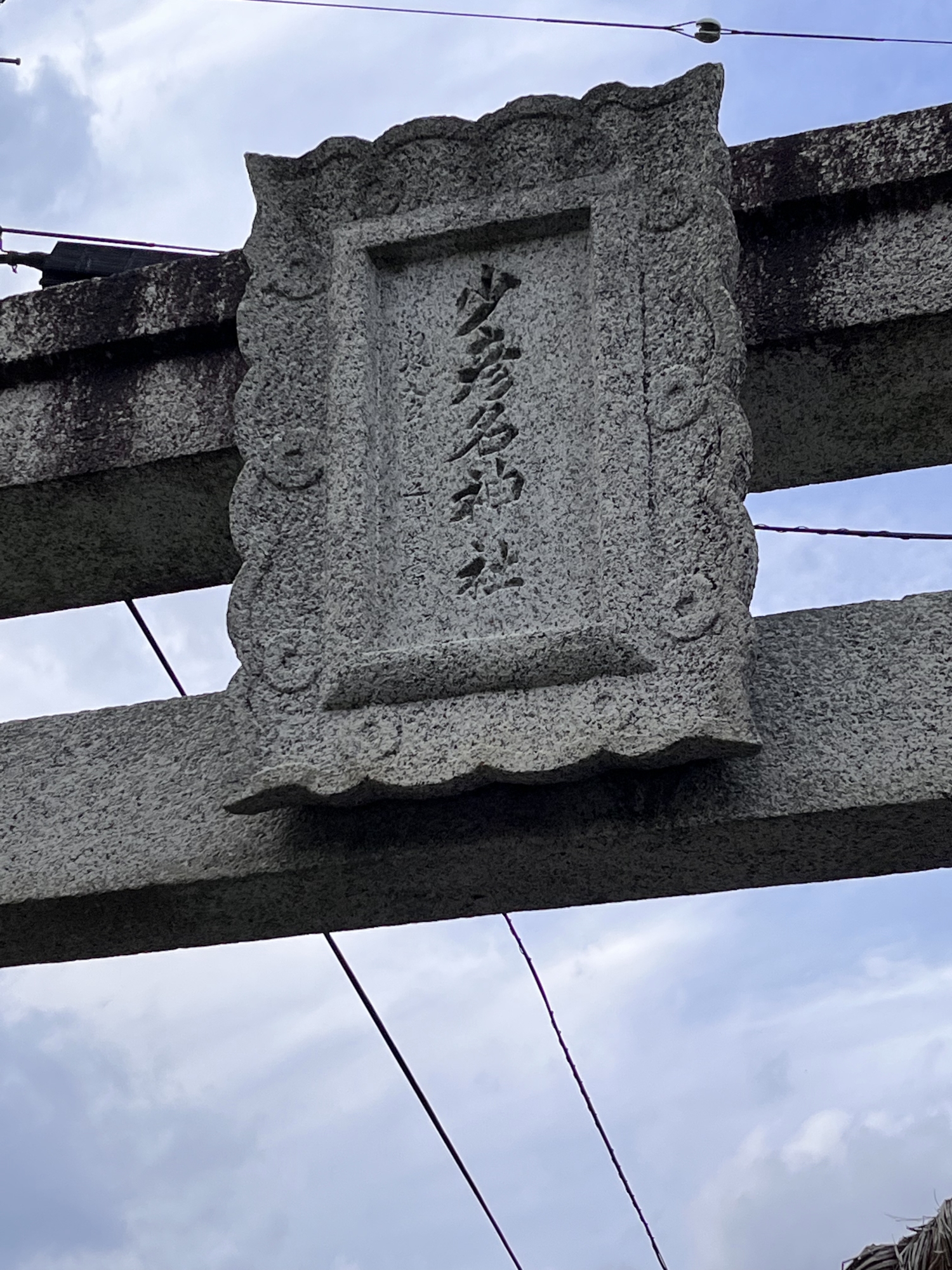 【当社は古くは「赤子の宮」、「赤子大明神」、「児(ちご)大明神」、「児の宮」、「児神社」等と呼ばれていたが明治6年(1873)2月6日、北条県から「油木神社」と改称され、更に同10年現在の少彦名神社と改められたものであり、少彦名命を主神とする油木北、油木上(久米町)、油木北、油木南(旭町)の4大字の産土神である。】