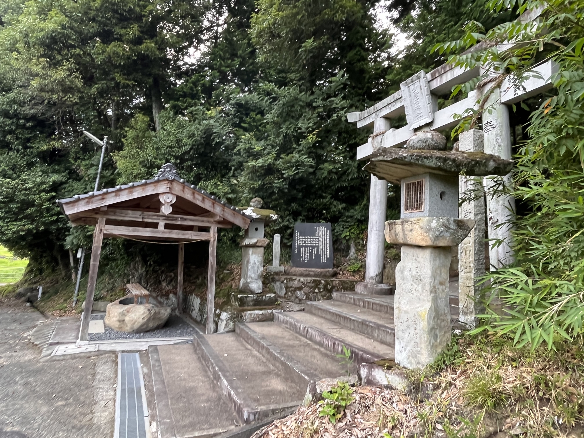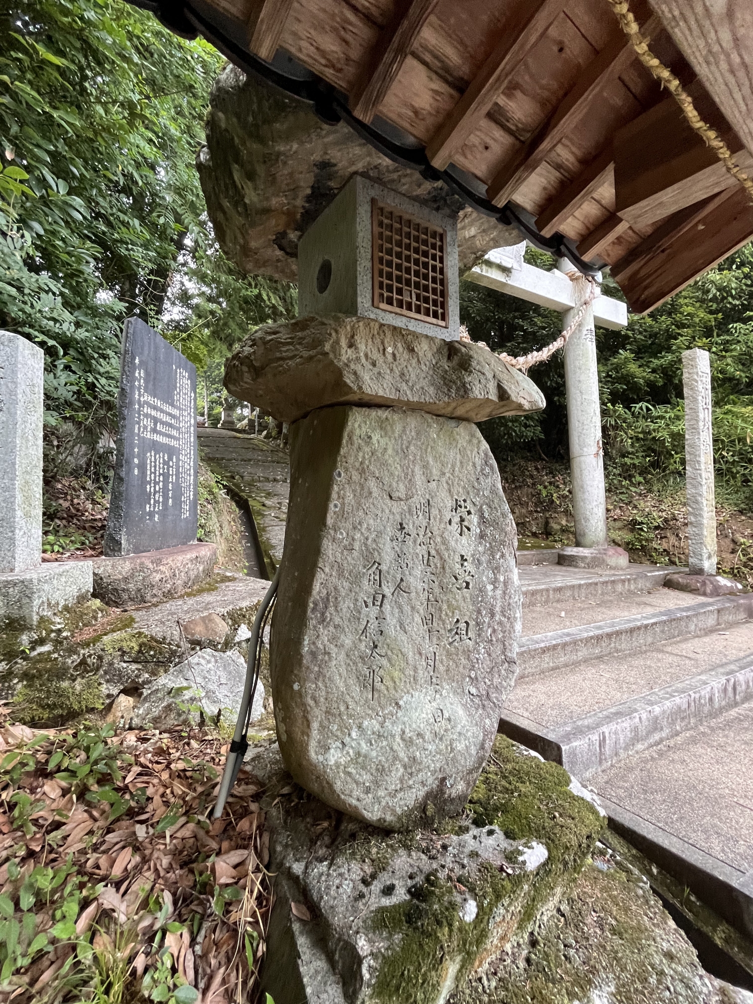 【一、本社創立又ハ主祭タル少彦名神勧請年月日不詳ナレトモ合祀タル伊邪那岐神、伊邪那美神、大己貴ノ三座ハ保元年間当大字ニ移住シタル倭文荘ノ地頭職森六郎コレヲ勧請ス、とあって由緒の大要を知ることができるのである。】