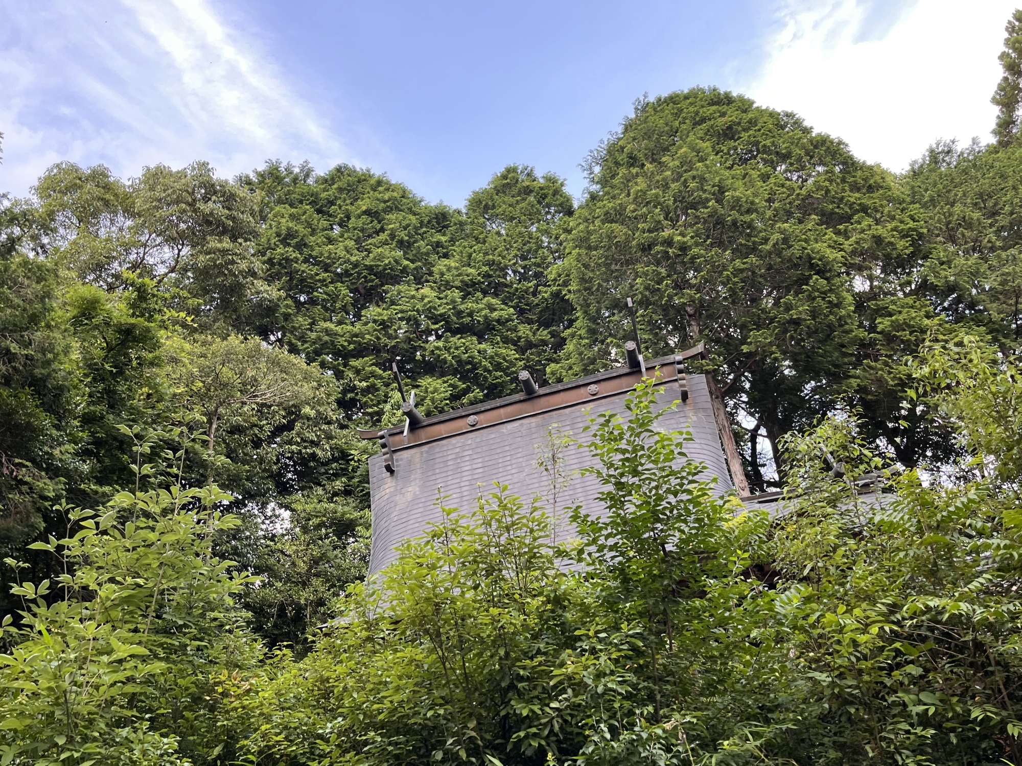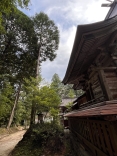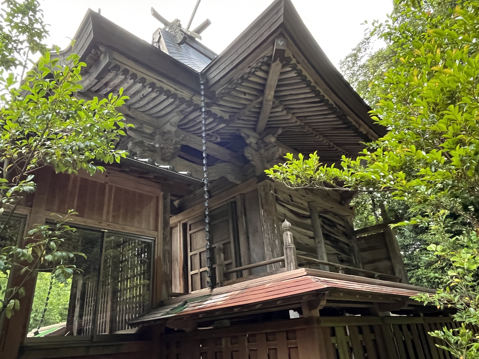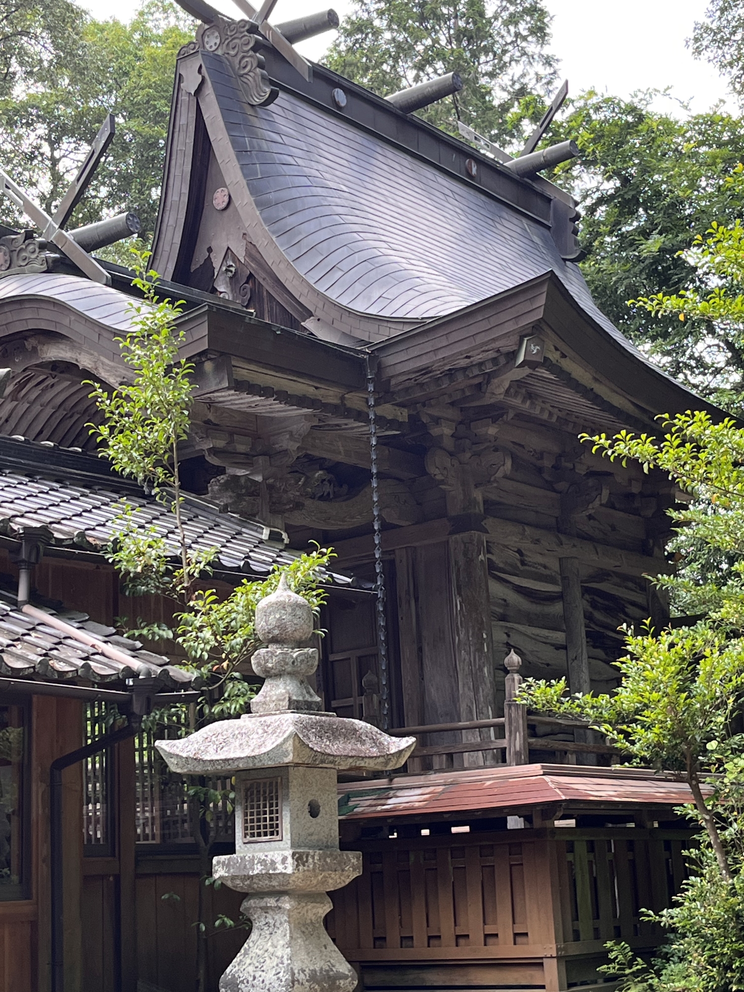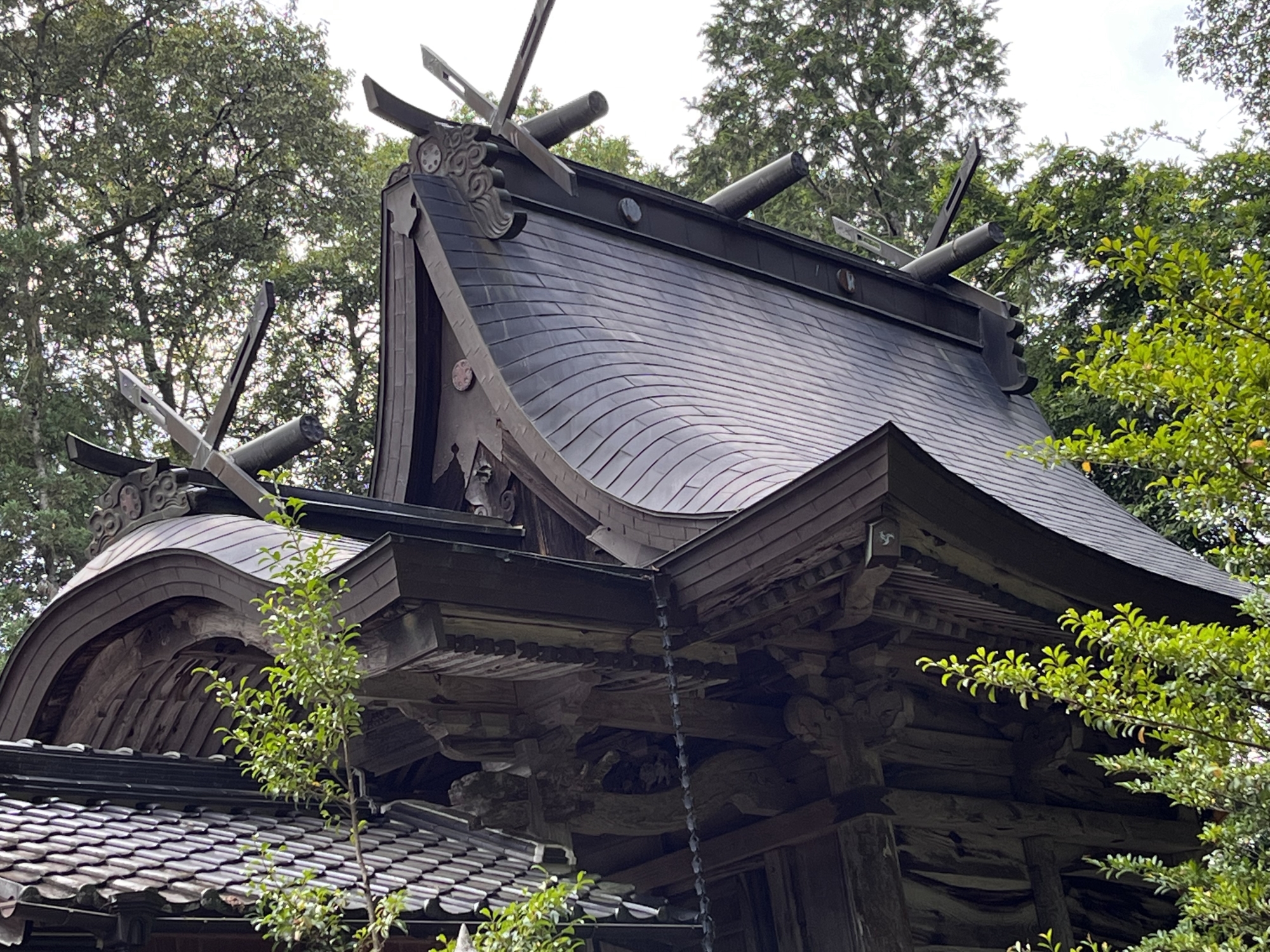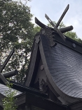 本殿の屋根は、急峻でとがっています。