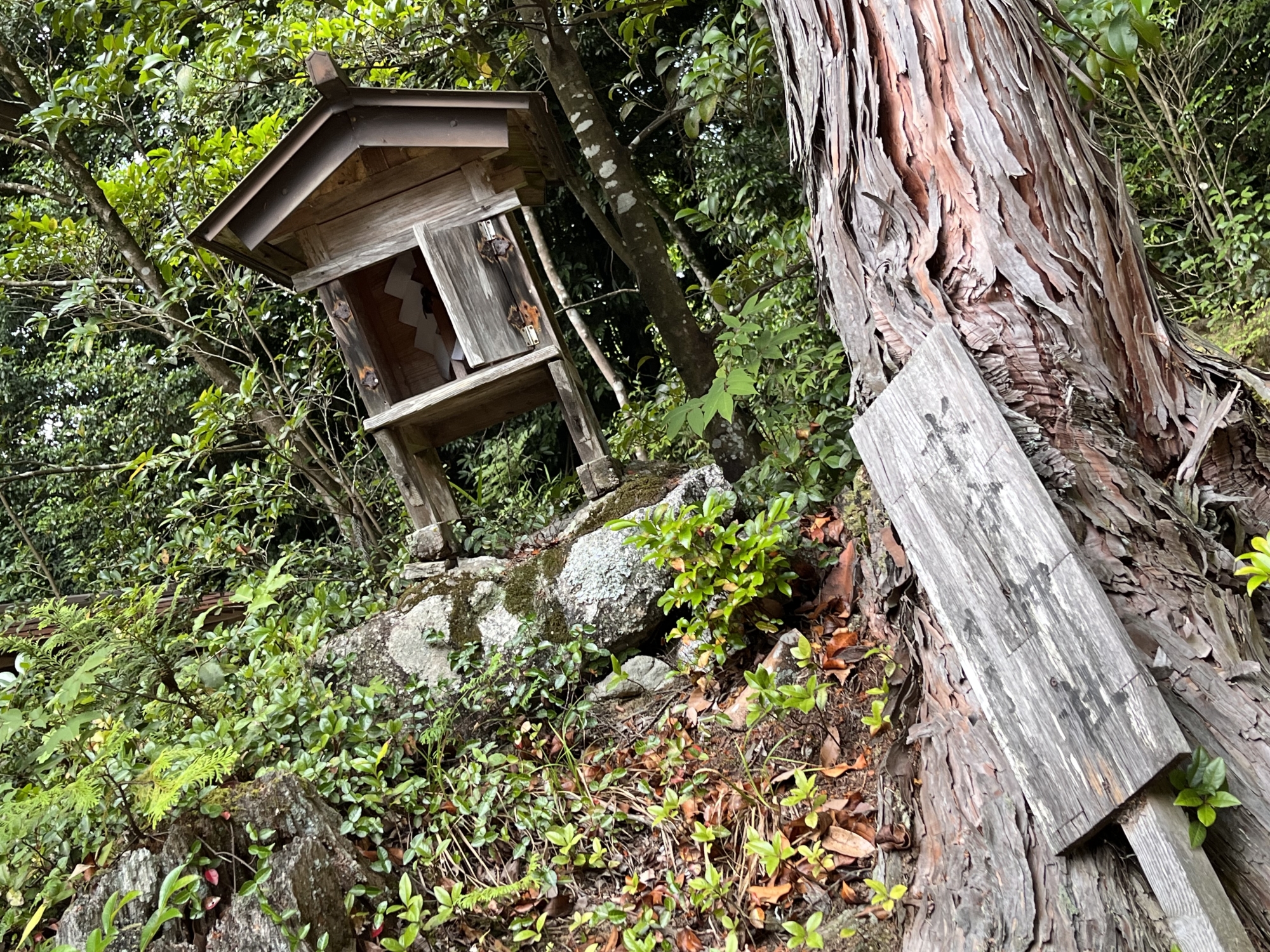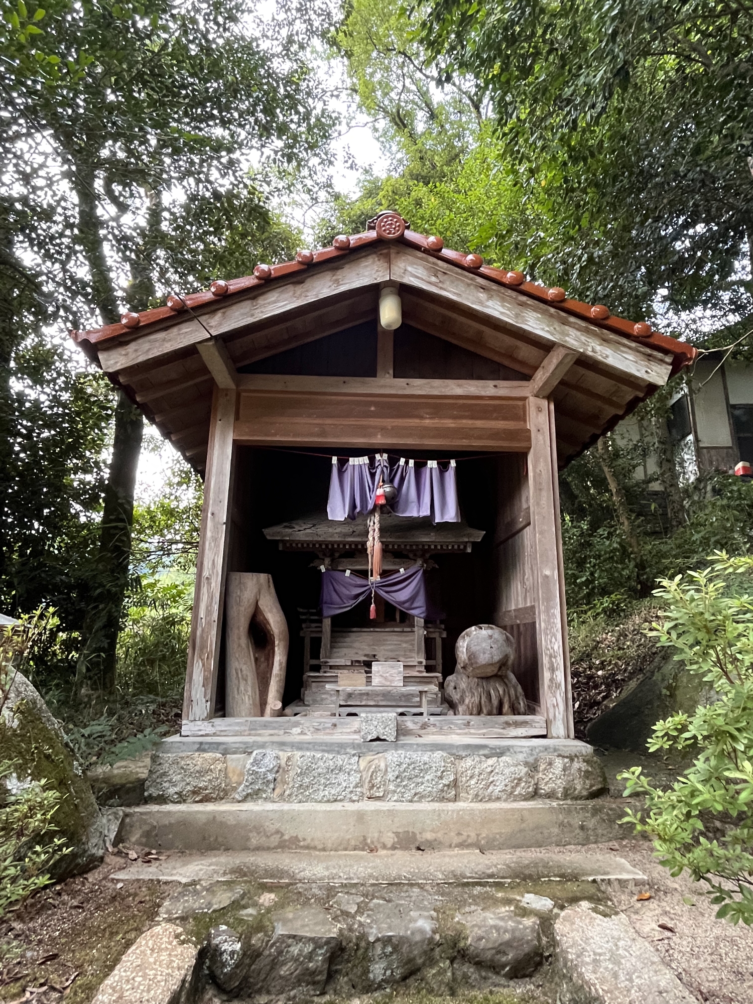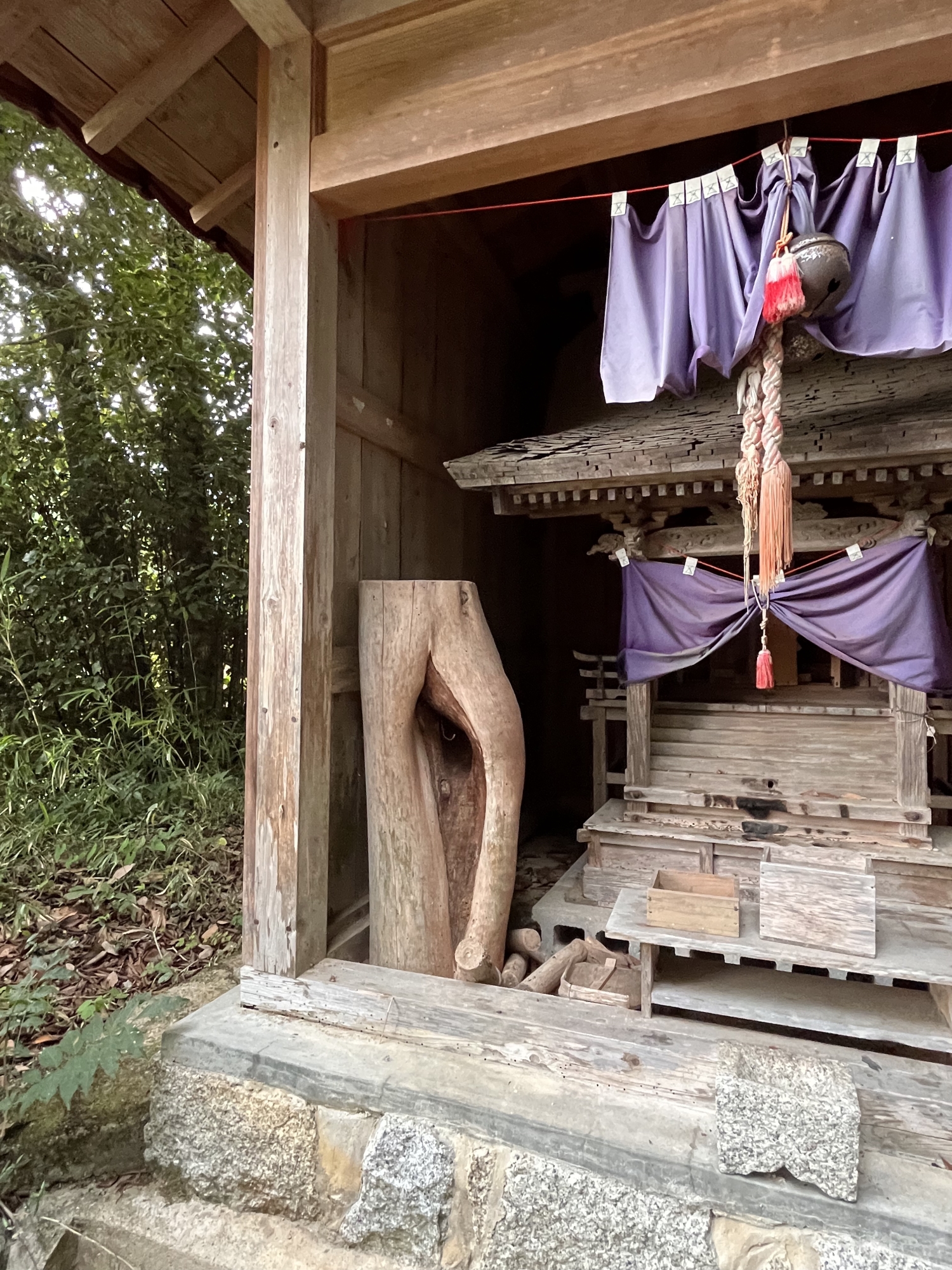 さて、お隣に・・岩滝神社/輿渕神社 ~ よく見るとこちらこそが、「赤子の宮」っていうか、祠の左右は、木で、陰陽っていうのか、雌雄っていうのか・・・です。