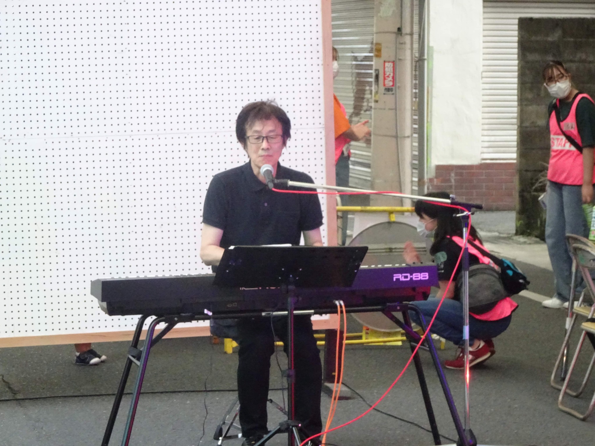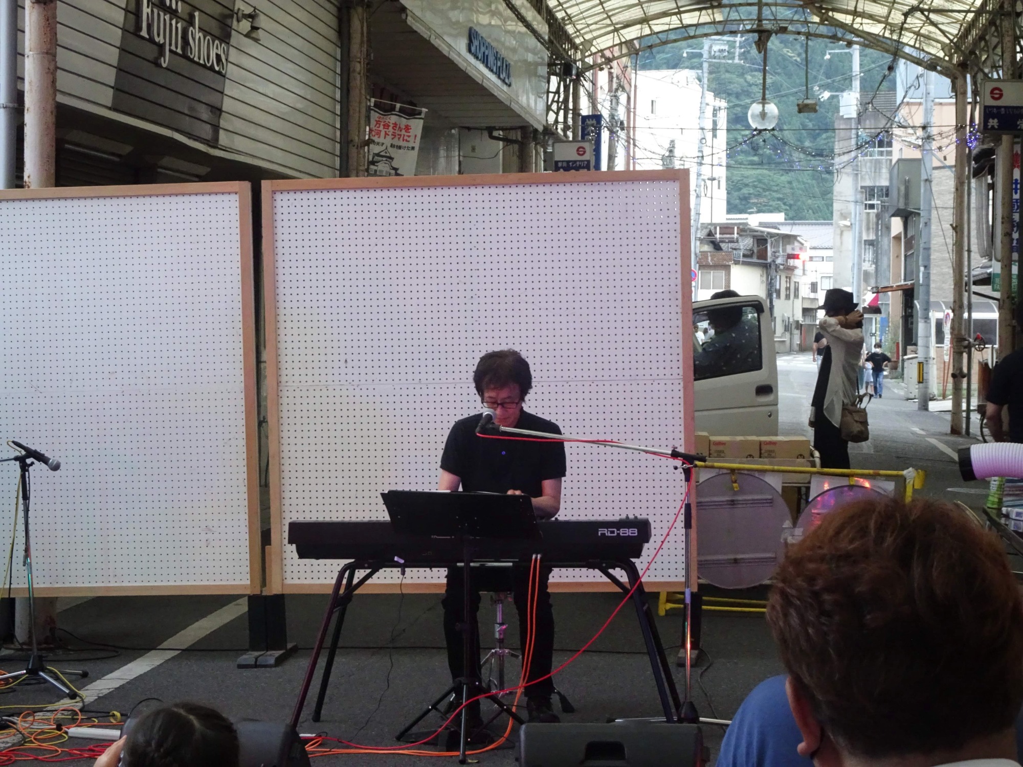 商店街会長(パティスリーシャロンさん)や、向かいの実行委員長さんのご挨拶から・・・エレクトーンの「アザラシ」さん・・・MCは高校2年のNさんでした。