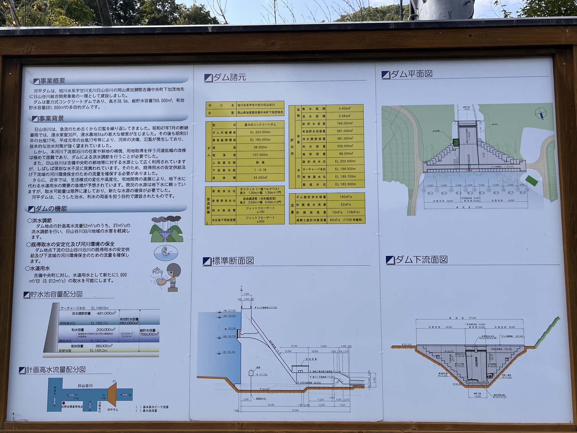 【・建設の目的は、洪水調節を行い下流域の氾濫を防止することや、吉備中央町へ水道用水の供給、また農業用水の安定供給、河川環境の保全などです。】