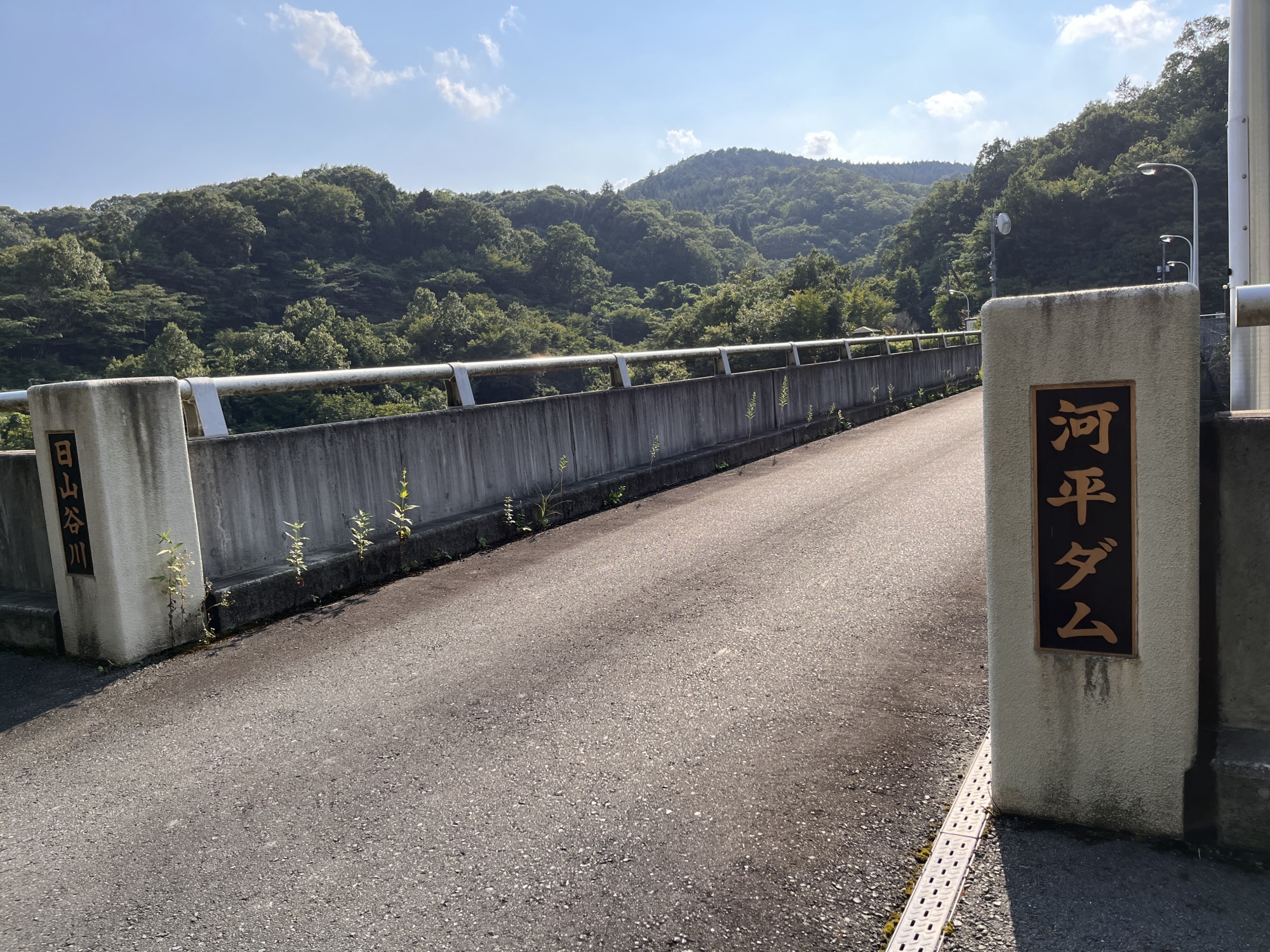 【・河平ダムは旭川水系宇甘川左支川日山谷川の左右岸加賀郡吉備中央町下加茂地先に、日山谷川総合開発事業の一環として建設された、堤高38.5メートル、総貯水容量769千立方メートルの重力式コンクリートダムです。】