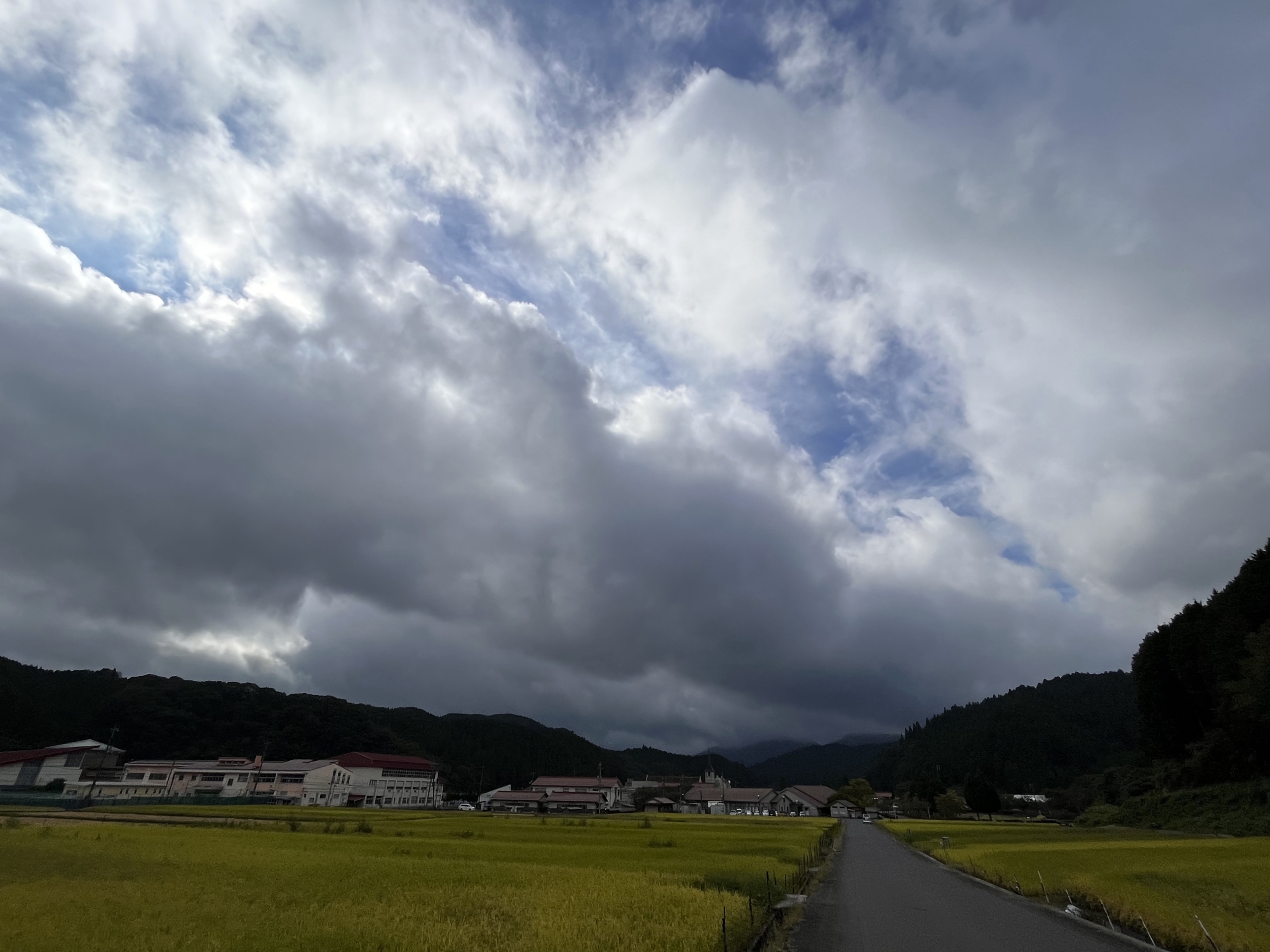 昼散歩・・途中からぽつりぽつりと雨・・稲刈りもぎりぎりで終わったみたいです。