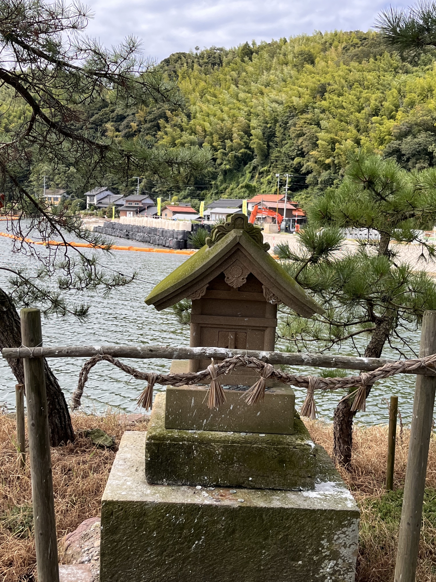 【祭神などは記されていないが、毎年四月の例祭には赤い幟をたて、小麦藁を編んだ船に大漁丸と大書きした帆を立てて中海に流し大漁を祈願するそうである。】