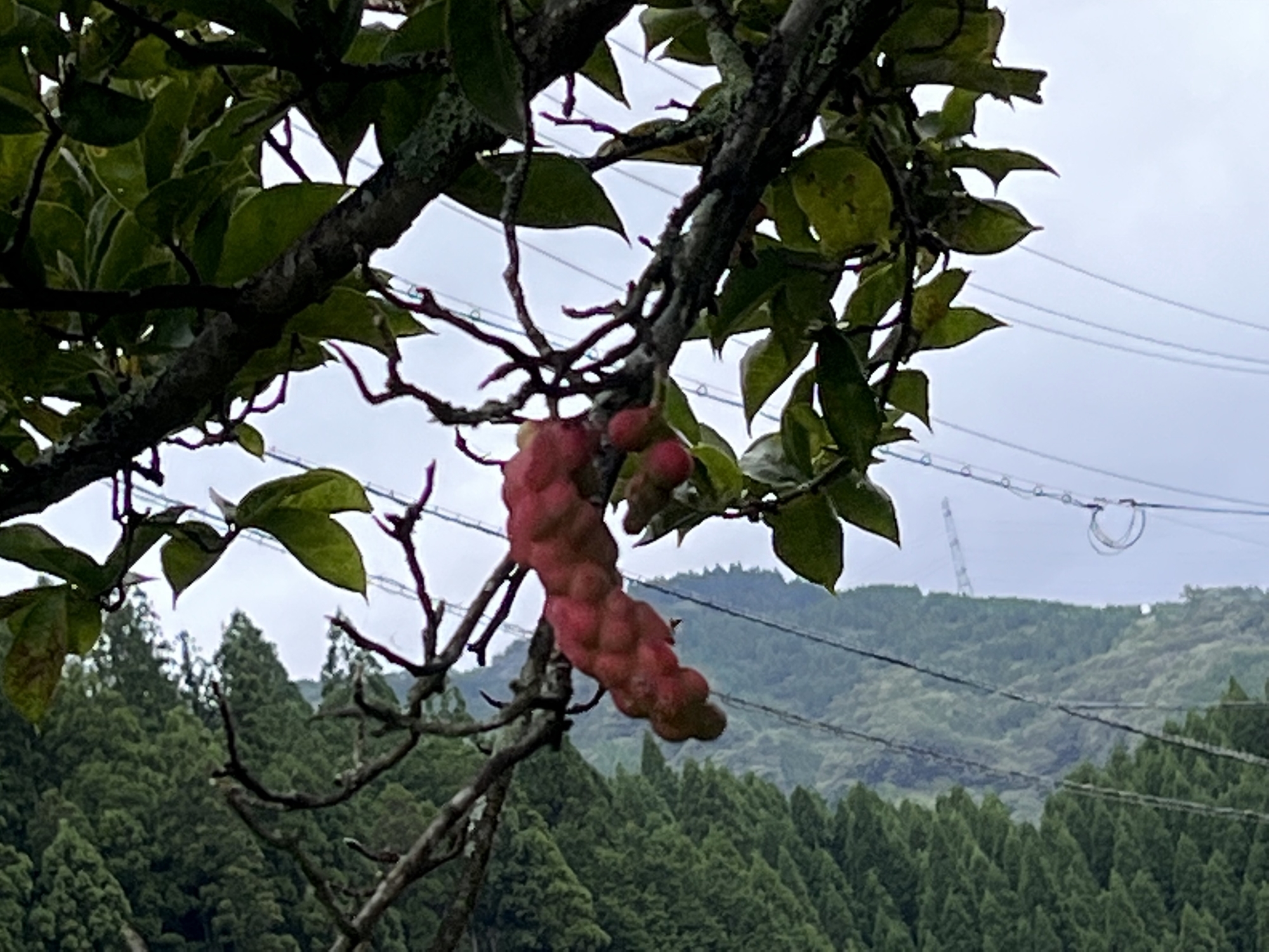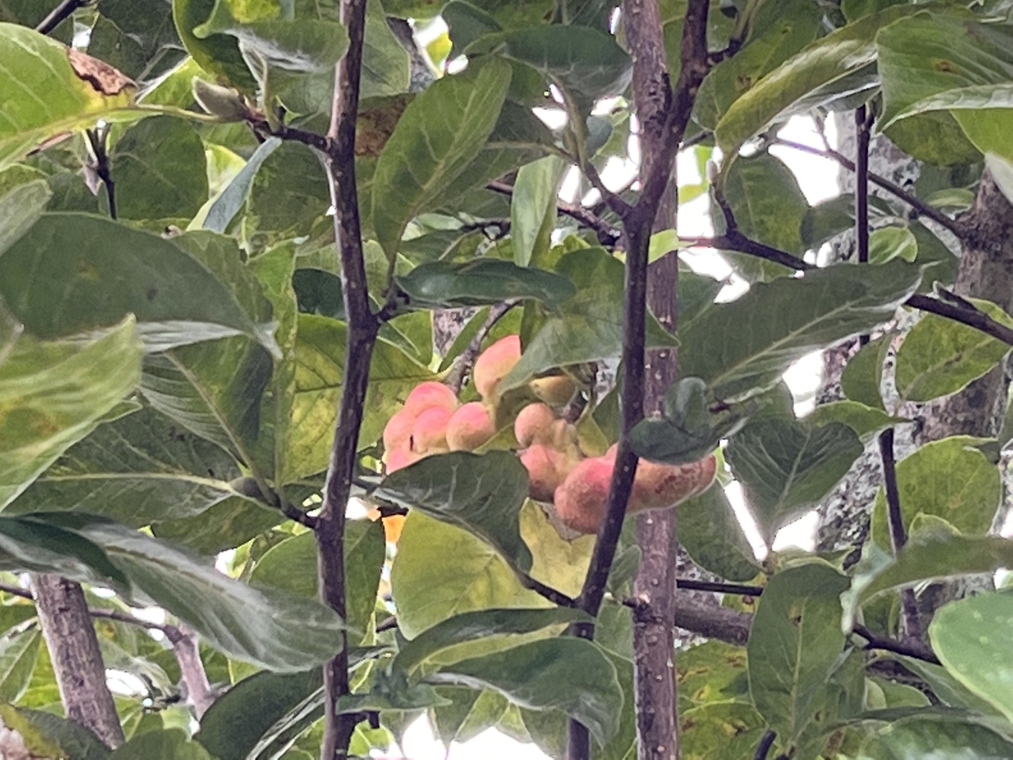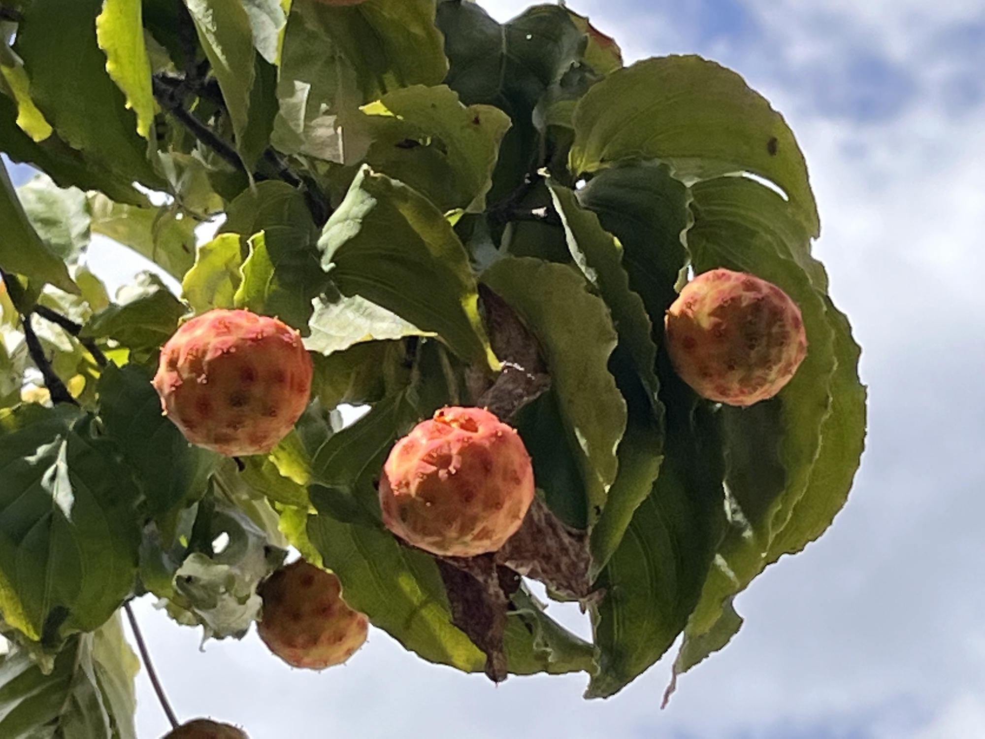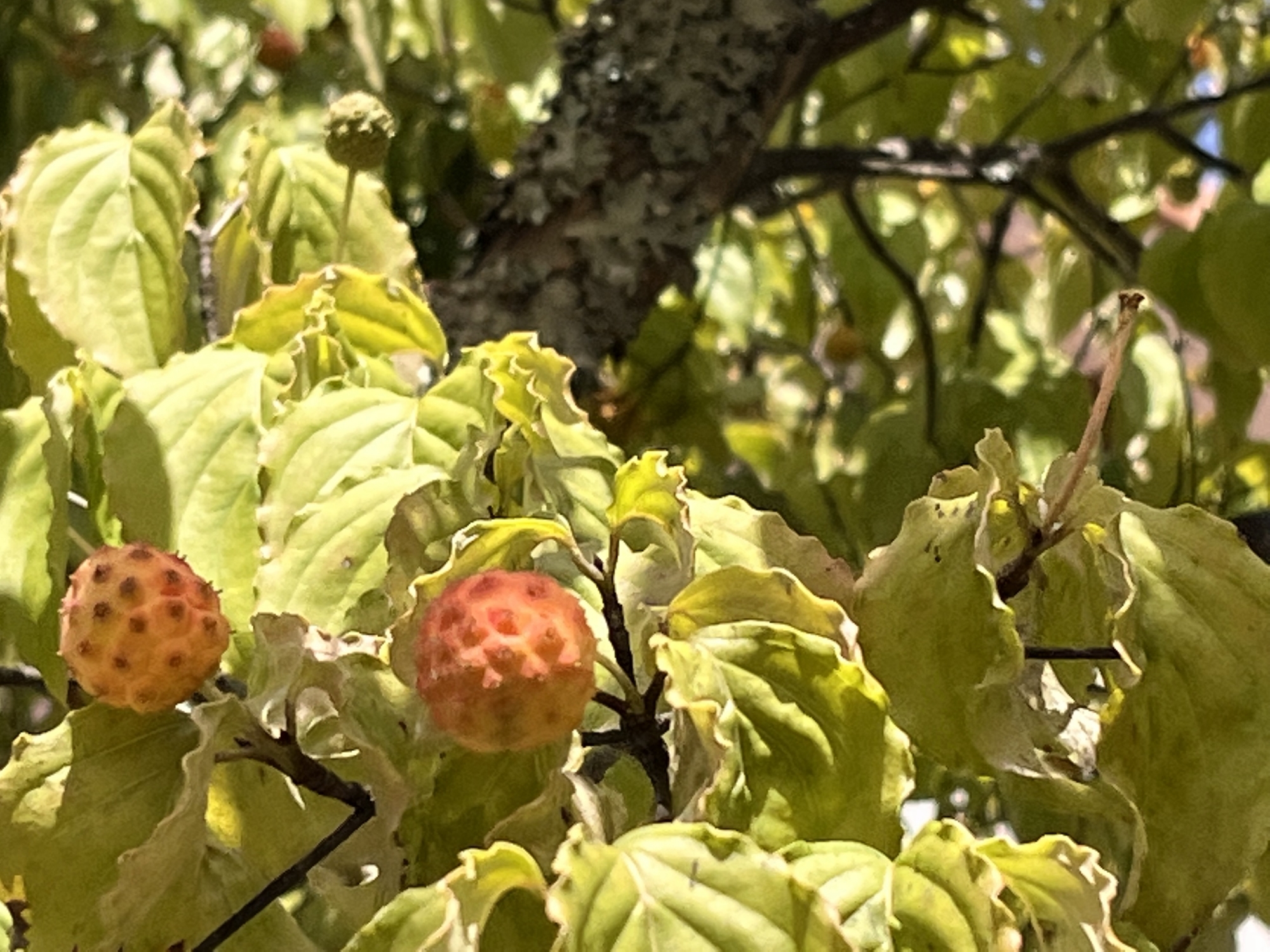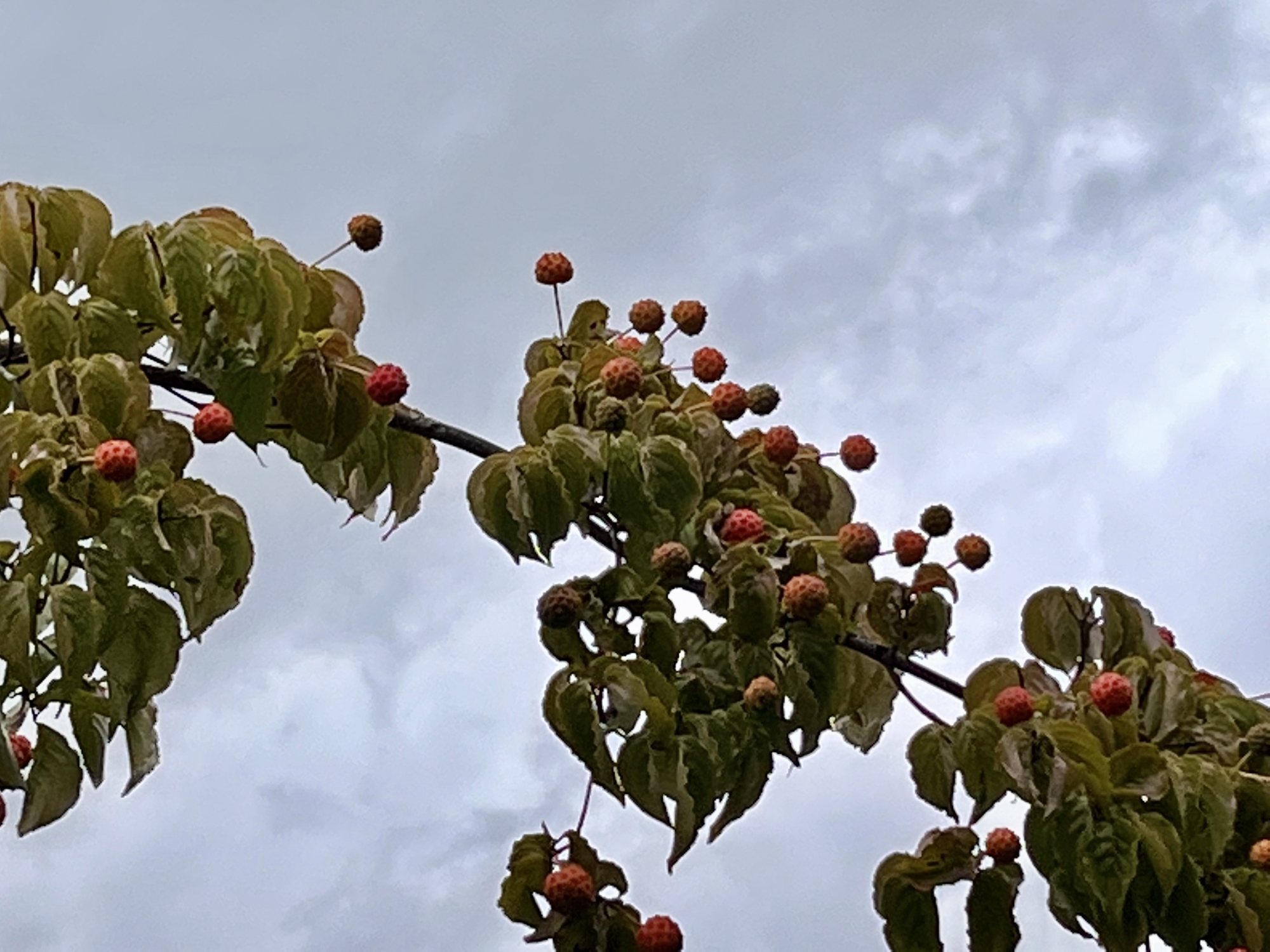 昼、ヤマボウシも、赤いのが増えました・・・