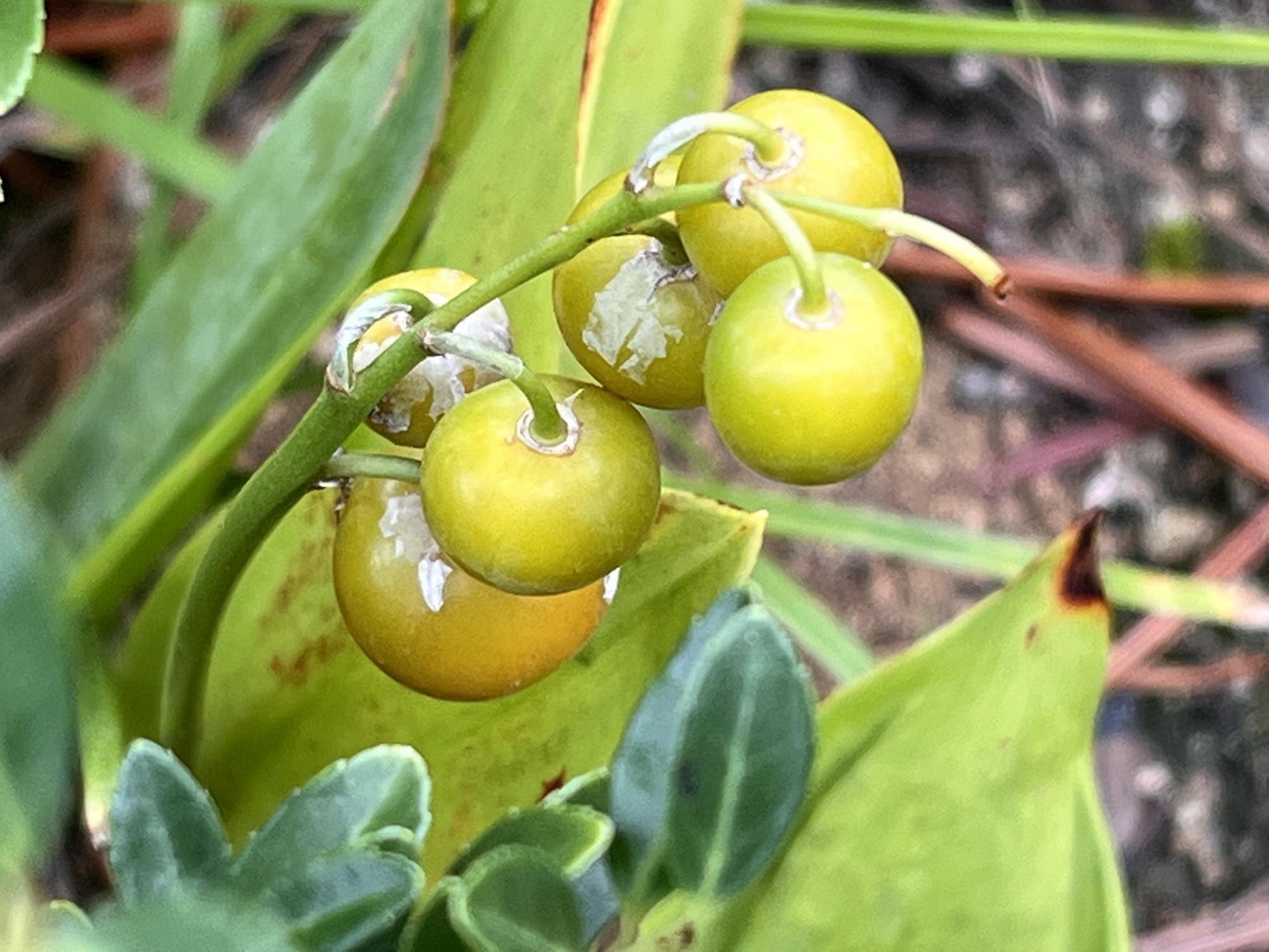 朝の黄金色と・・院長室前の・・ヤマボウシ、鈴なり。