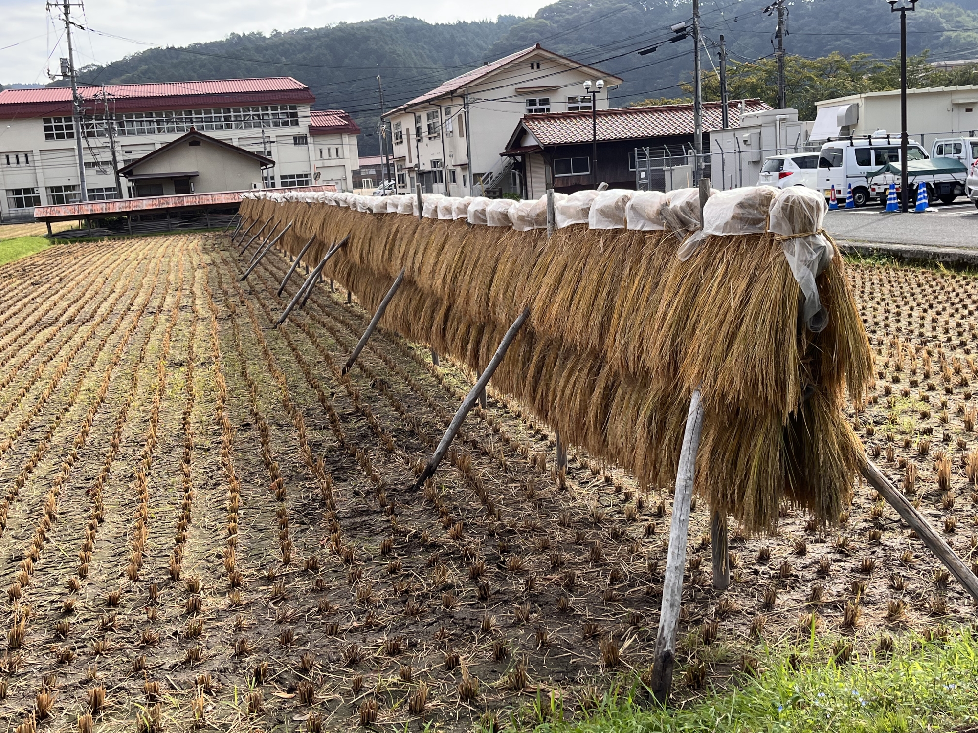 稲刈りが終わって・・・天日干し:稲架