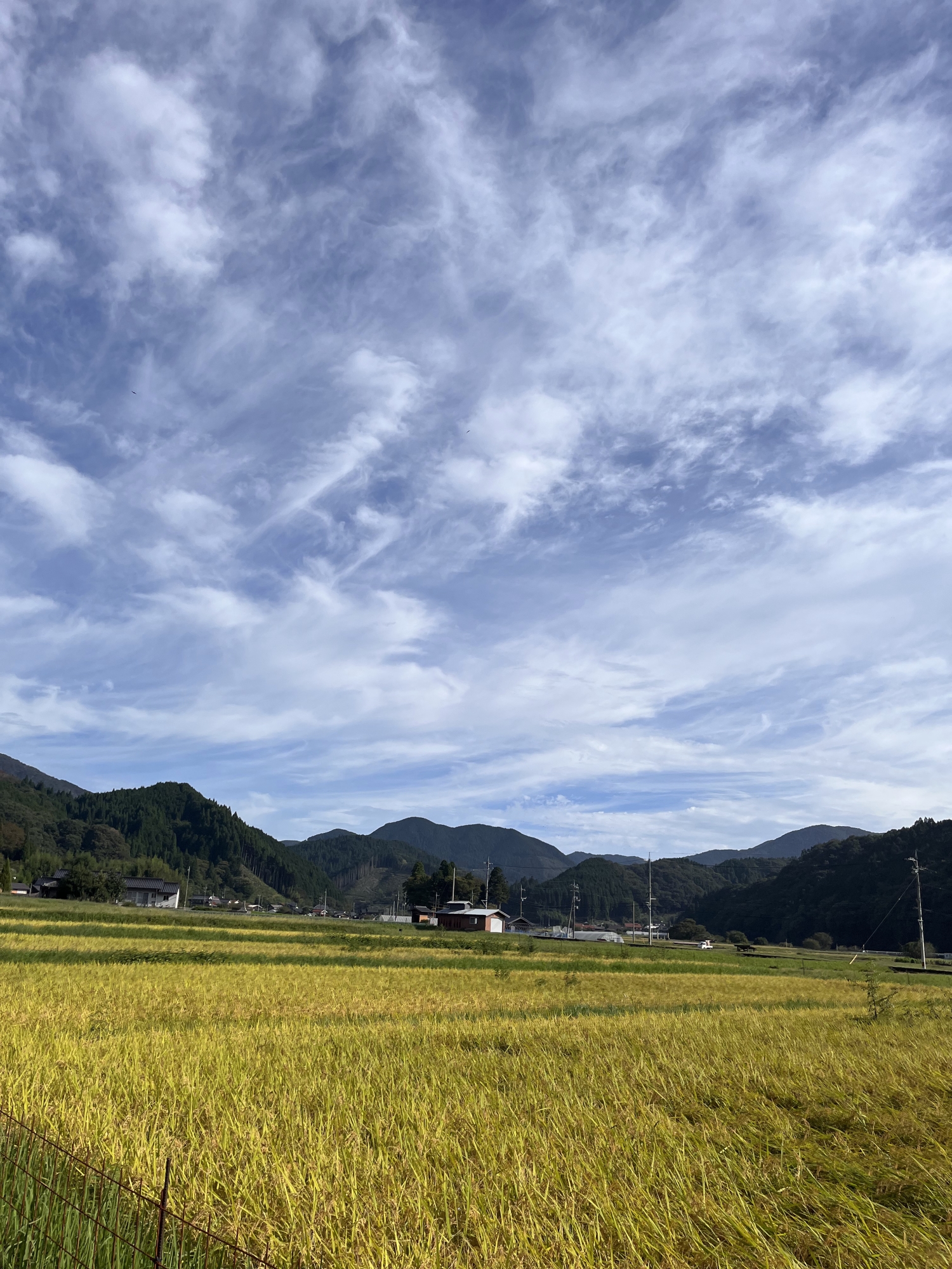 朝・・まだ、稲刈りの済んでいない田も。