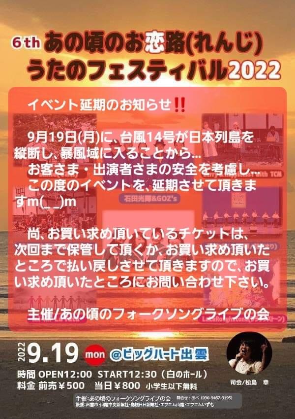 9月18日:BEXXさんproduceで境港「海みなと公園のLIVEに出演します。