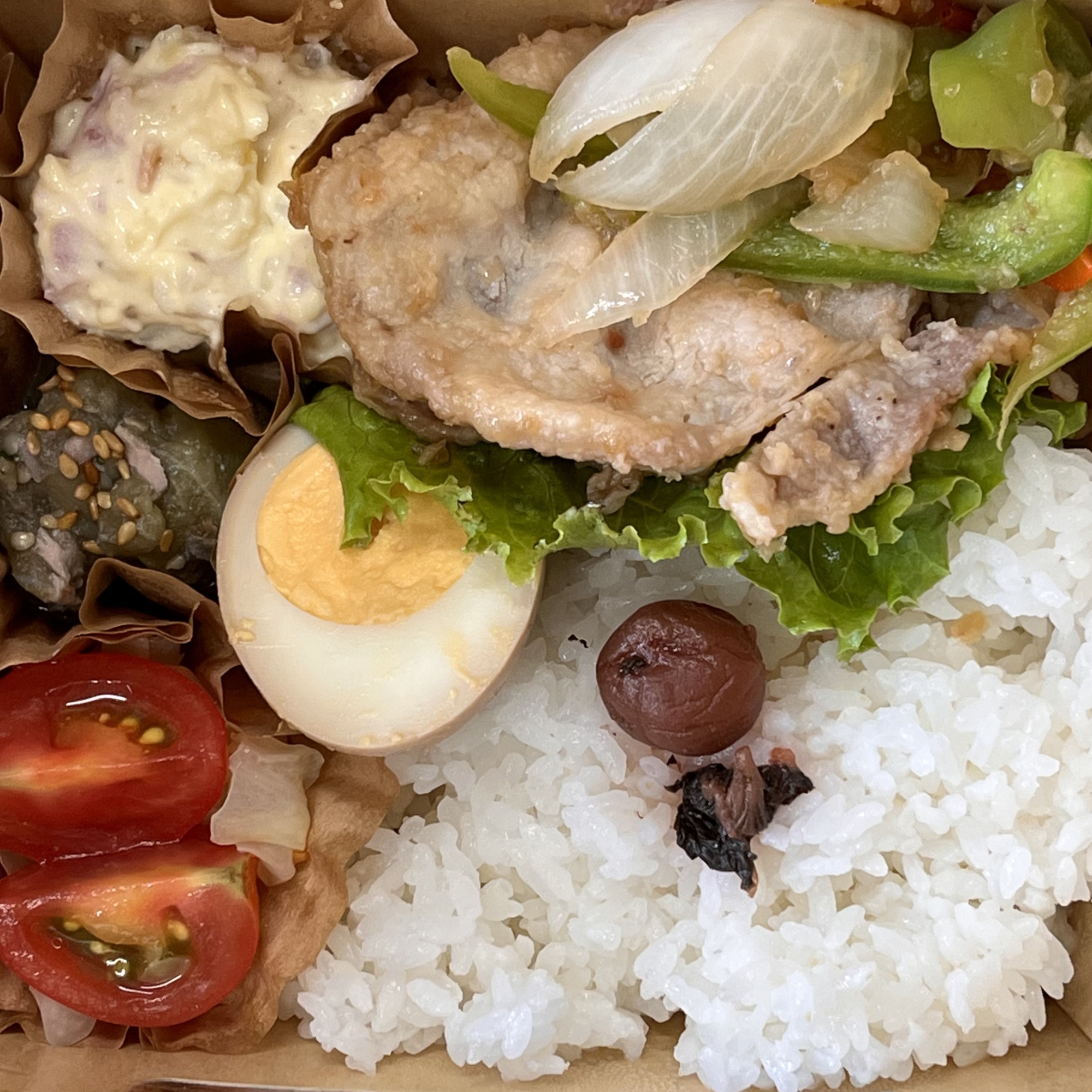 そして、今日は、月いちレストラン「里山クッチーナ」のデリボックスは、生姜焼きです。これ、本当、好き、濃すぎないのが良いです。
