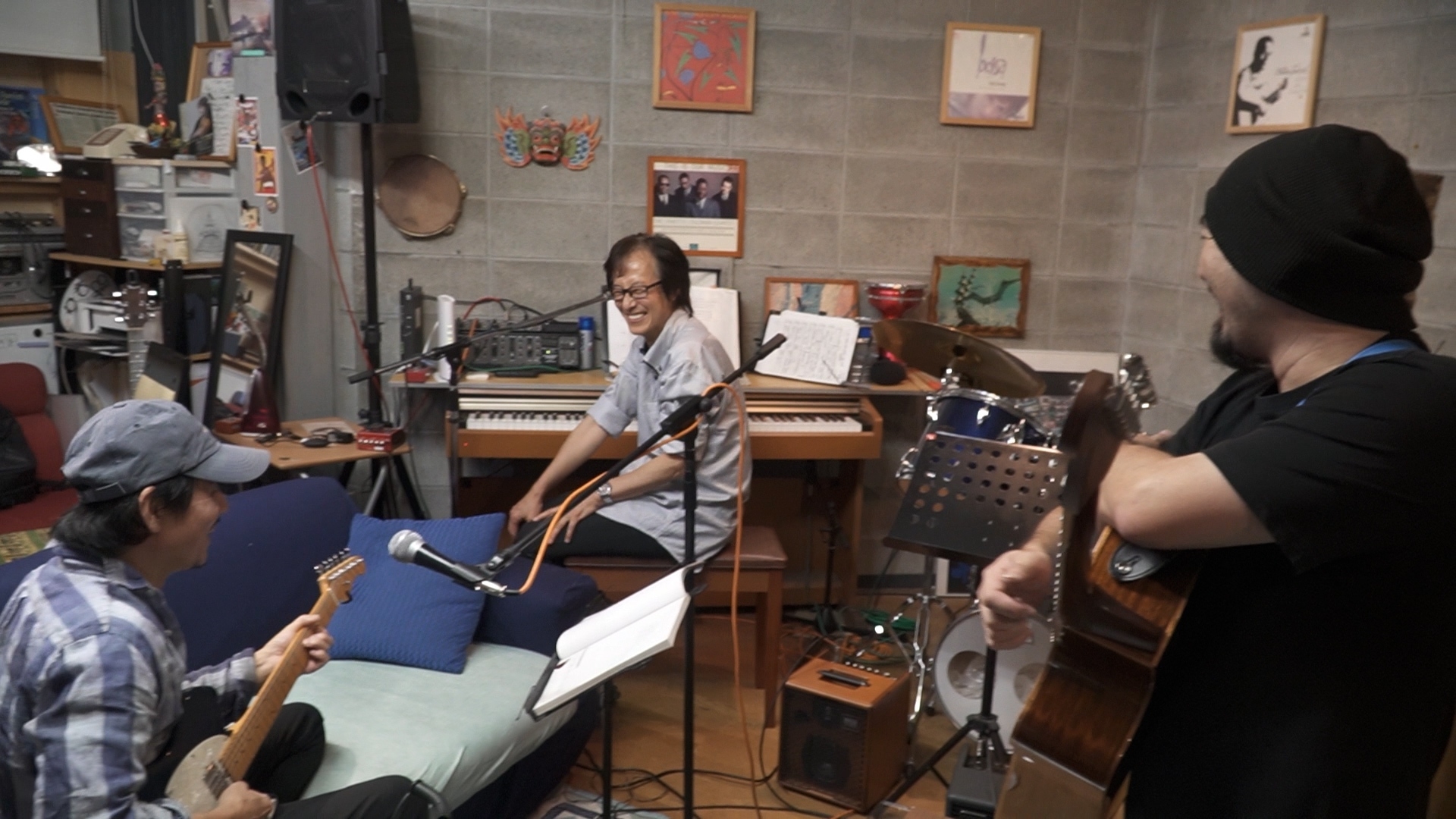 11月3日:新庄村ふれあい公園で「社のコンサート」ヒノキギターとの融合です。~この準備で、倉敷のフェリーペ中村さんのスタジオで、Poloさんも、そして大西監督や京兼さんも、集まりました。