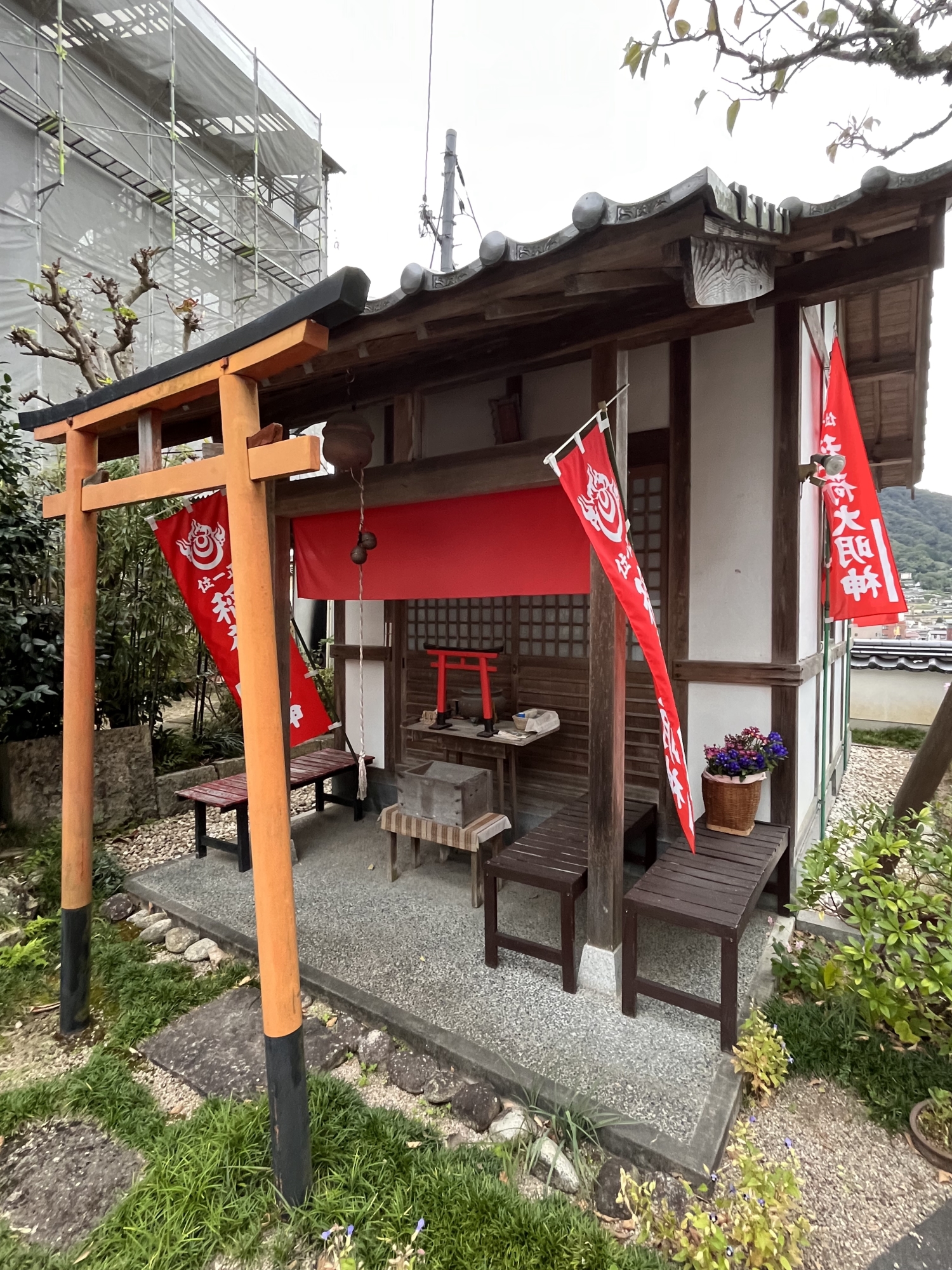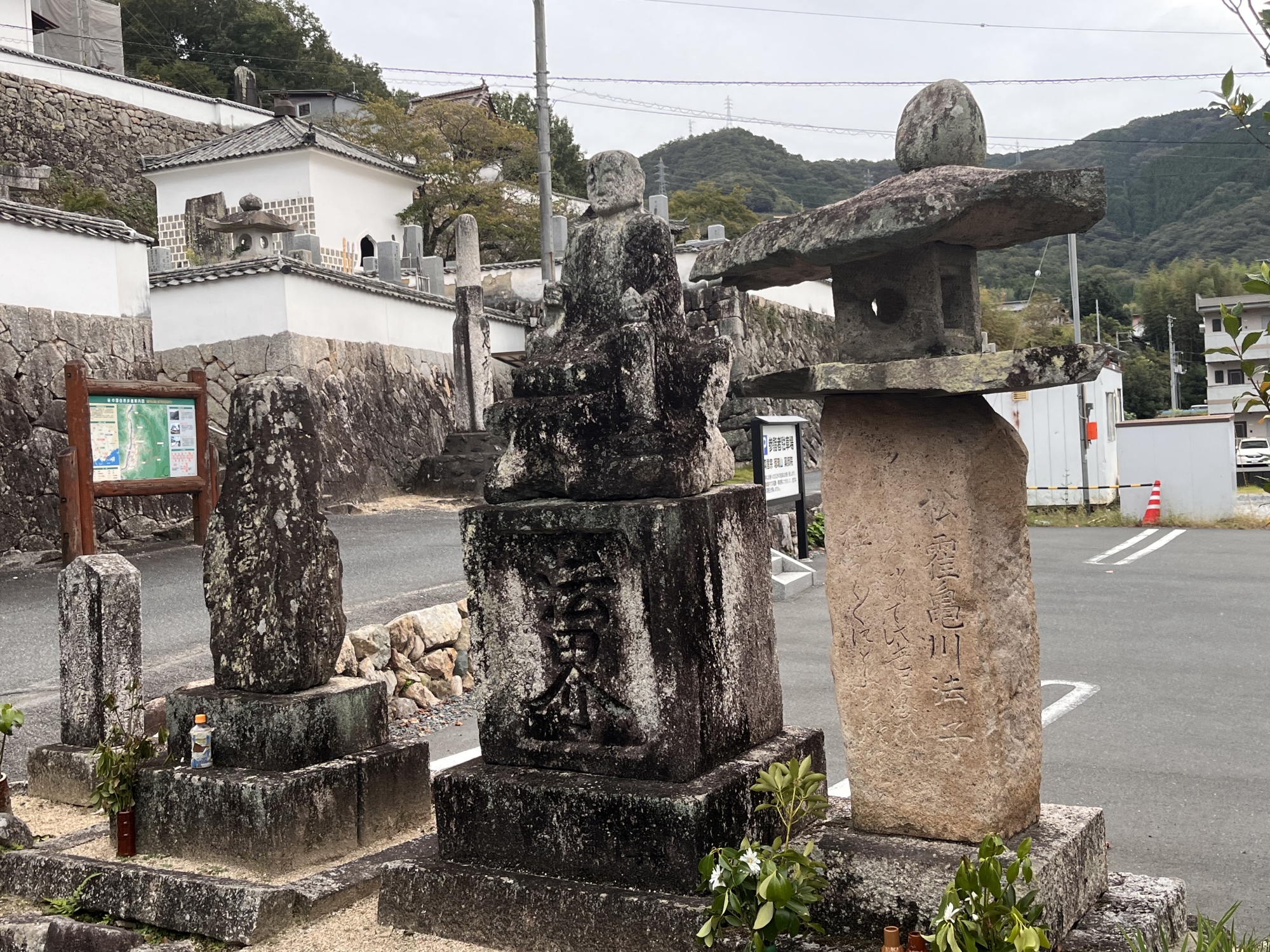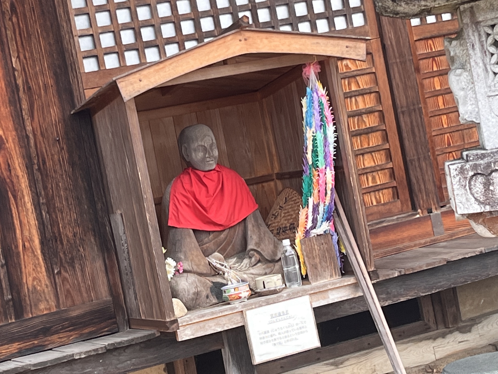 【山門右にある大仙堂の石造延命地蔵(市指定重要文化財)は鎌倉期の作風を感じさせるもの裏山には西国三十三観音霊場があり、参拝者がたえない。】