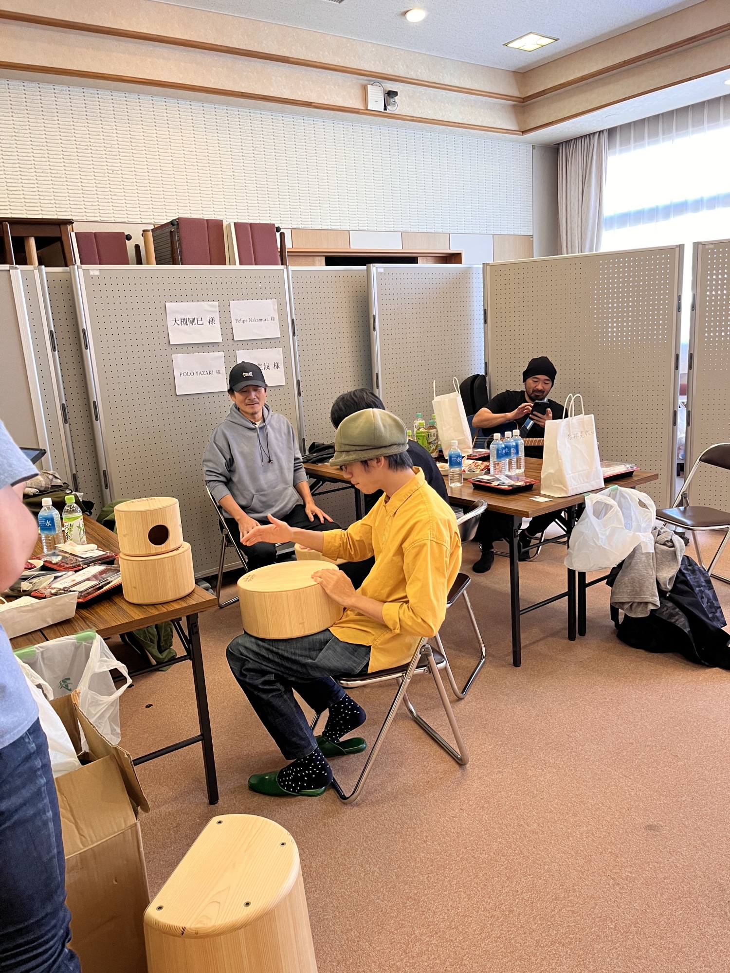 さて・・・控室で・・・お弁当・・・で、香山くんは、音だししていました・・・皆でカホンで遊ぶの巻。