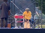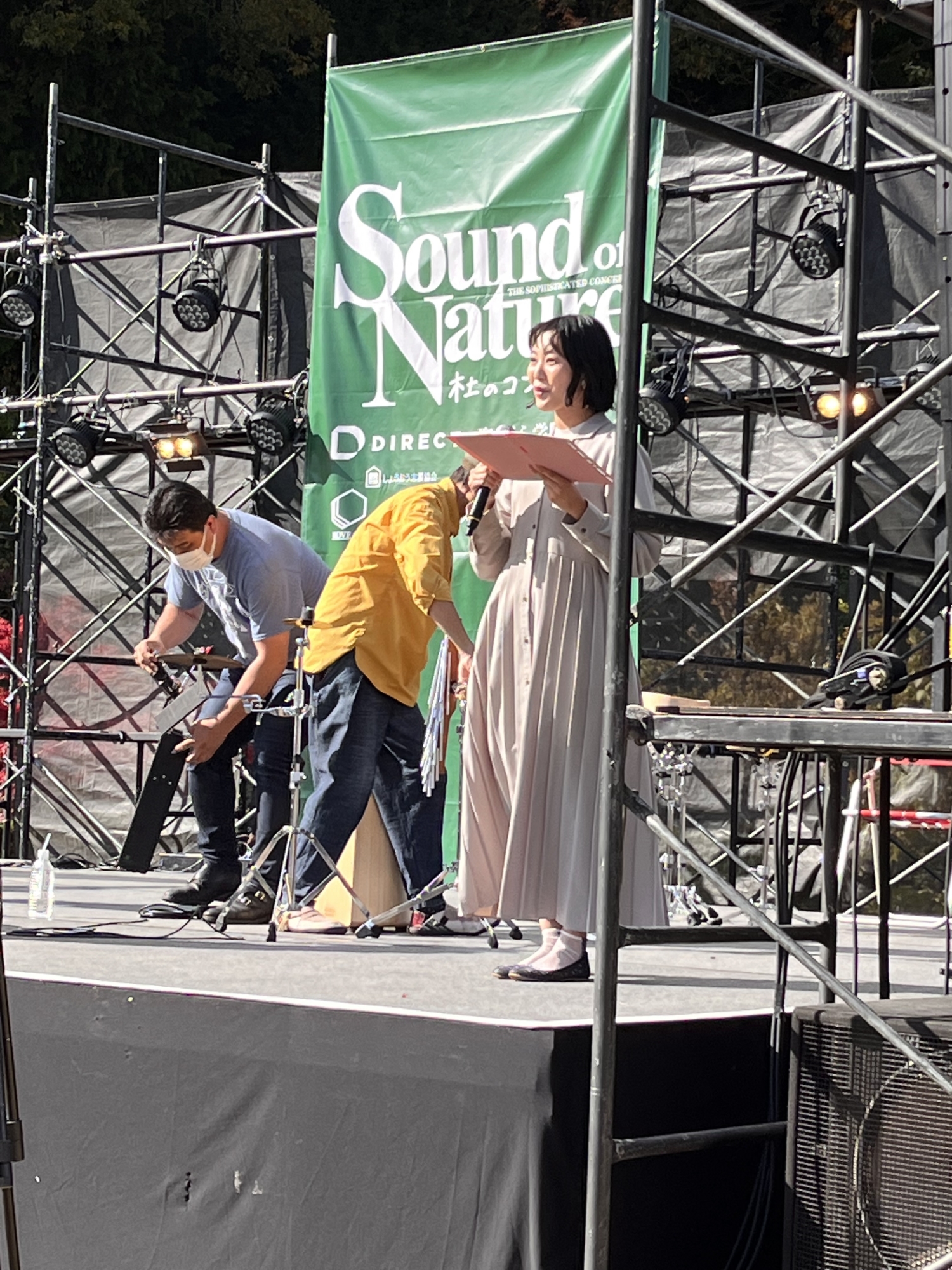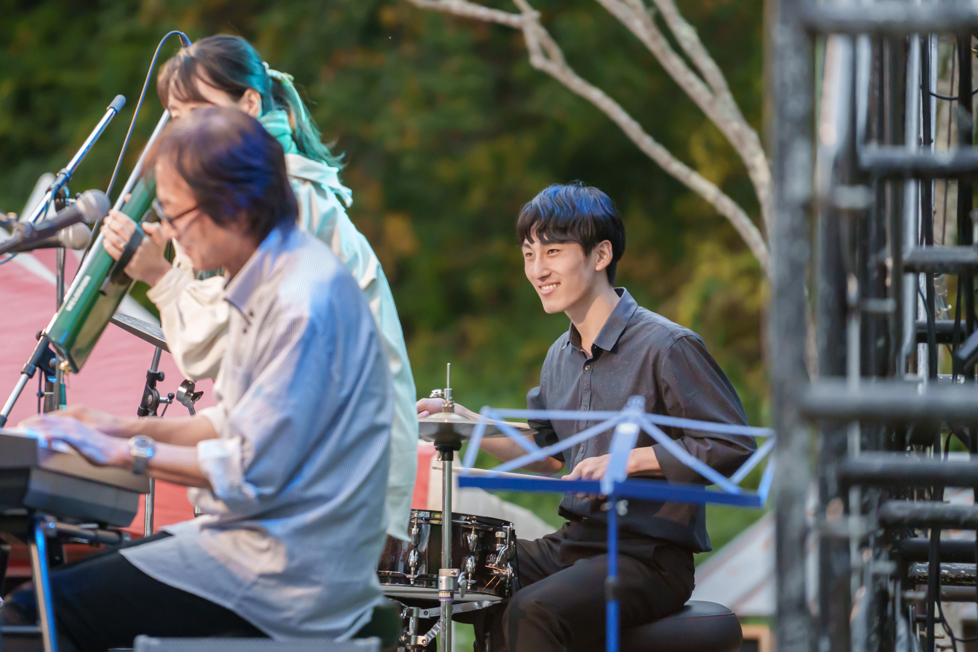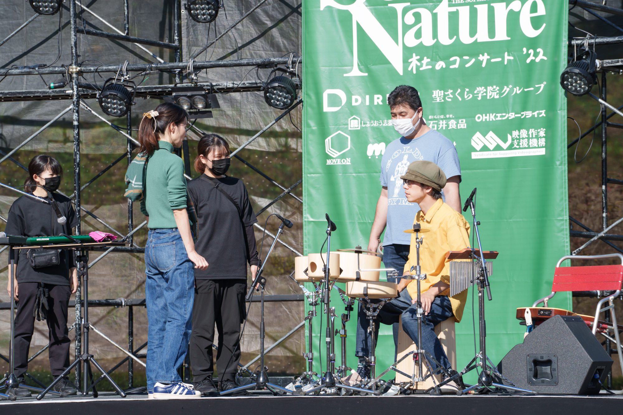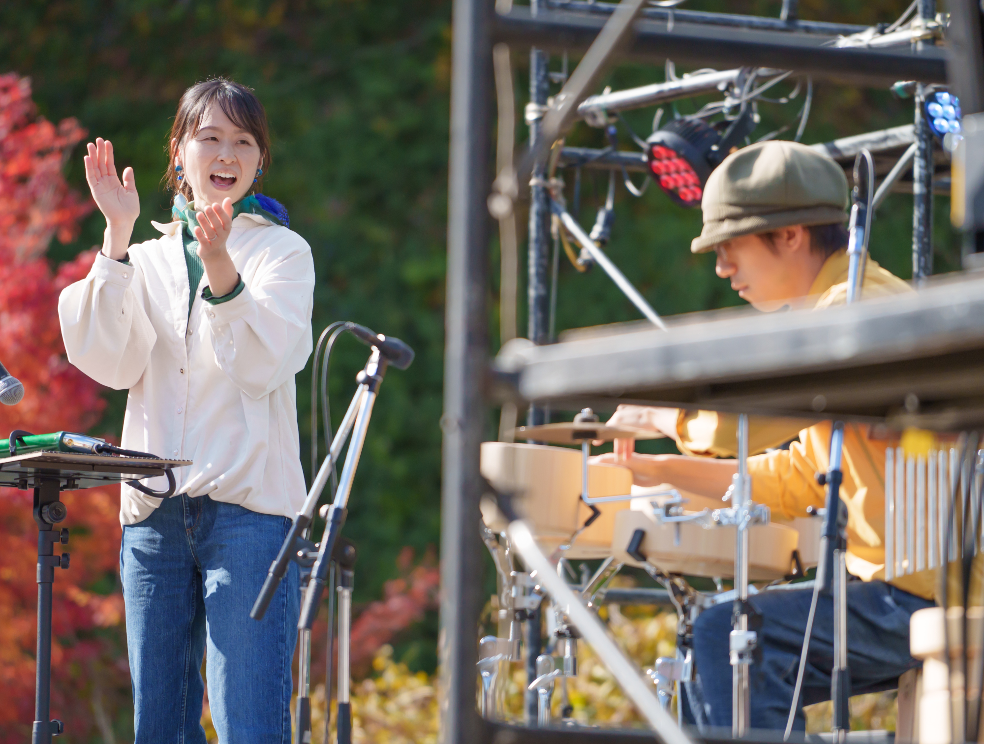 あやちんさん(鍵盤ハーモニカ)と中山拓人さん(カホン)・・では、子どもたちにステージに上がってもらって・・・・皆でカホン