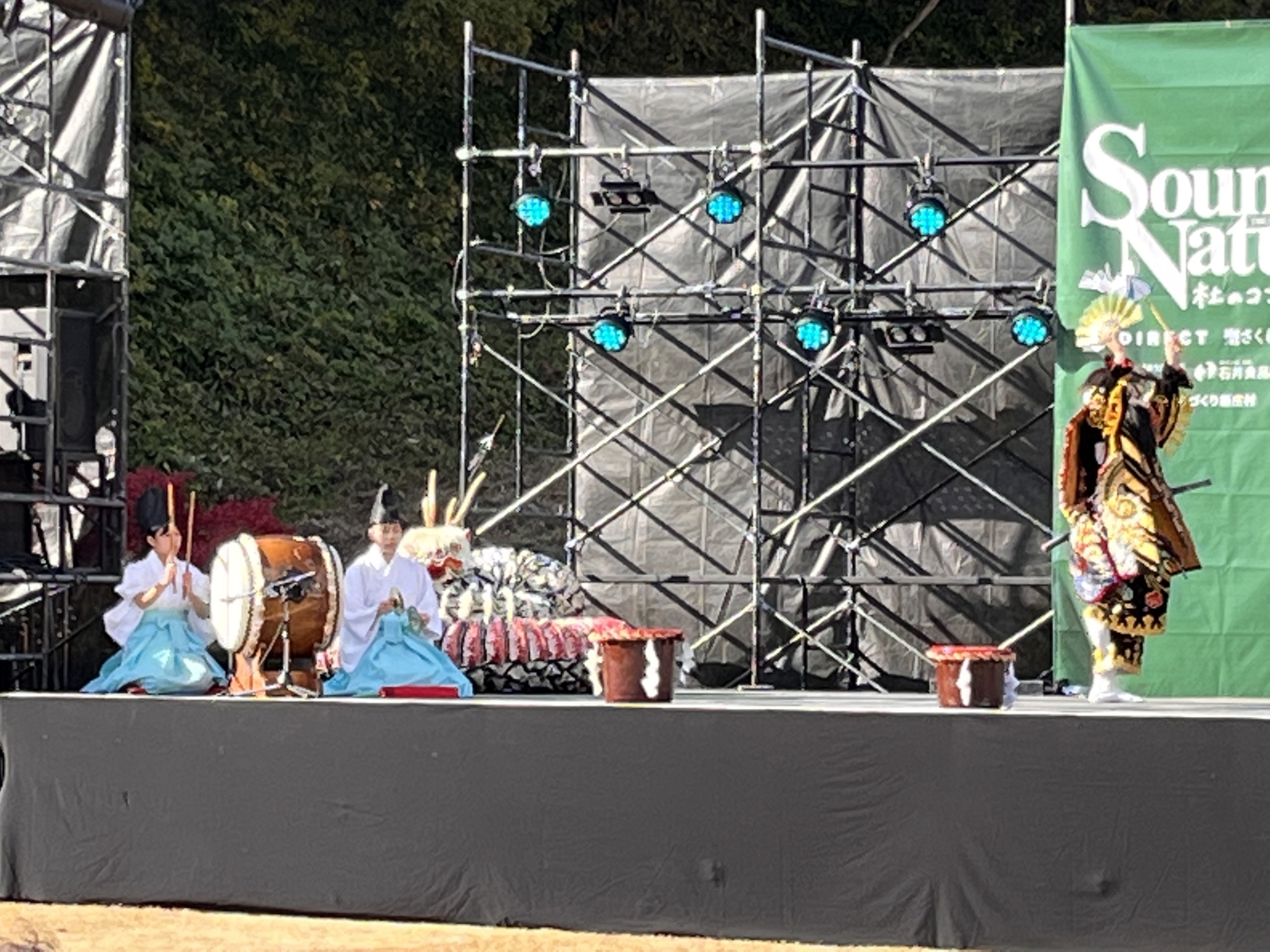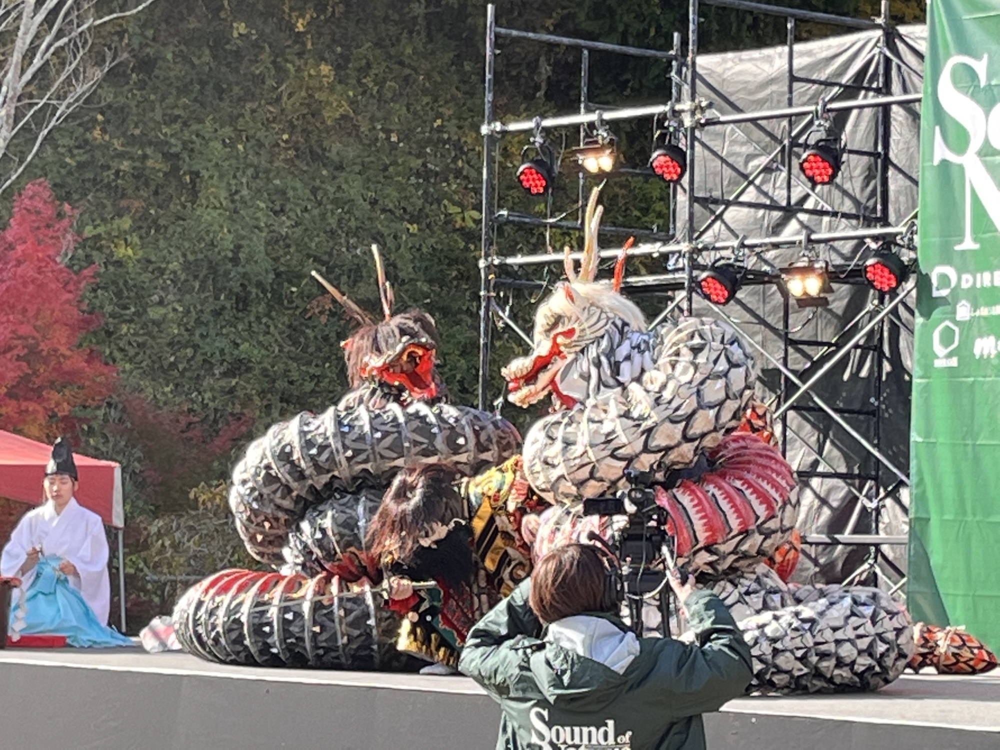 続いて、四十曲峠を越えた西側・日野高校から来て下さった日野高校の伝統芸能部の神楽。