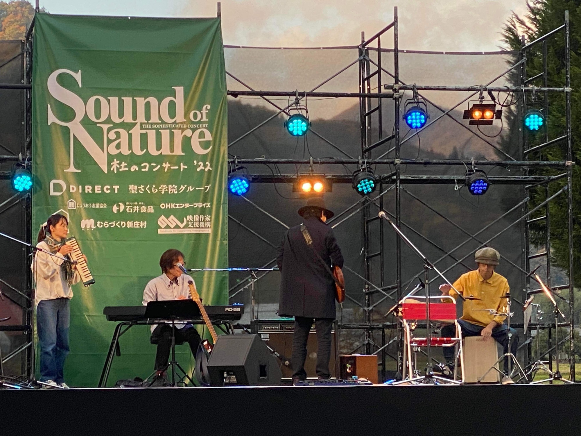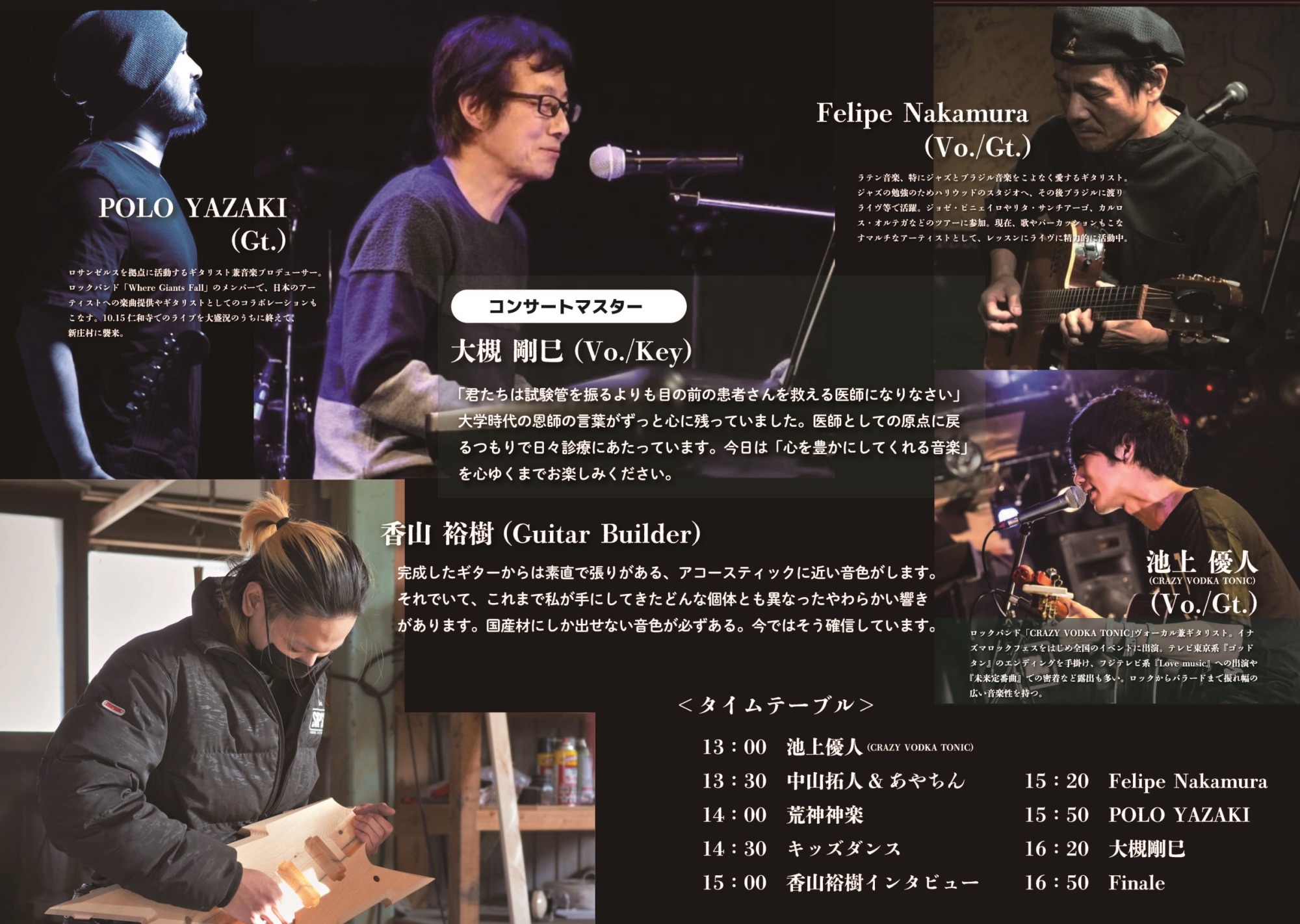 新庄村ふれあい公園で「社のコンサート」ヒノキギターとの融合です。ポスター両面と、パンフレット!!