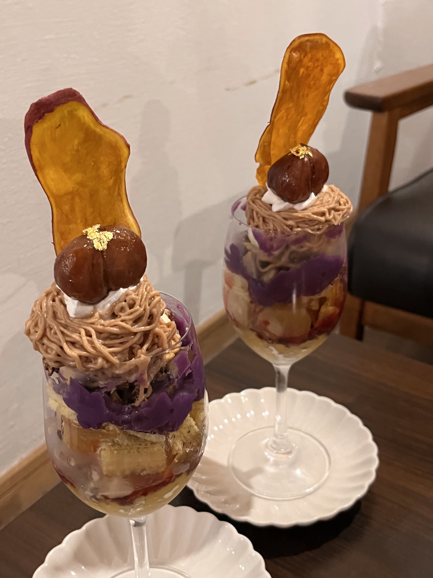そして、季節のパフェは・・栗、紫芋、その他のとってもステキな、そして、美味しいパフェ。人気店の様で、少し待ちました。