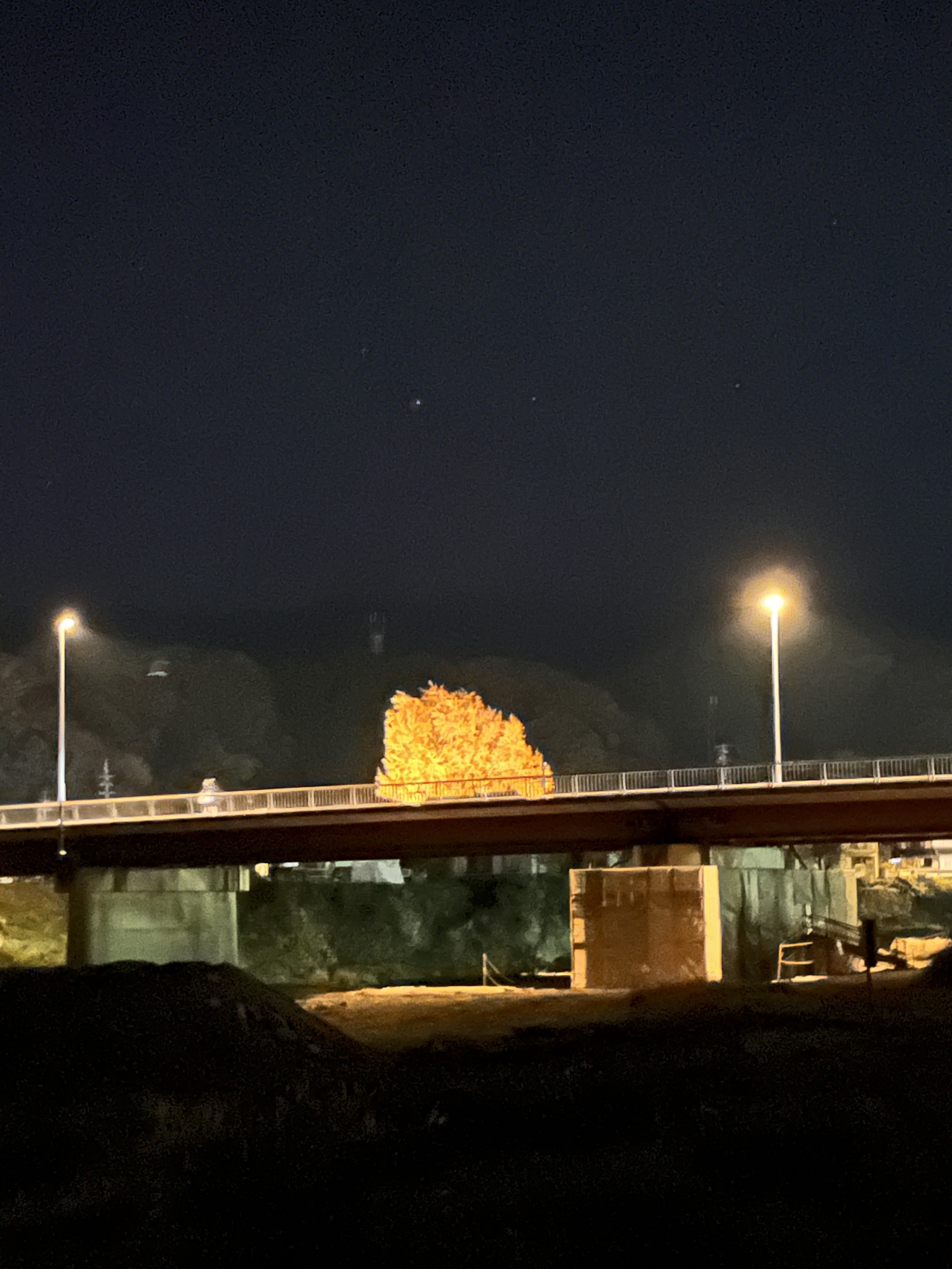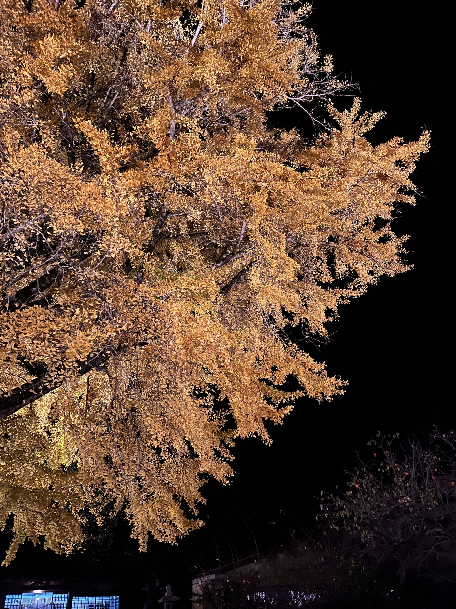 さて・・・車を勝山文化センターに停めた時から・・・大きく彼方に見えるライトアップされた大銀杏。